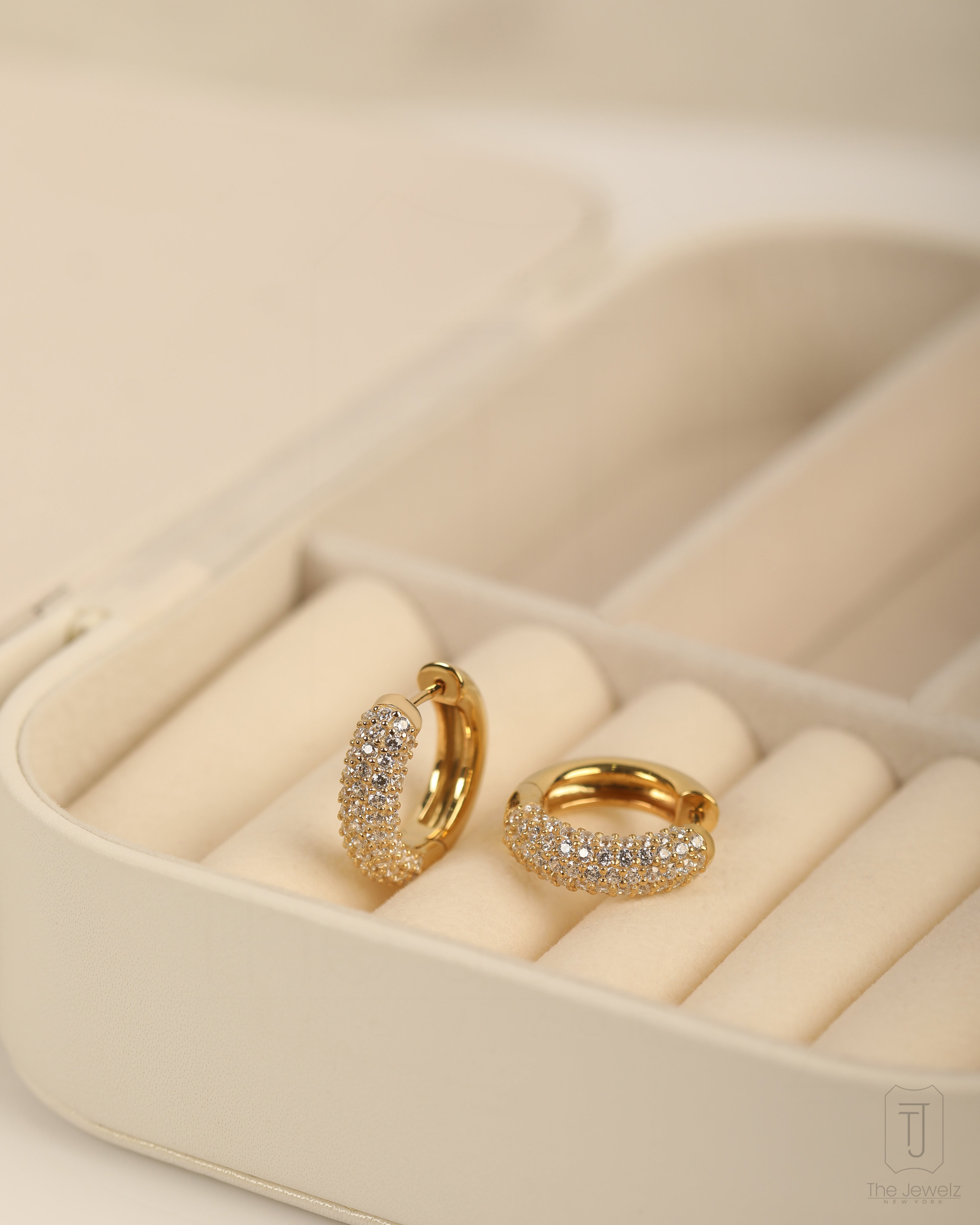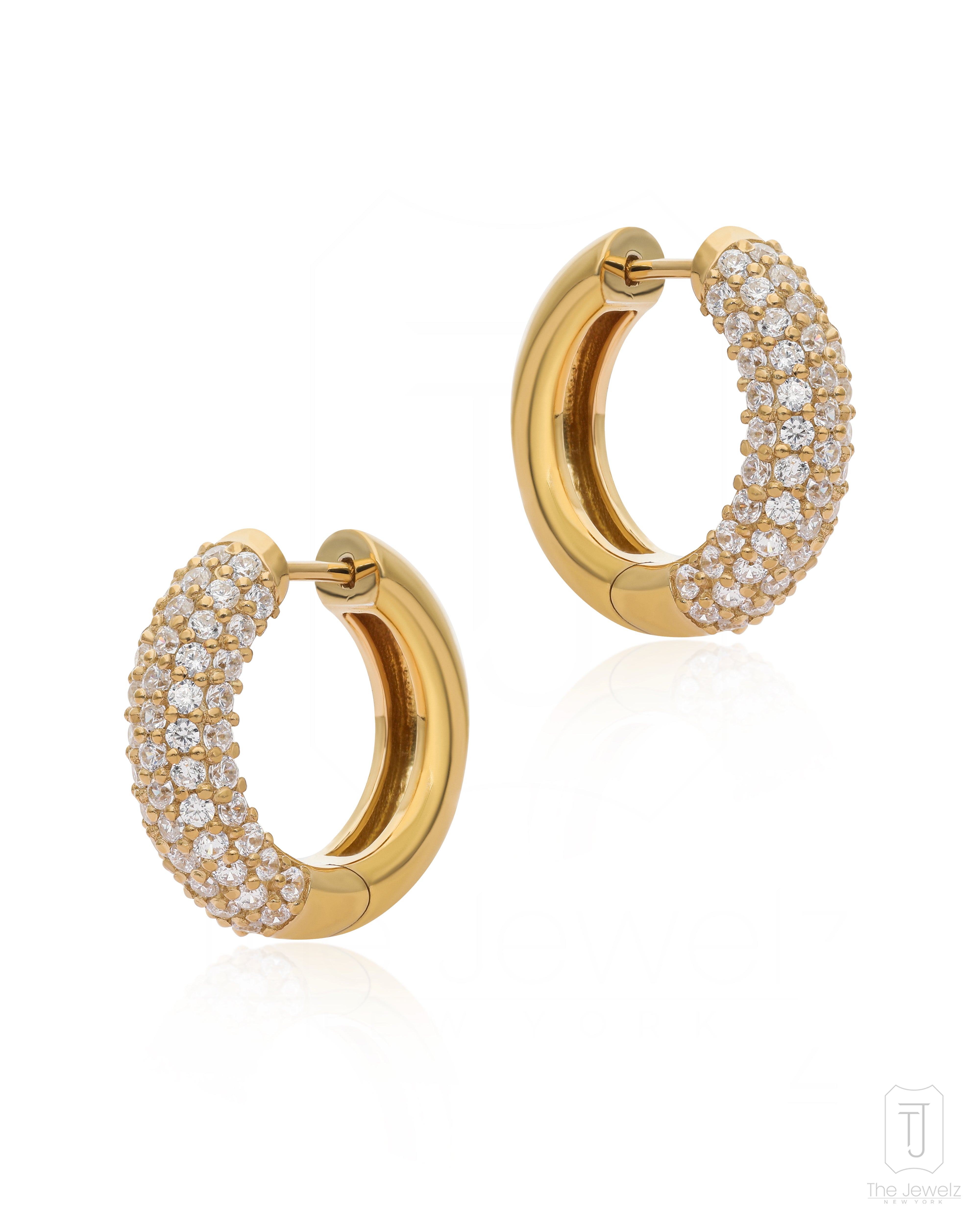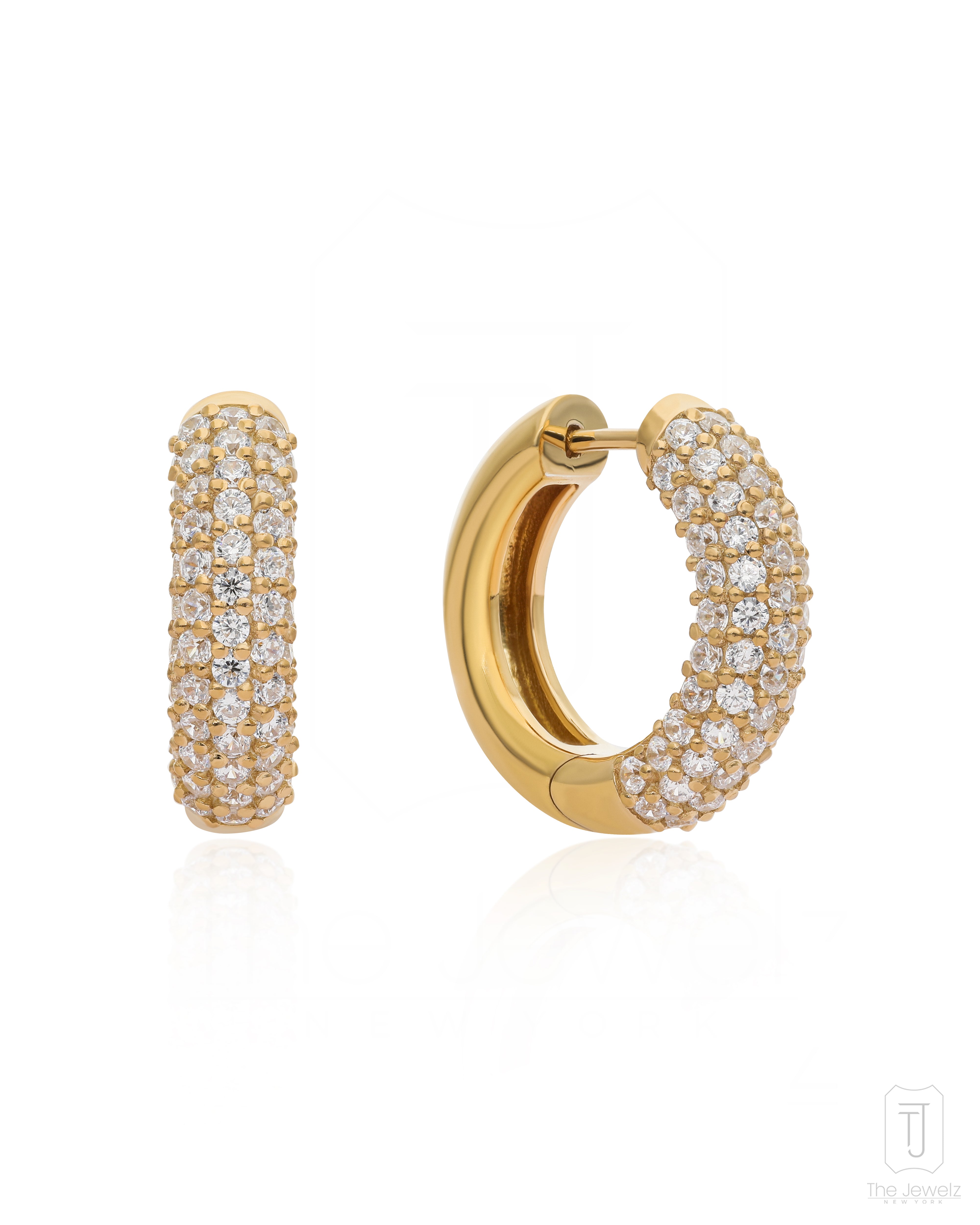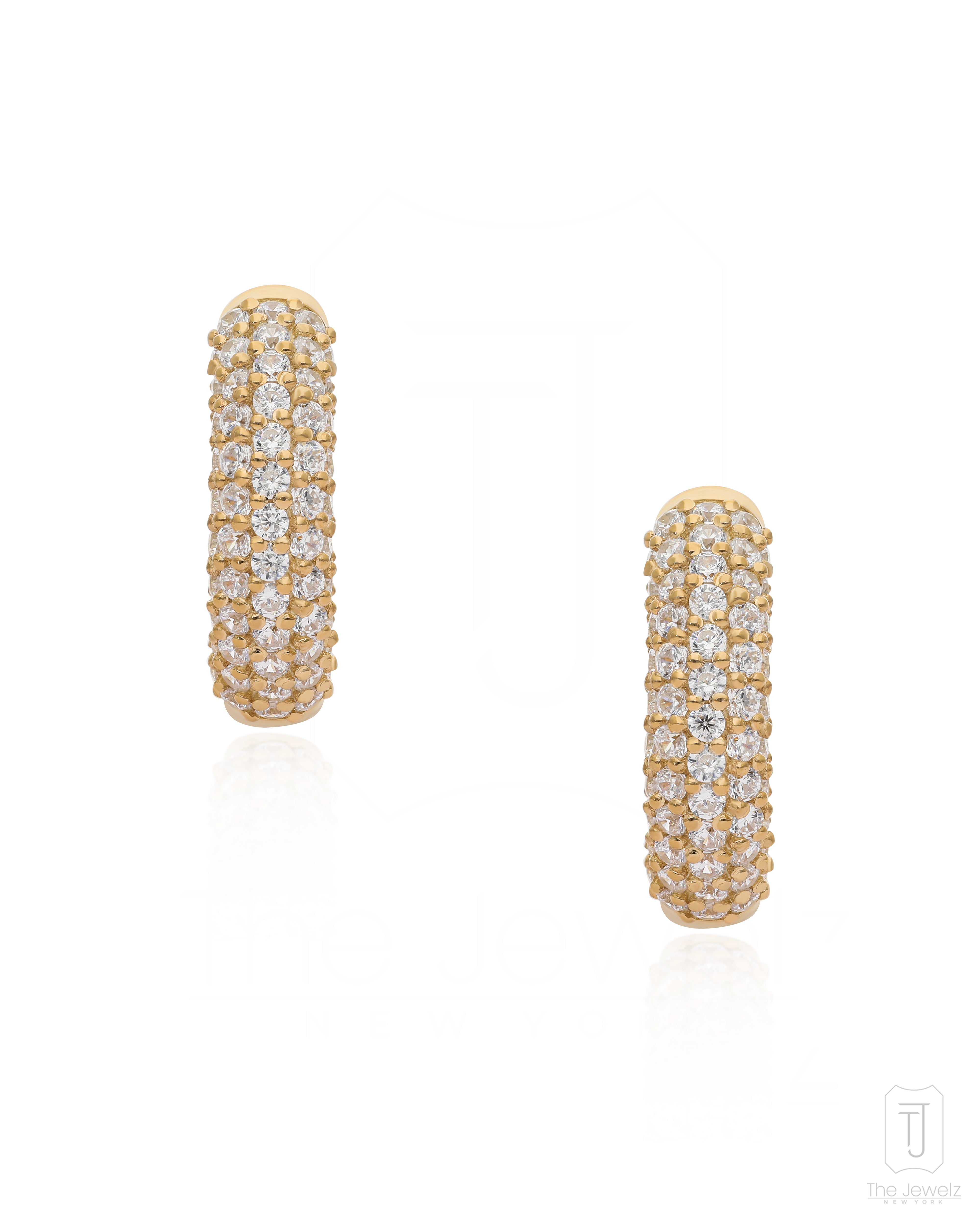 Get ready to dazzle with these 5 row pave CZ huggie hoop earrings! With a metal weight of 5.78 grams and 3.27 carats of sparkling cubic zirconia, these earrings are sure to add some bling to any outfit. Light and comfortable at 6.43 grams gross weight.