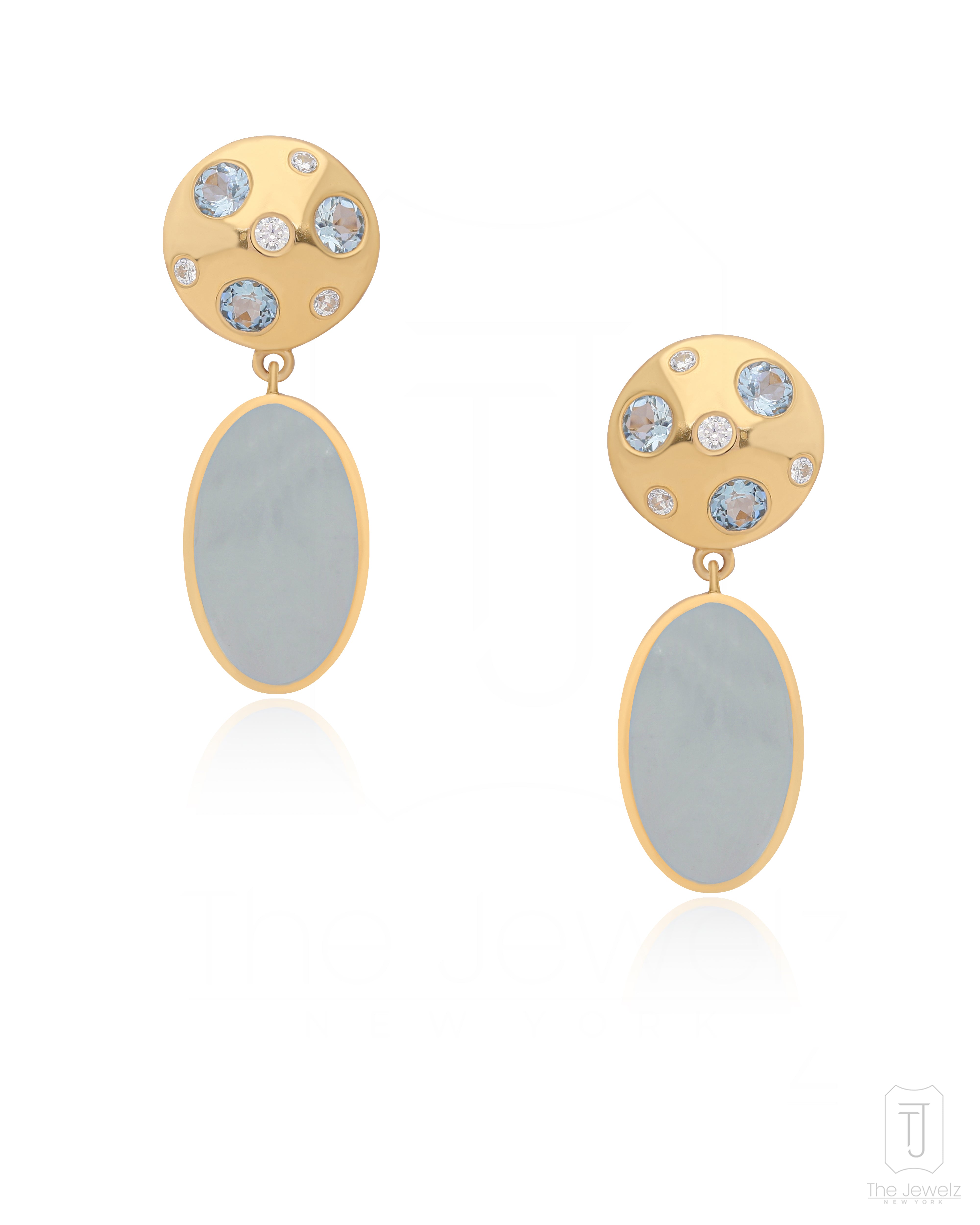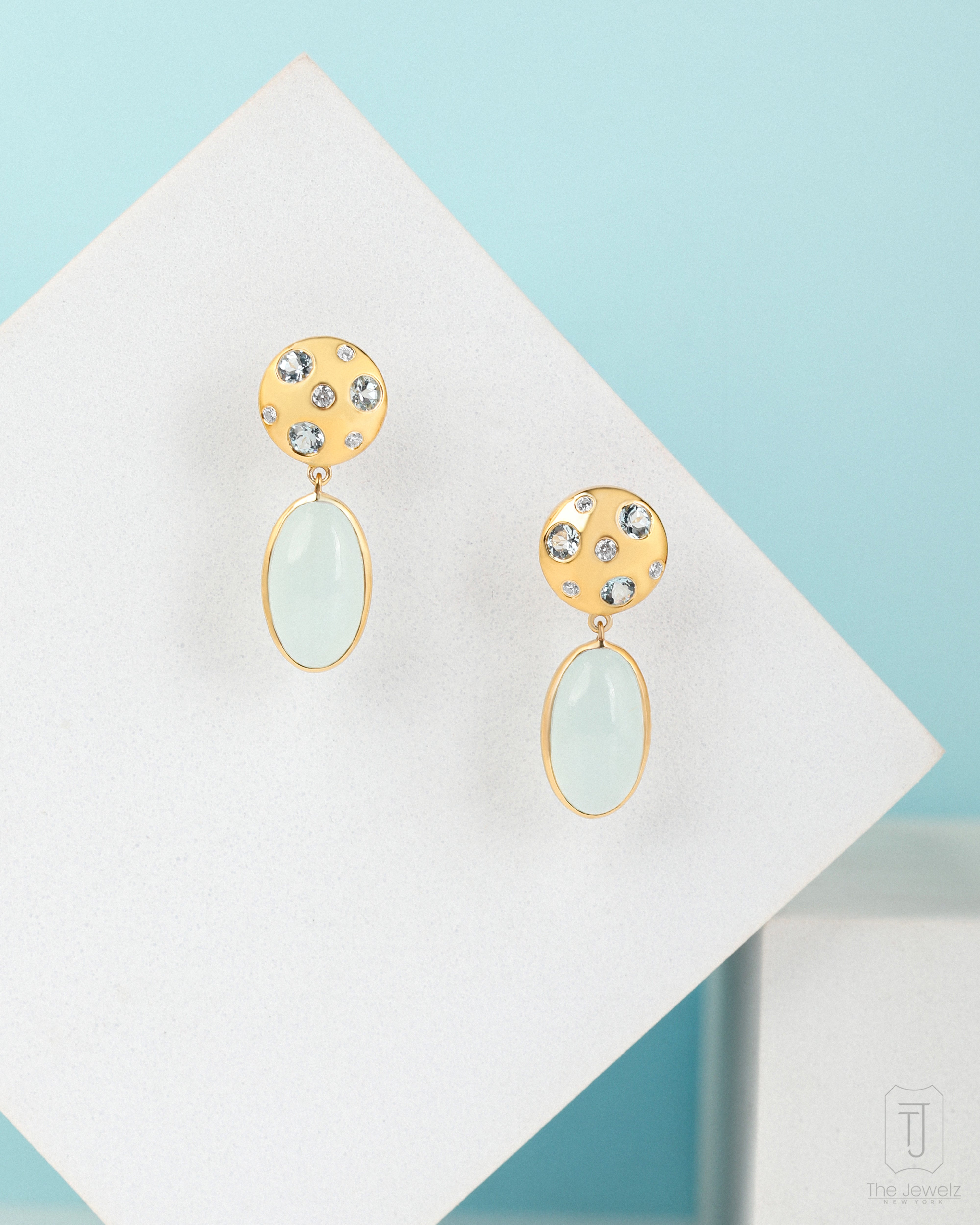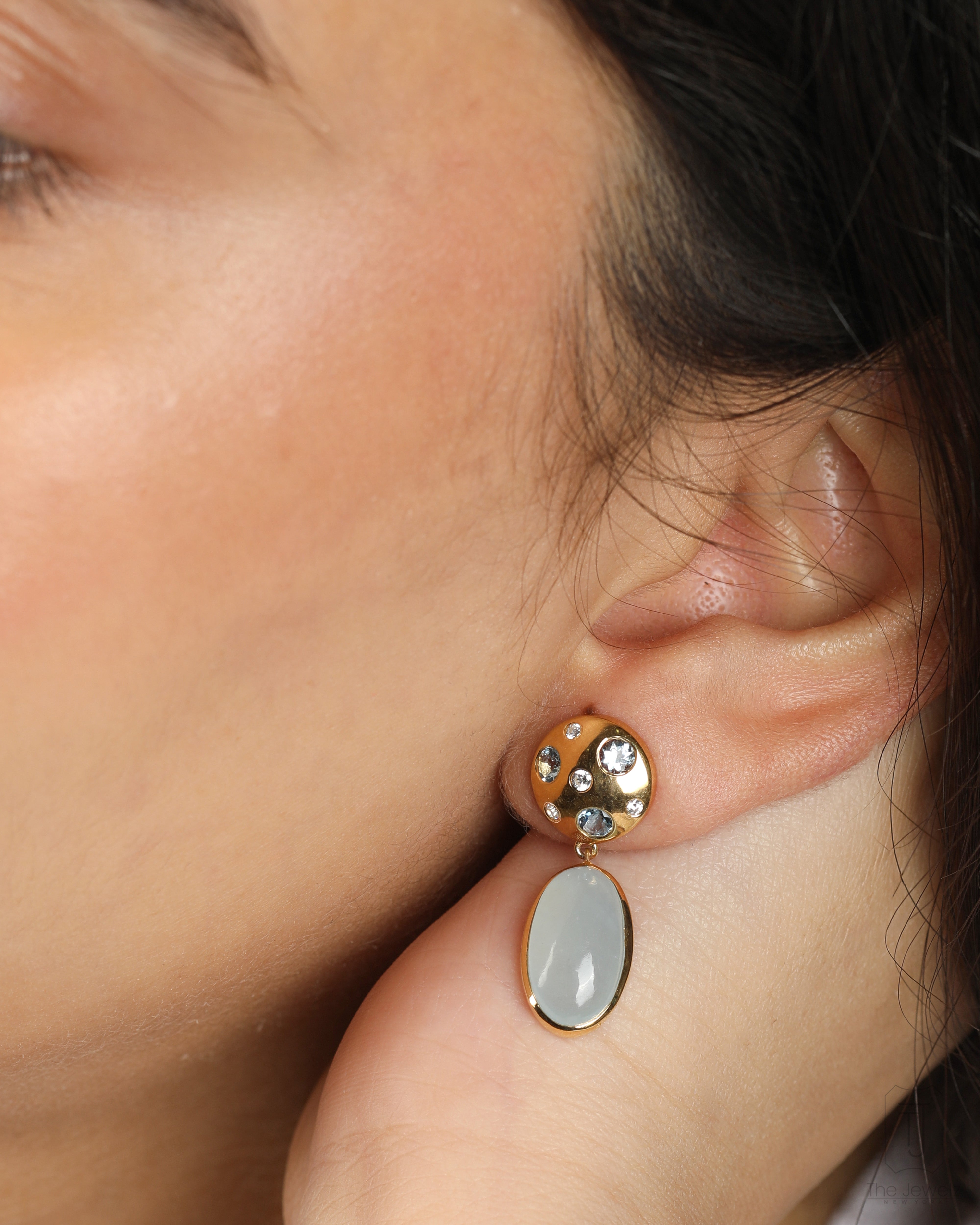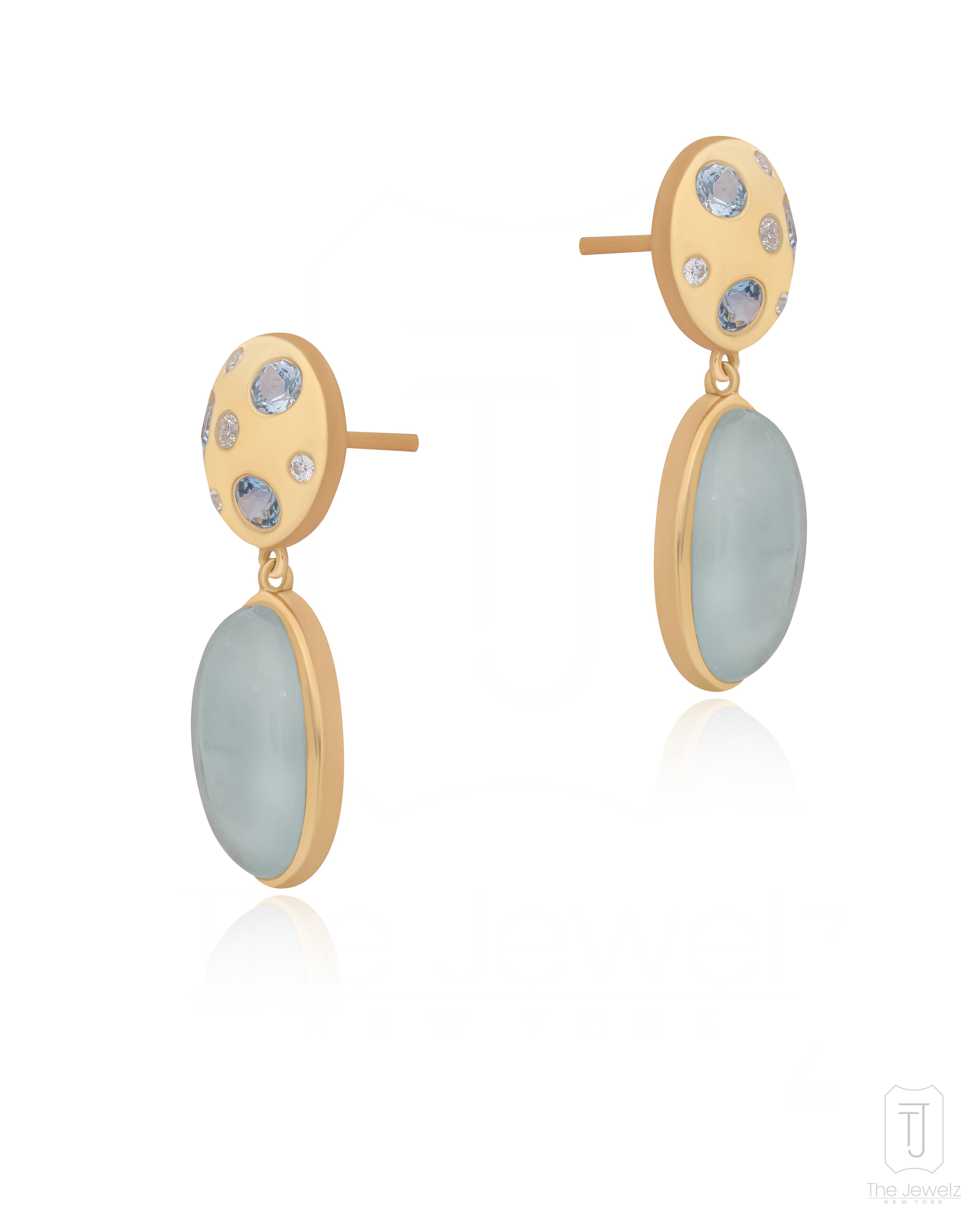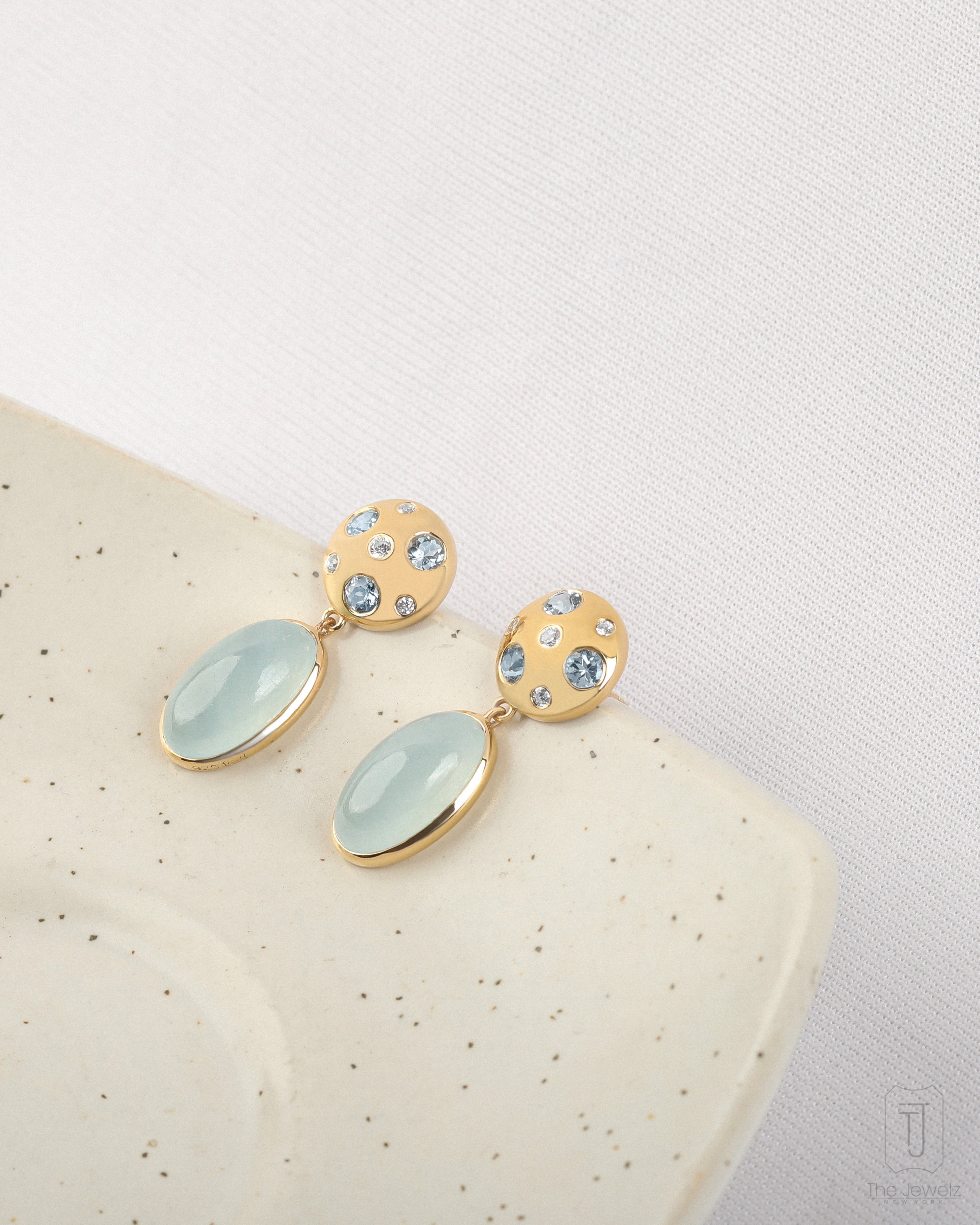Meet your new favorite accessory – the Aqua Dome Danglers! Lightweight and effortlessly wearable from day to night, these earrings are designed to command attention wherever you go. The pièce de résistance of these beauties is the cabochon aquamarine, set to perfection to gleam with every move.