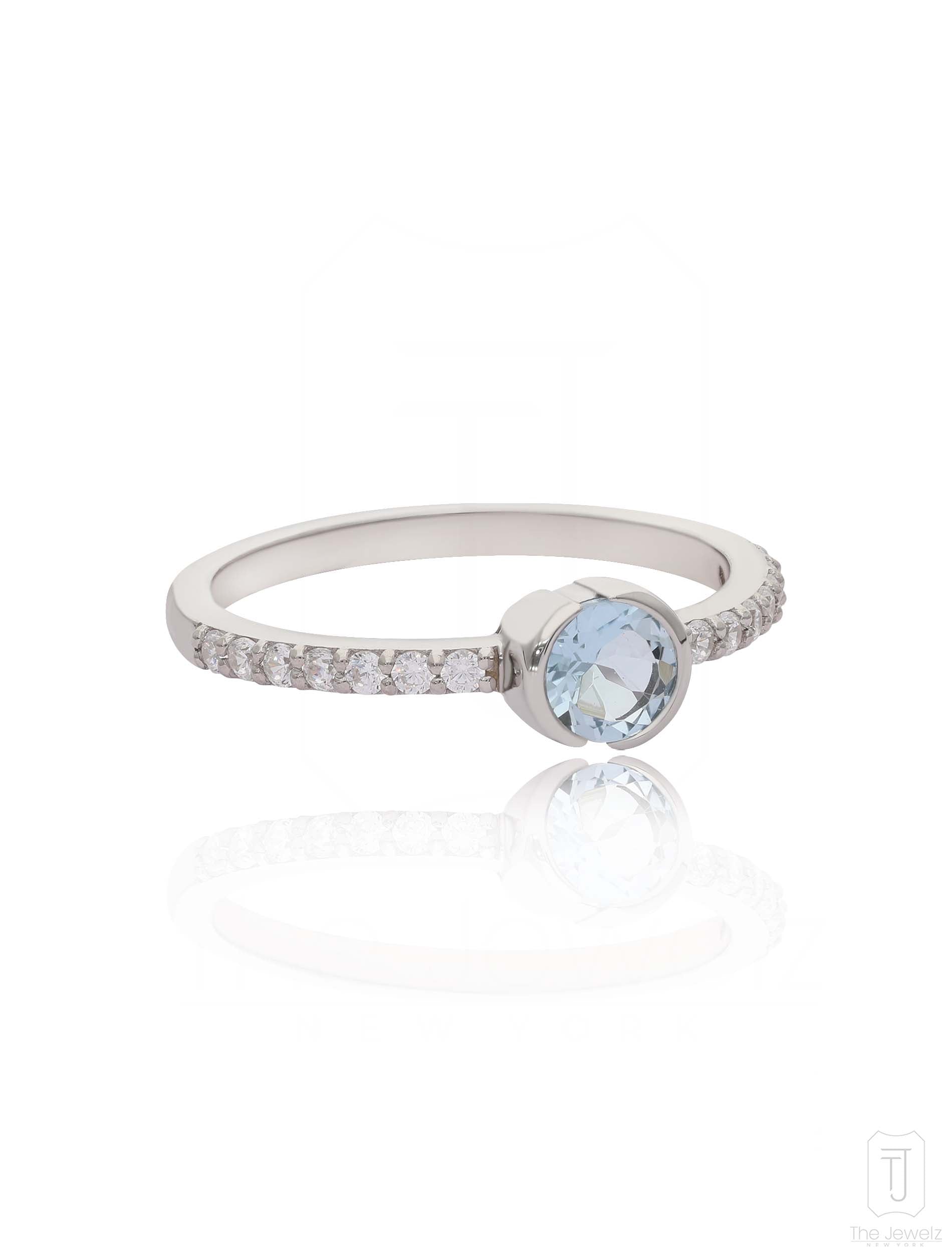 This Aqua Innes Brilliant Ring is expertly crafted with a gross weight of 1.76 grams, metal weight of 1.60 grams, and a stunning gemstone weight of 0.83 carats. Lightweight yet eye-catching, this ring will make a charming addition to any outfit. Perfect for those who appreciate the finest details and quality craftsmanship.