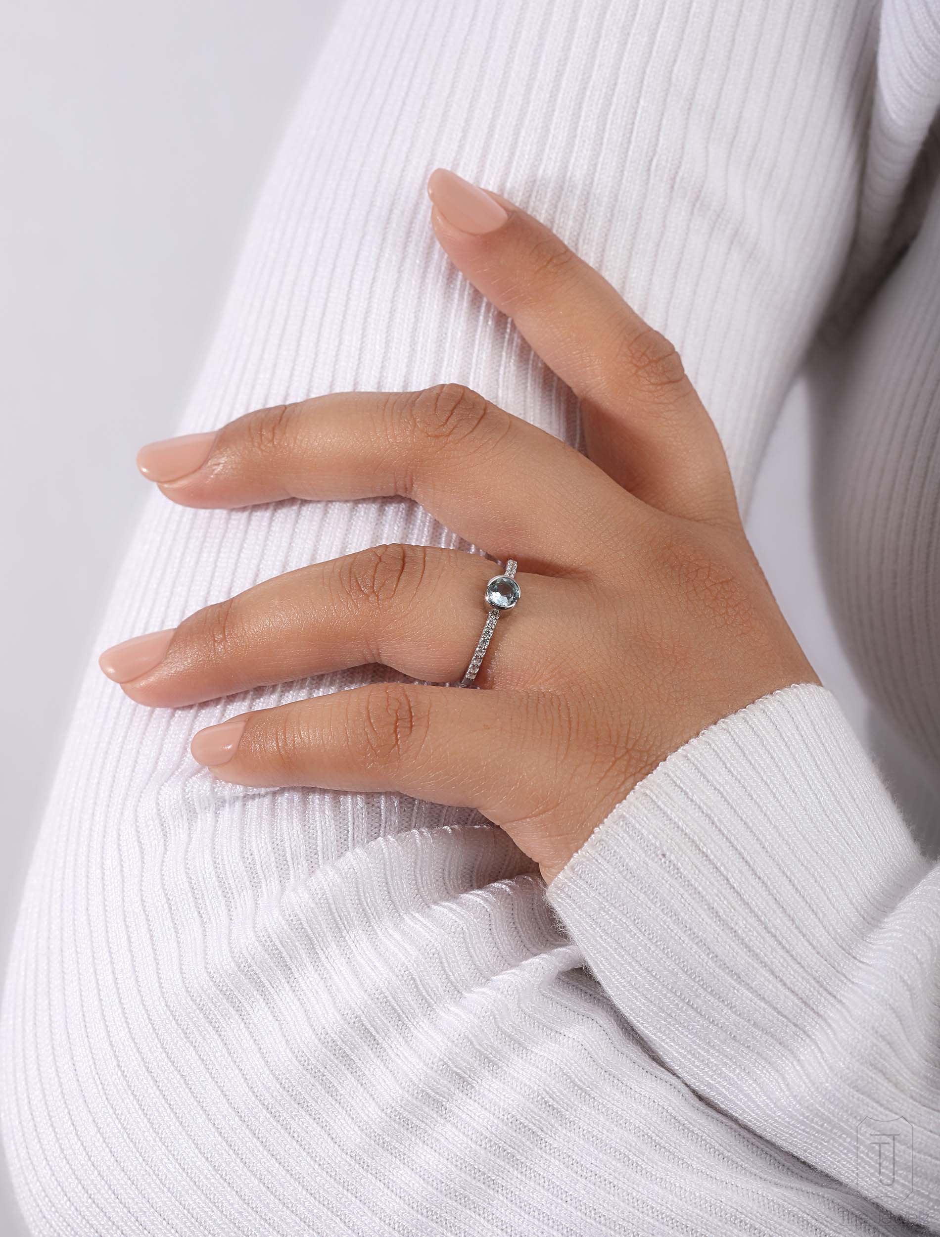 Indulge in the sophistication of these minimal but oh-so-classy ring. The diamonds and aquamarine play off each other for a sparkly and chic effect that adds an effortless charm to your plain coffee-run look. Trust us, you won't want to take this off.