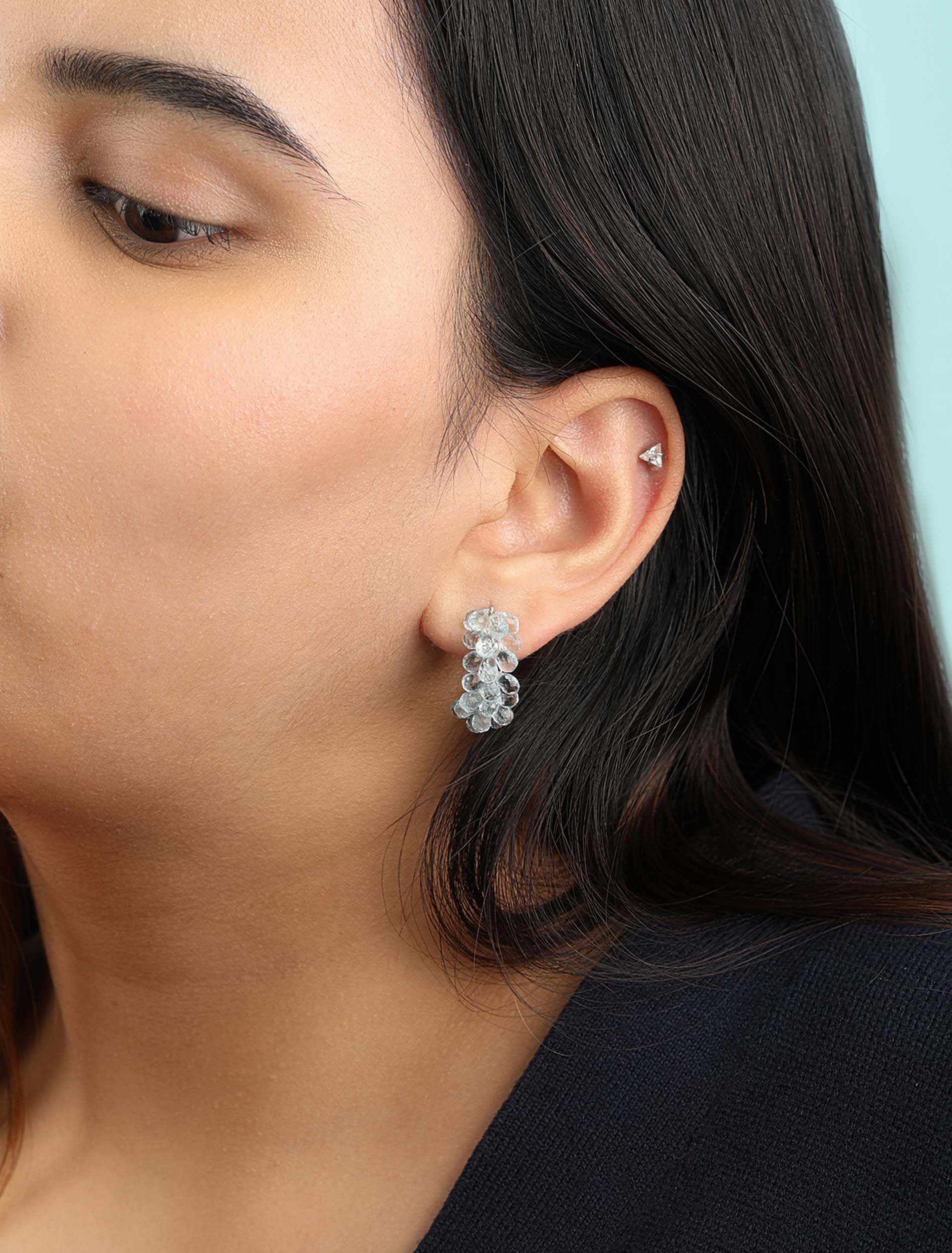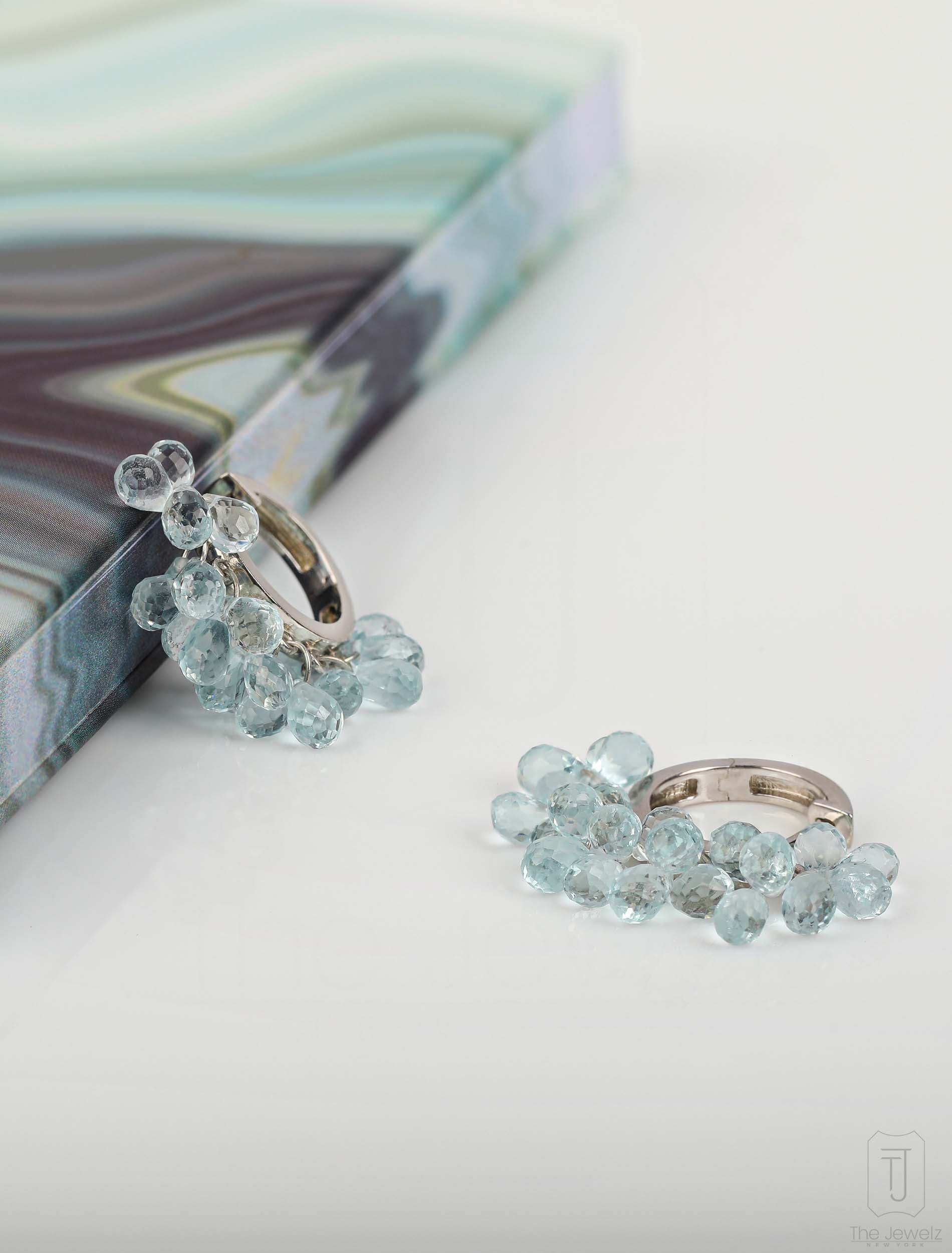 Designed for those who love to make small statements. These whimsical aquamarine hoops are sure to put an extra bounce in your steps. and add a touch of effortless coolness to your look. What's more? They are feather-light, you'll forget you're even wearing them!
