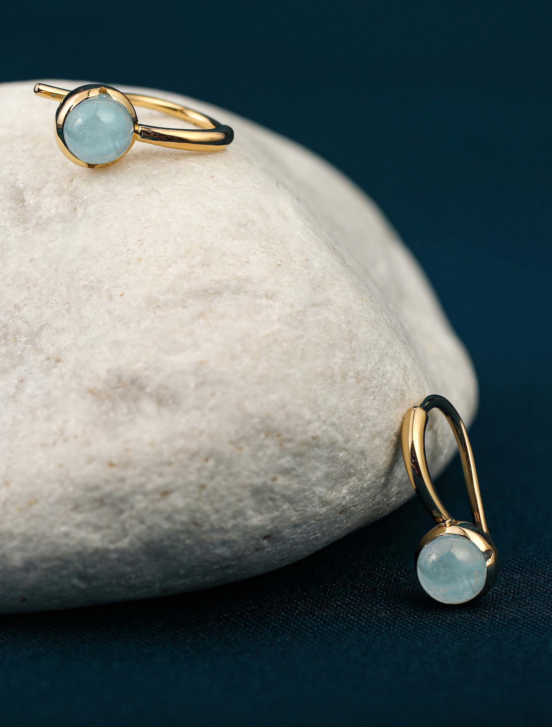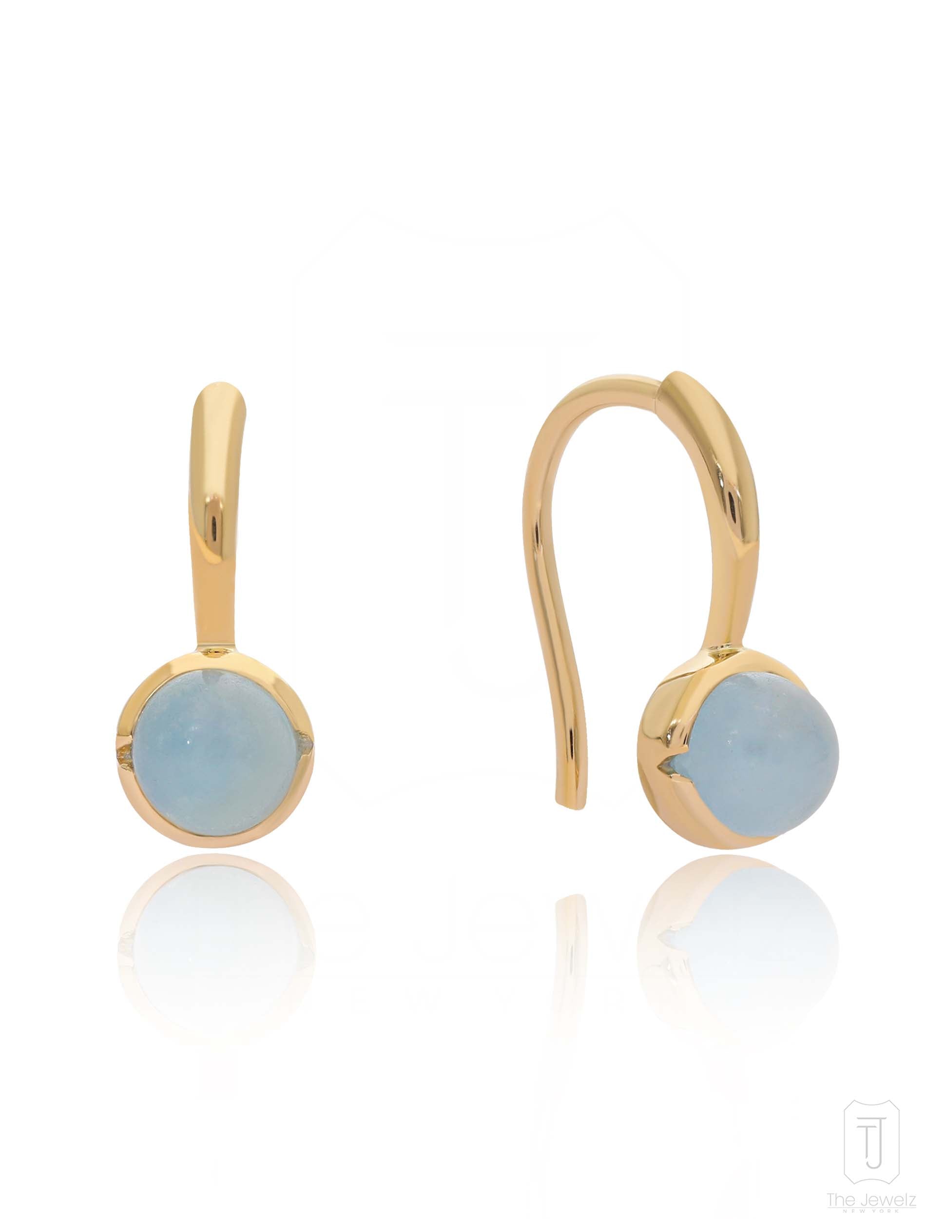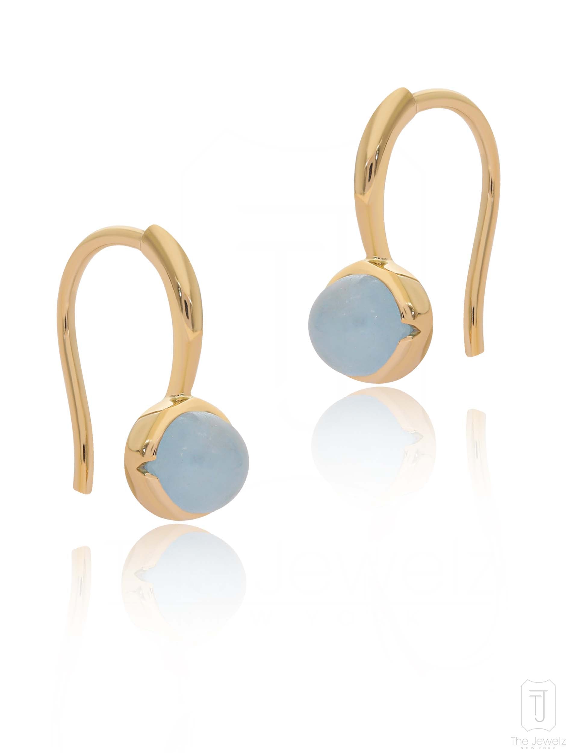 These classic french hook earrings effortlessly swing and sway gracefully on your ears. With smooth oval cabochon aquamarine, you'll effortlessly add some extra oomph to your white-tee and sleek bun look!