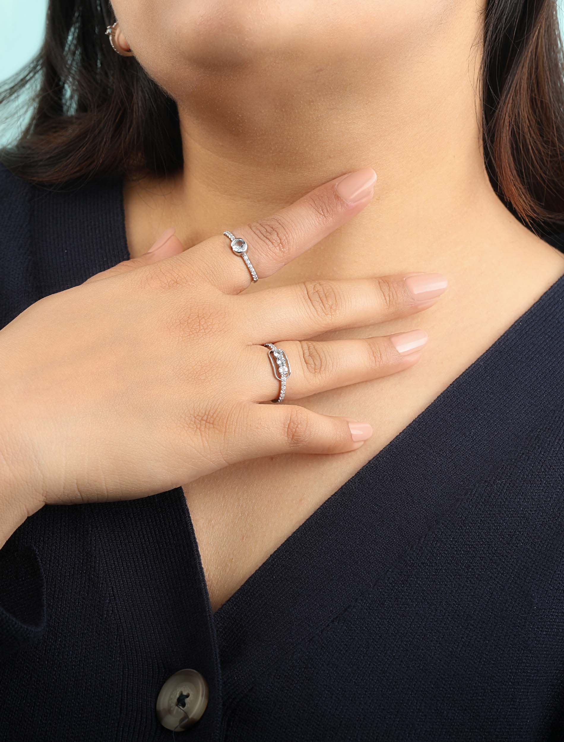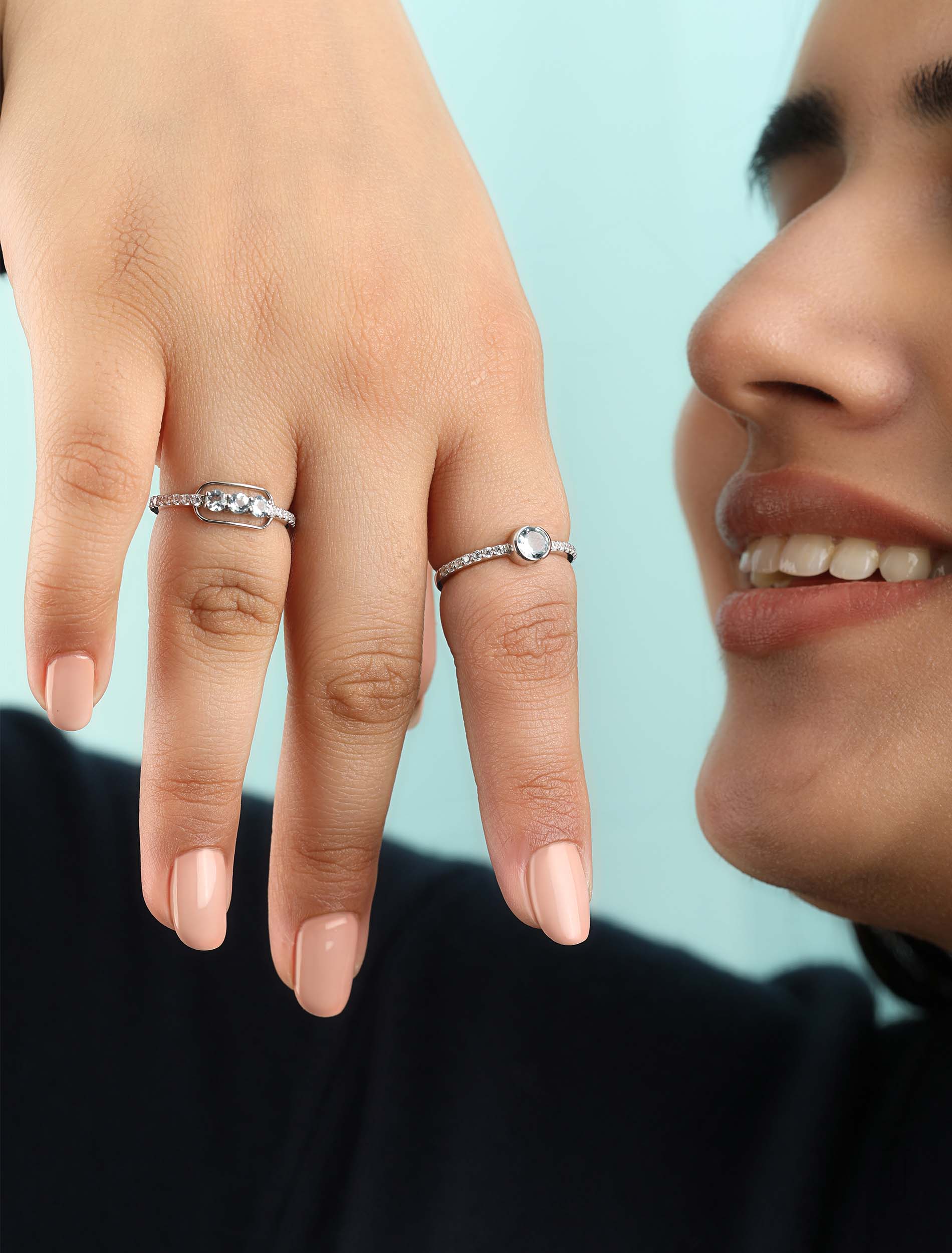 Crafted for all the modern maximalists out there, who are not afraid to break the trend rather always ready to make new ones. With its stunning mix of diamonds and aquamarines, it's a ring that demands attention.
