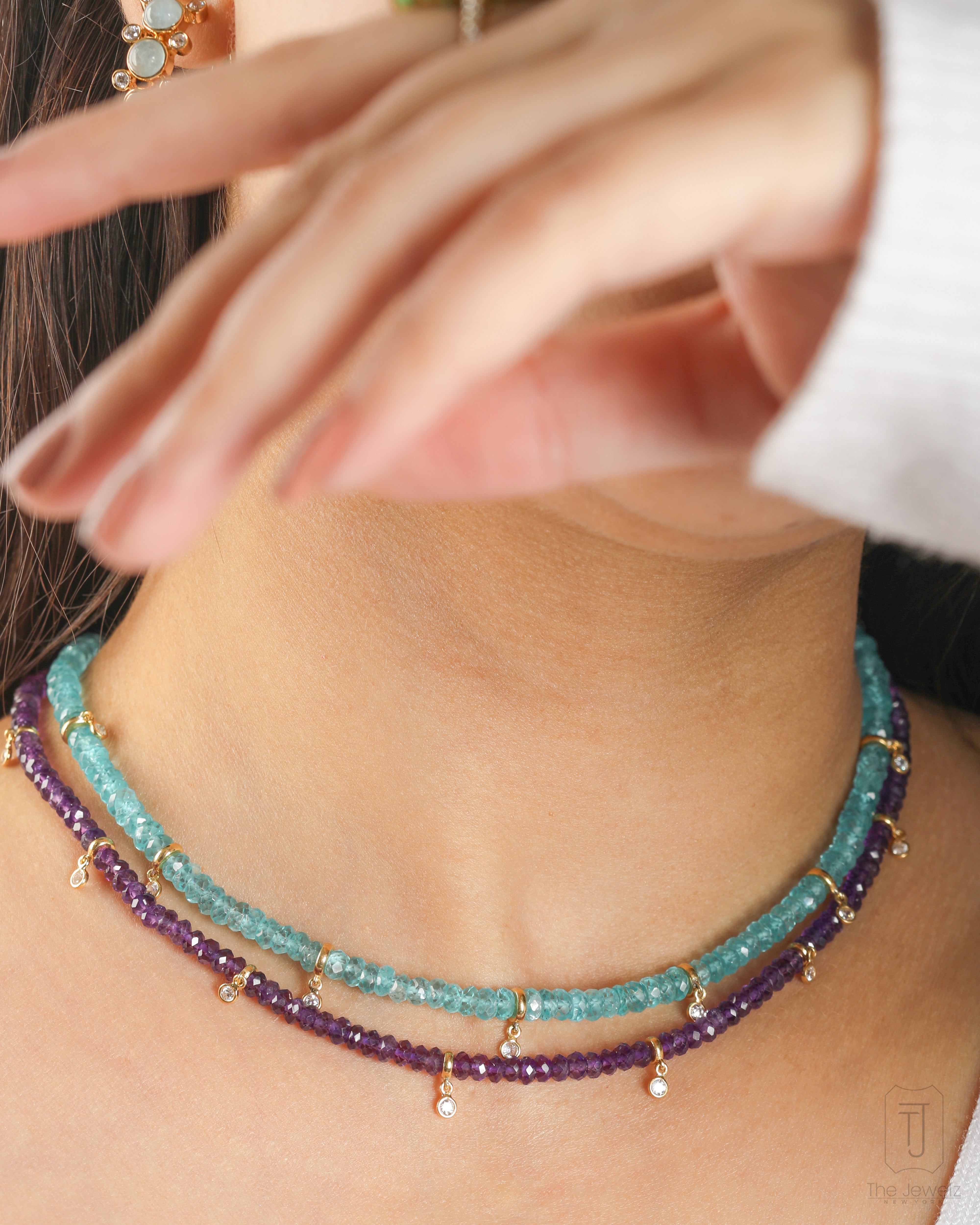 Forget the seashells, this necklace is the real beach treasure! Beach and Bead Necklace - a cascade of shimmering amethyst beads whispering tales of underwater wonder. It's like capturing the ocean's cool embrace and the sun-drenched serenity of a hidden cove, all in one breathtaking piece. Dress it up for a touch of bohemian royalty or add a hint of beachy magic to your everyday look. This necklace is a silent statement piece, guaranteed to turn heads and spark conversations as captivating as the ocean itself.