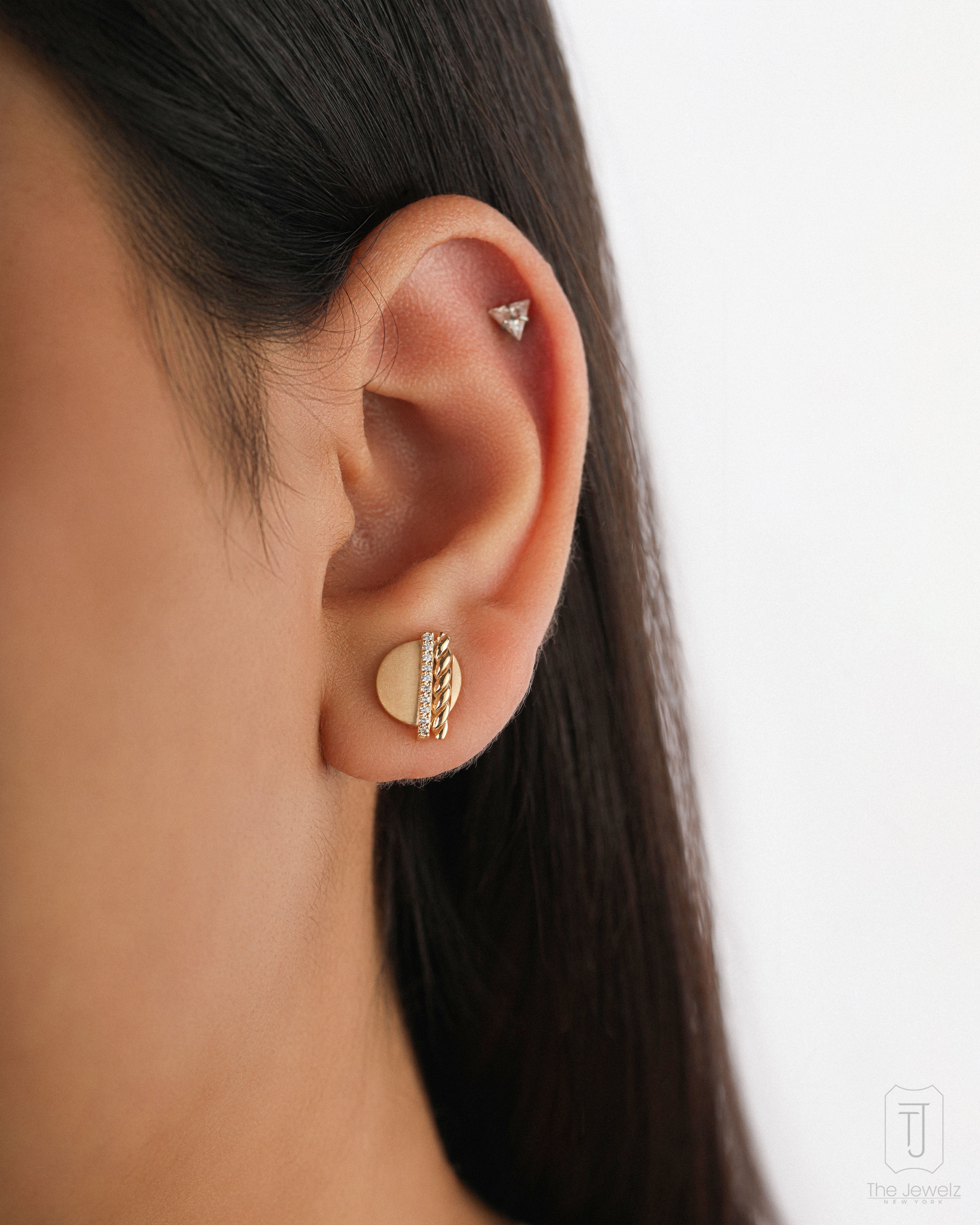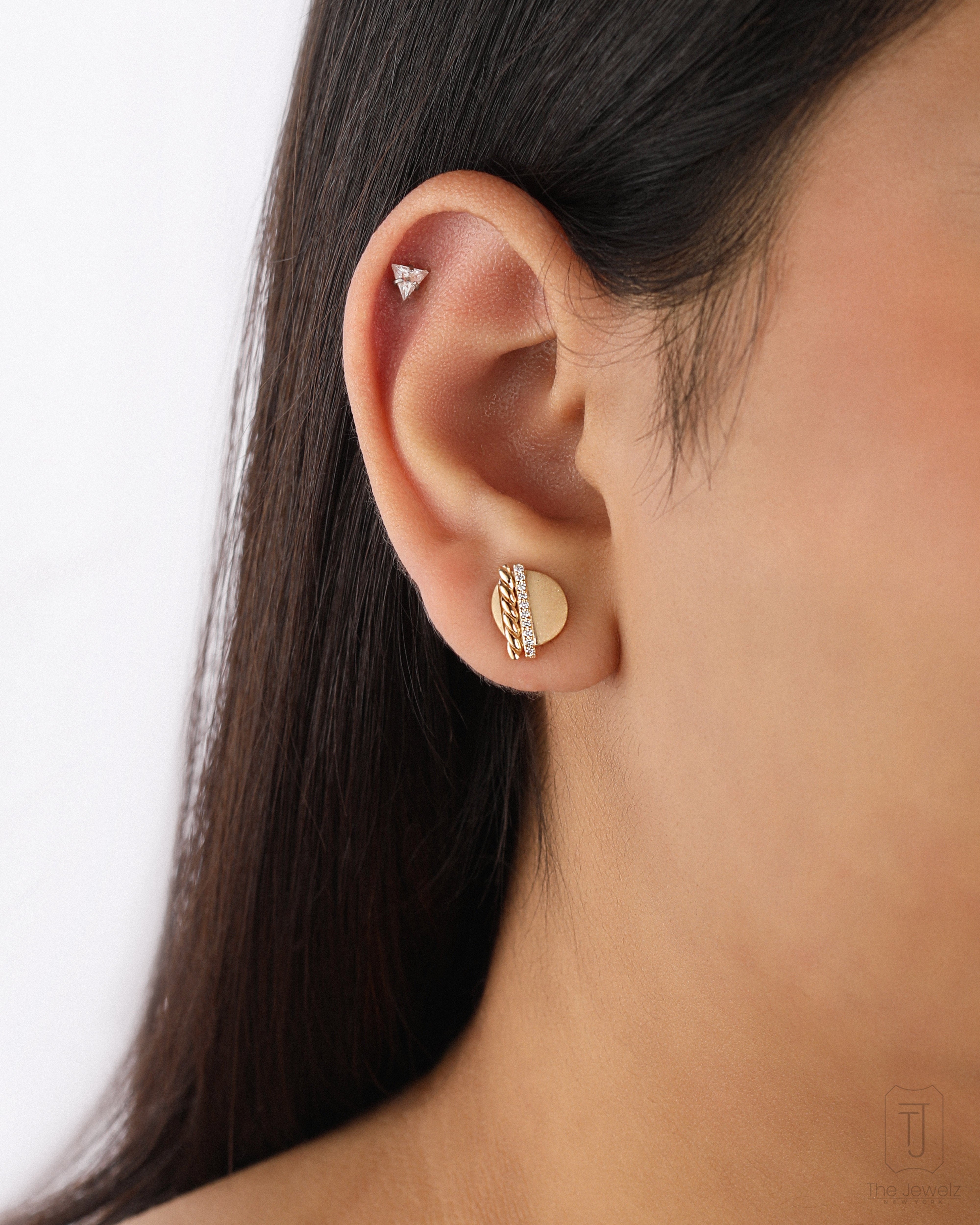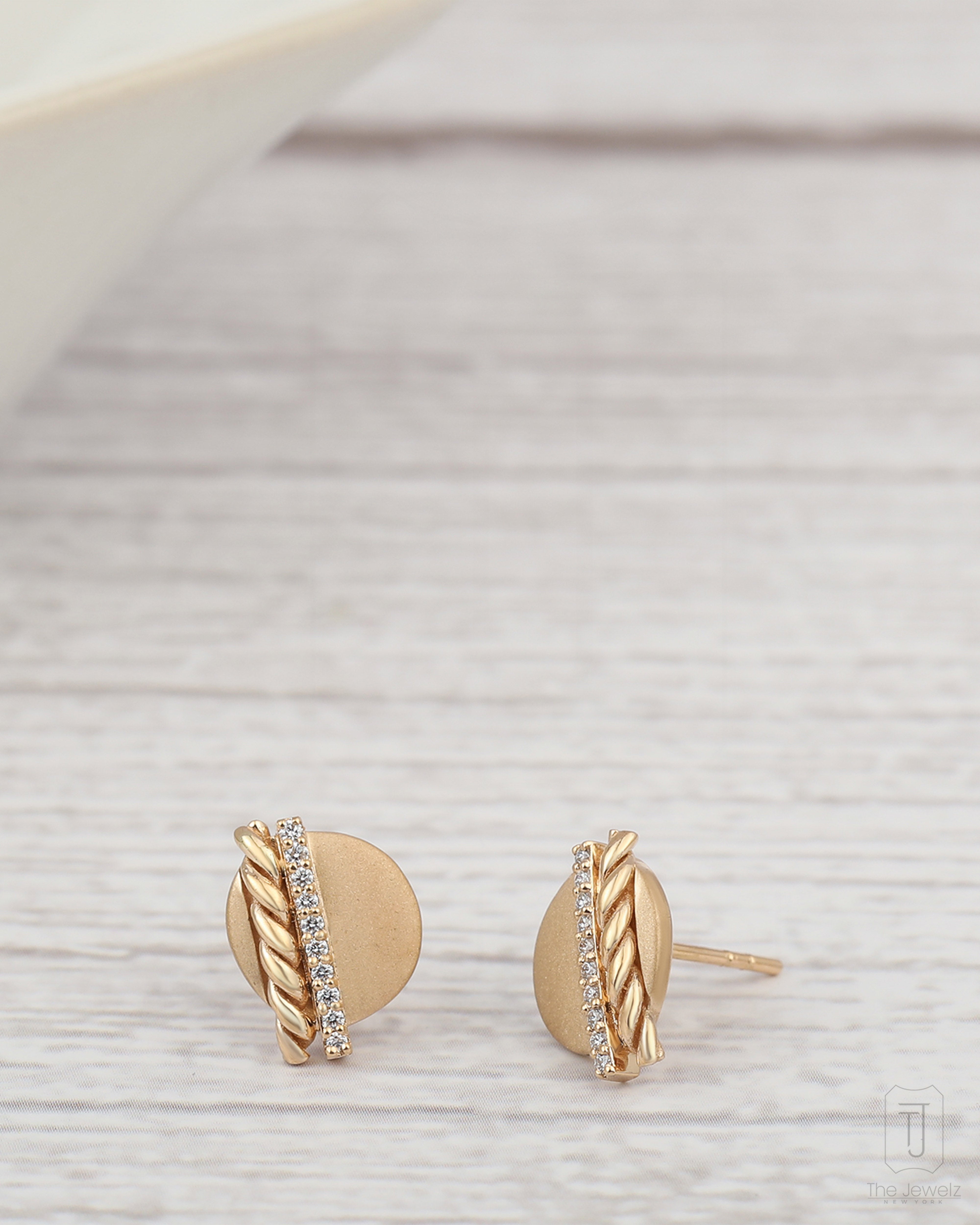 Elevate your elegance with these exquisite diamond stud earrings crafted in 14k gold. Featuring a unique braided design, these earrings symbolize timeless beauty and intricate craftsmanship. The shimmering diamonds at the heart of the design bring a touch of sparkle, perfect for any occasion. Diamonds, the birthstone for April, are known to symbolize strength, clarity, and eternal love, making these earrings a meaningful gift for yourself or a loved one. Their versatile design ensures they complement both casual and formal ensembles effortlessly.
