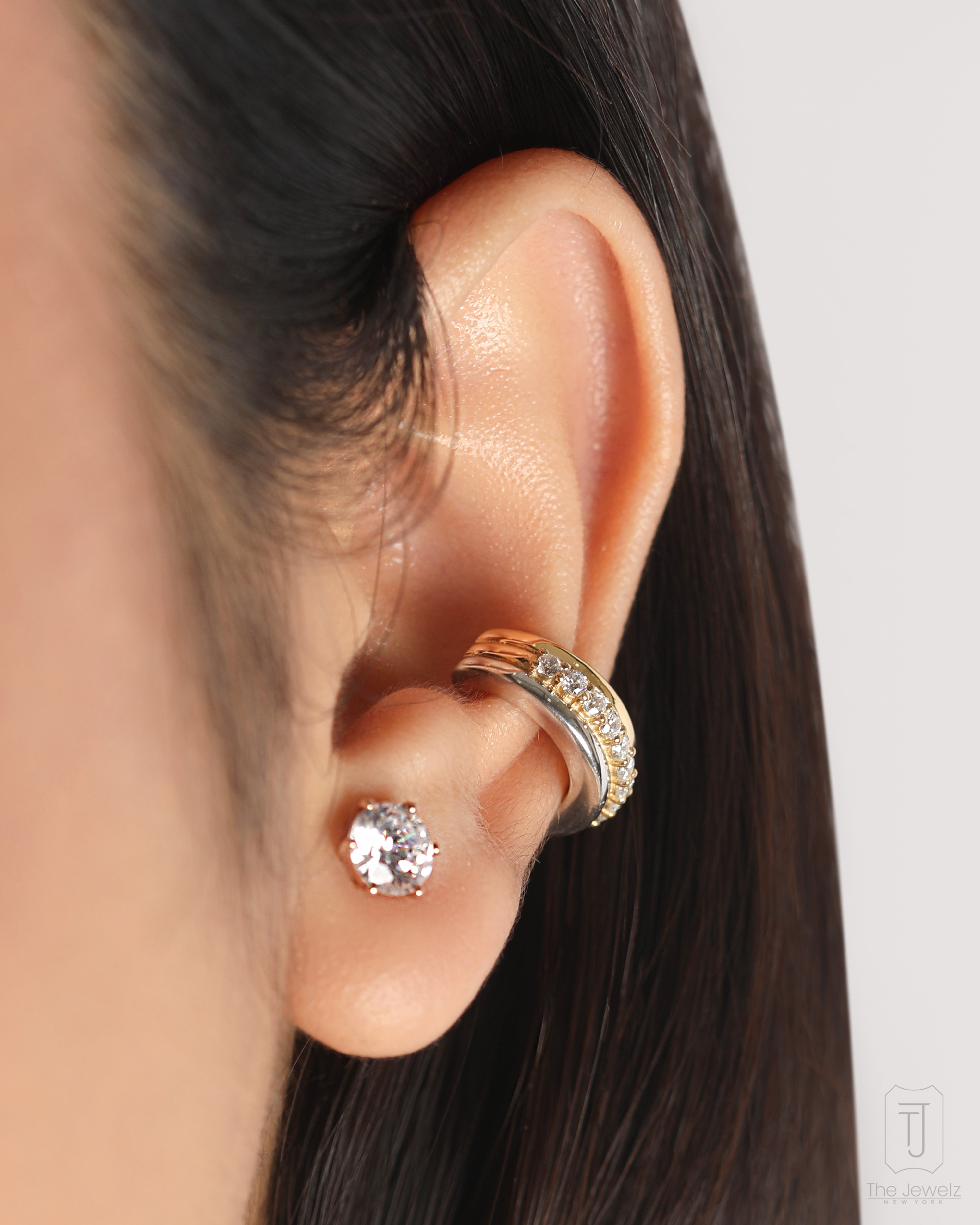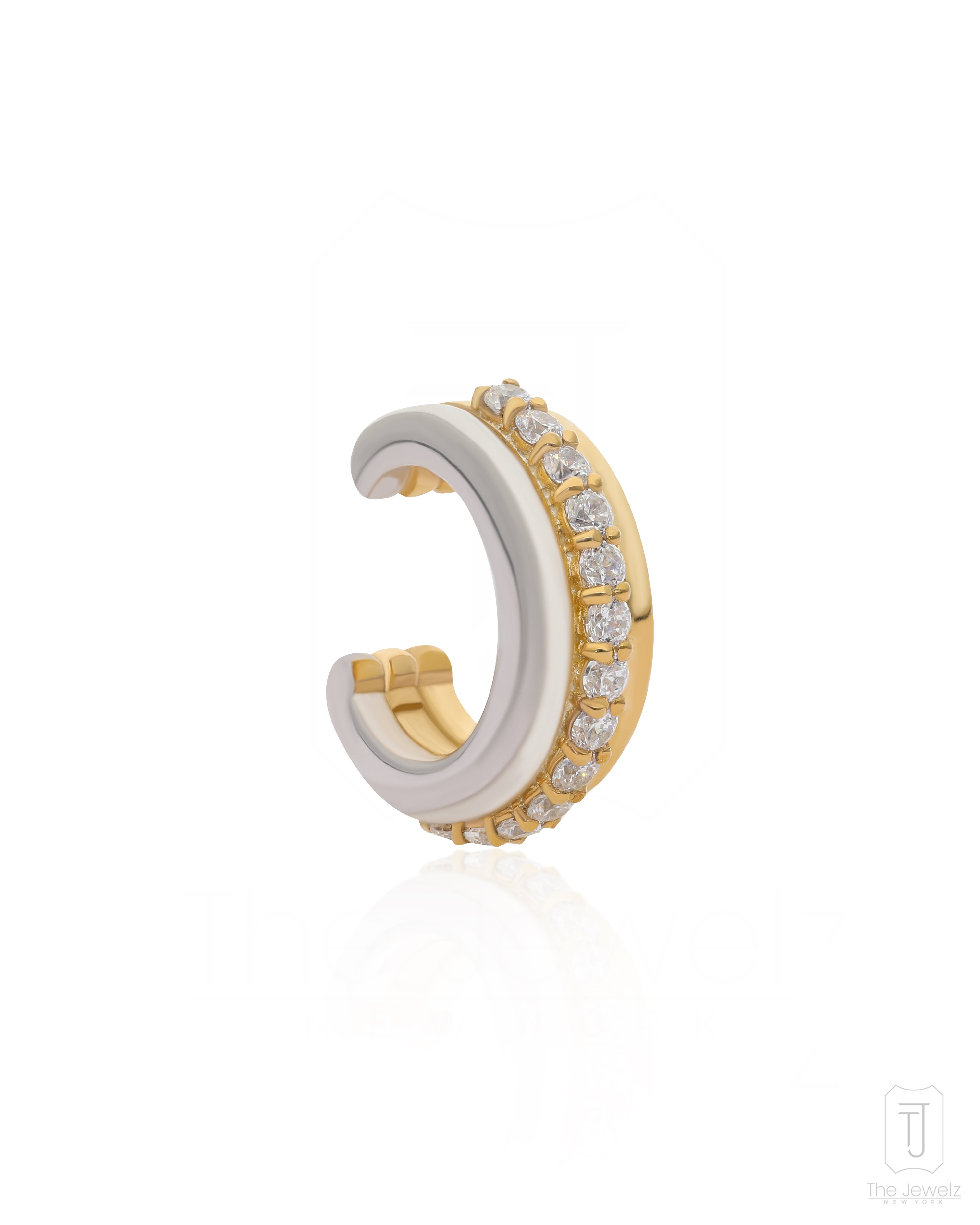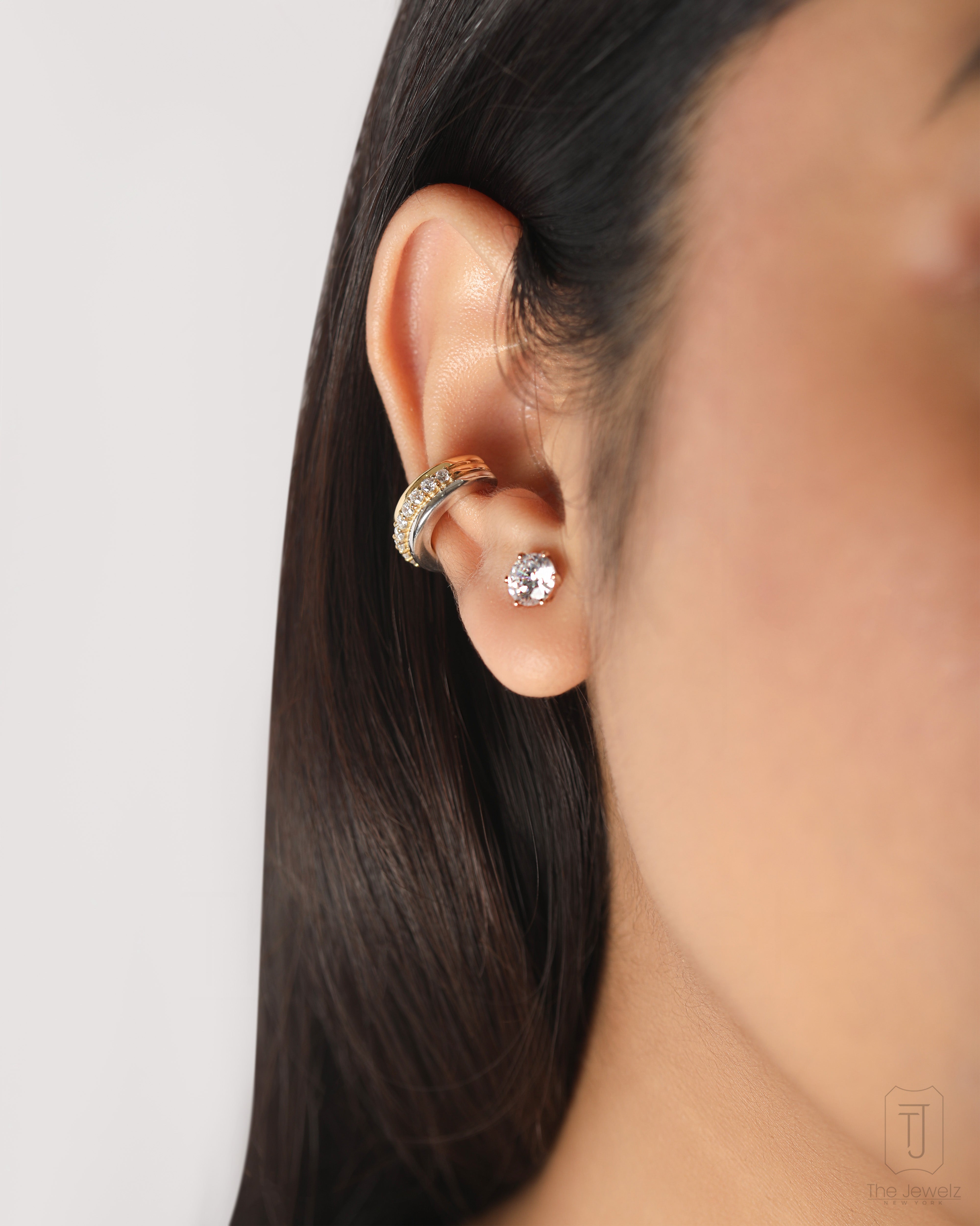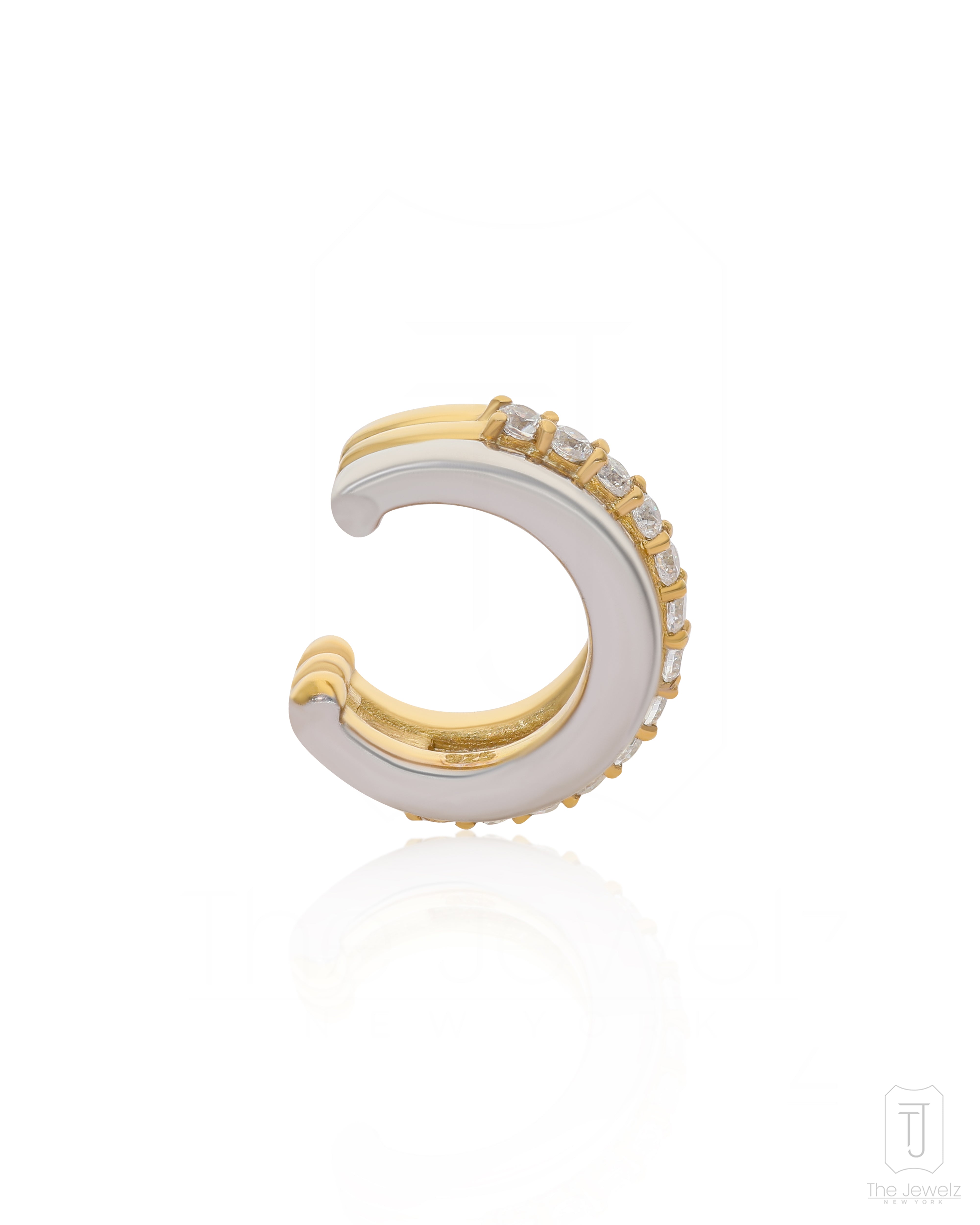 "Slide into the spotlight with the Axis Double-Toned Cuff—where silver and gold hit different. This chunky ear cuff flexes two sleek bands locked in perfect symmetry, drippin’ with glittery shine that catch every. single. angle. No piercings? No problem. Just slip it on and let your style talk its talk.