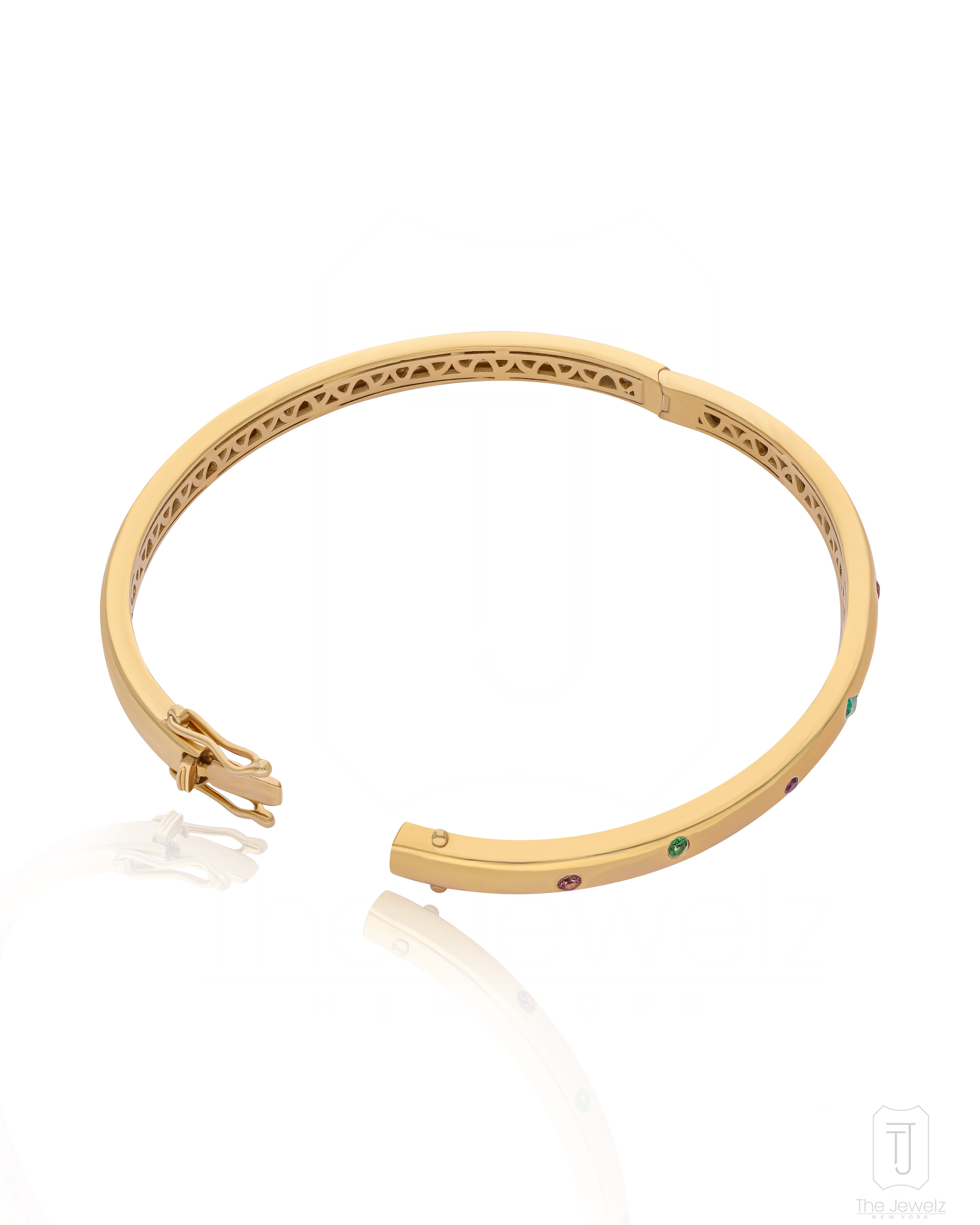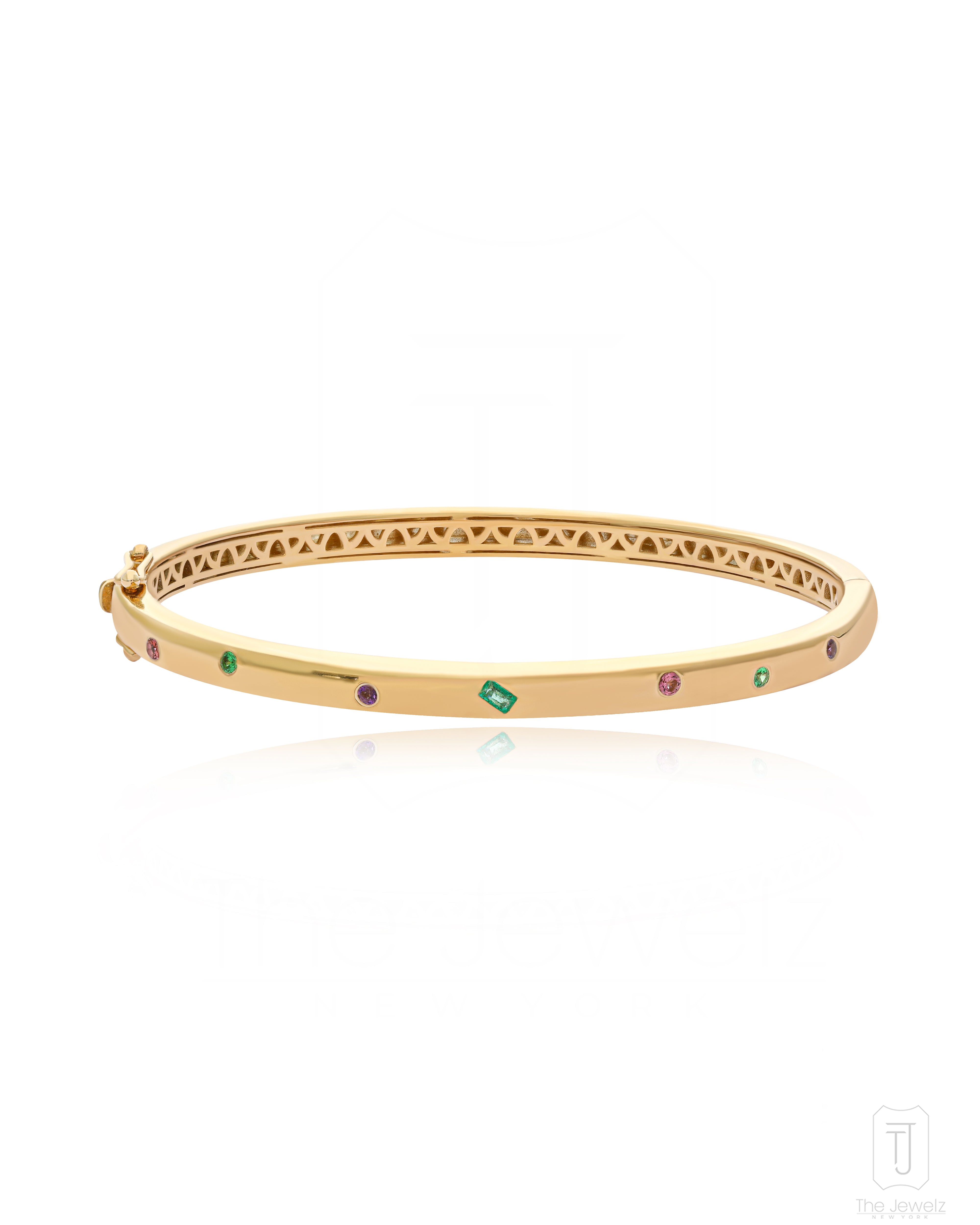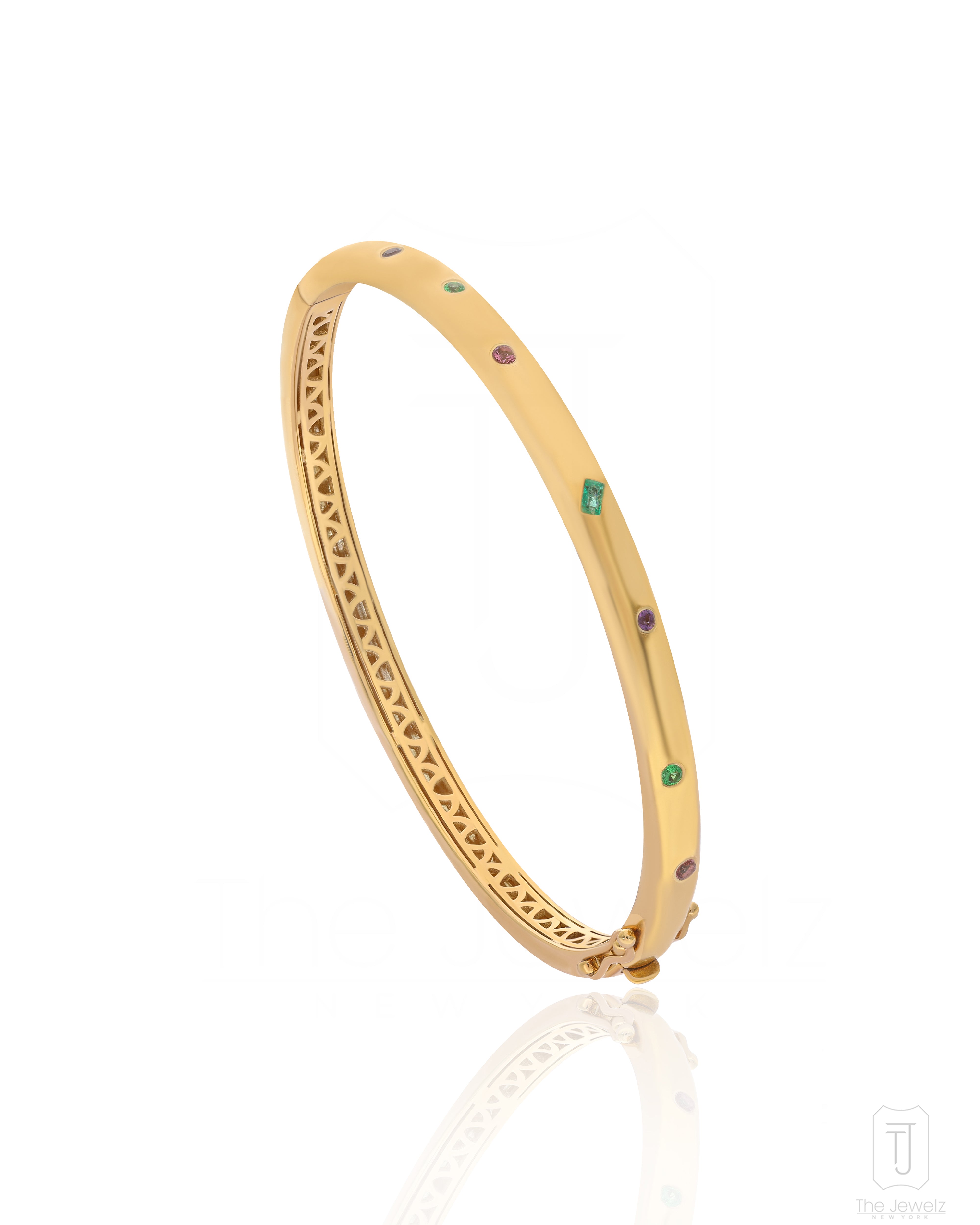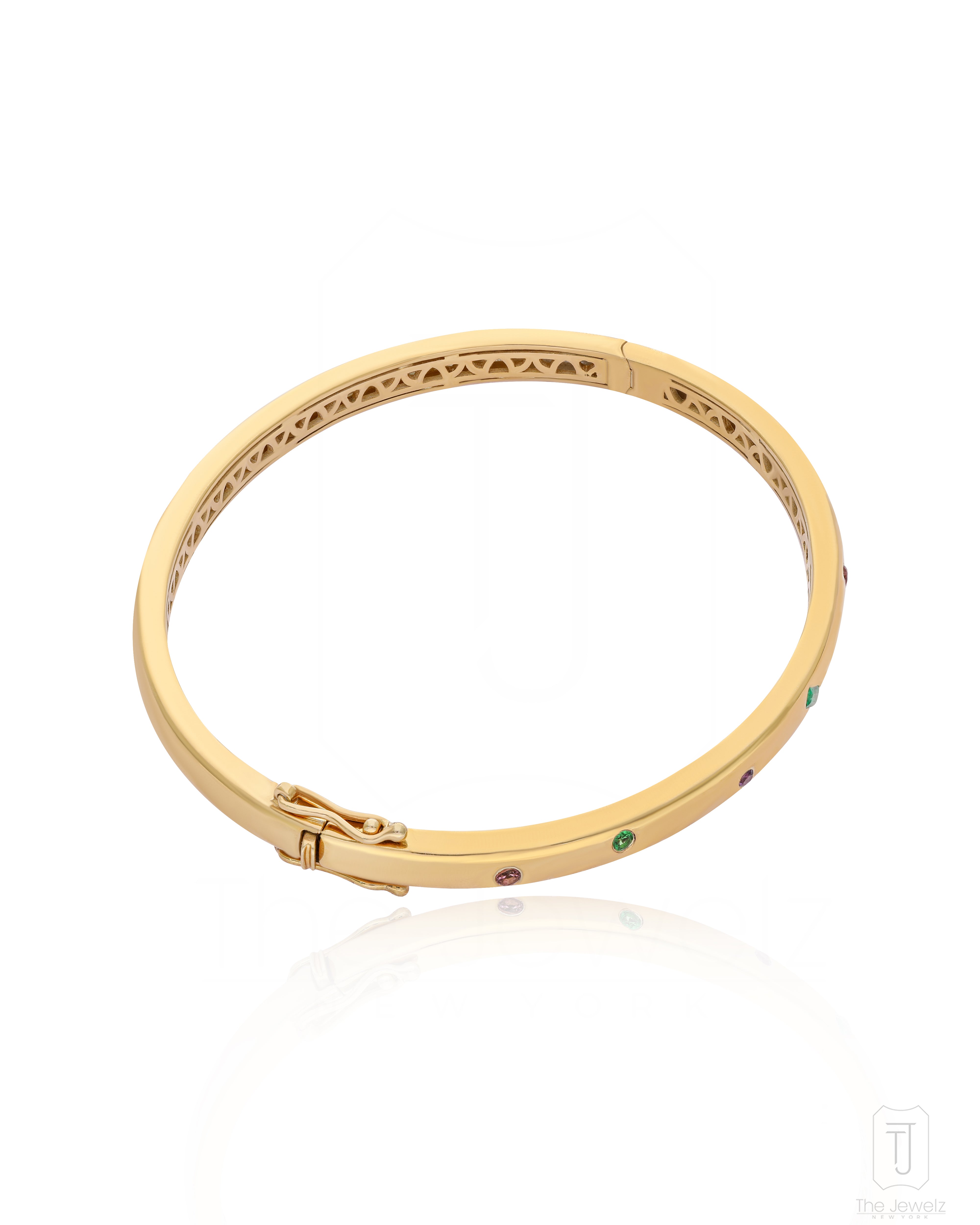Get ready to add a pop of color and style to your wardrobe with the Eraya Rainbow Bangle! With a gross weight of 12.80 Gms and a dimension of 6.75 inches, this bangle is not only stunning but also lightweight and comfortable to wear. Made with a metal weight of 12.75 Gms and featuring 0.24 Ct. gemstones, this bangle is a true gem. (Talk about serious arm candy!)