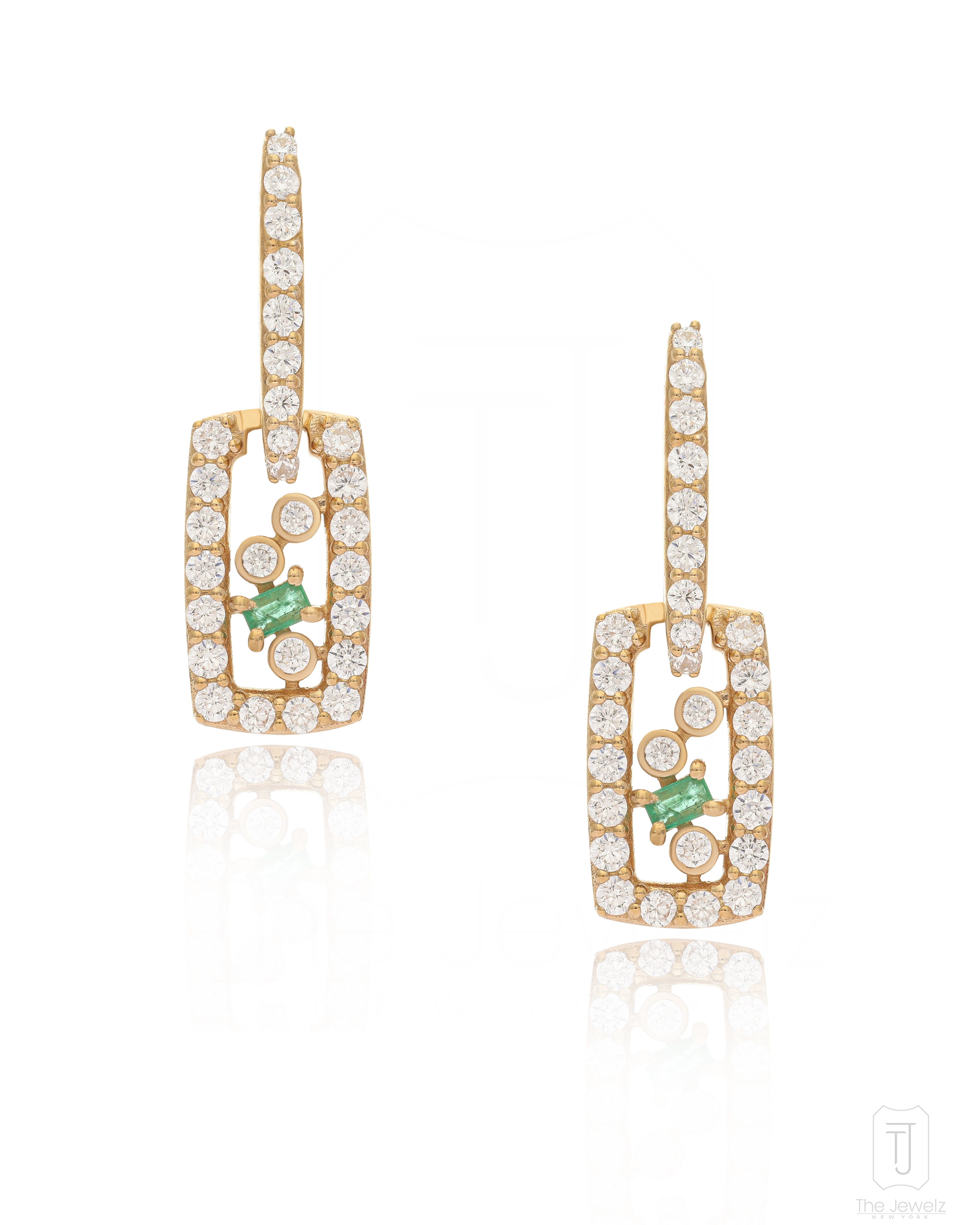 Add a playful touch to any outfit with Eraya Zest Paperclip Earrings! With a gross weight of 5.10 gms and dimension of 23 mm, these earrings are lightweight and easy to wear. Made with 4.66 gms of metal, they are durable and long-lasting. Complete with a touch of sparkle from the 0.12 ct emerald and 2.08 ct cubic zirconia, these earrings are perfect for any occasion.
