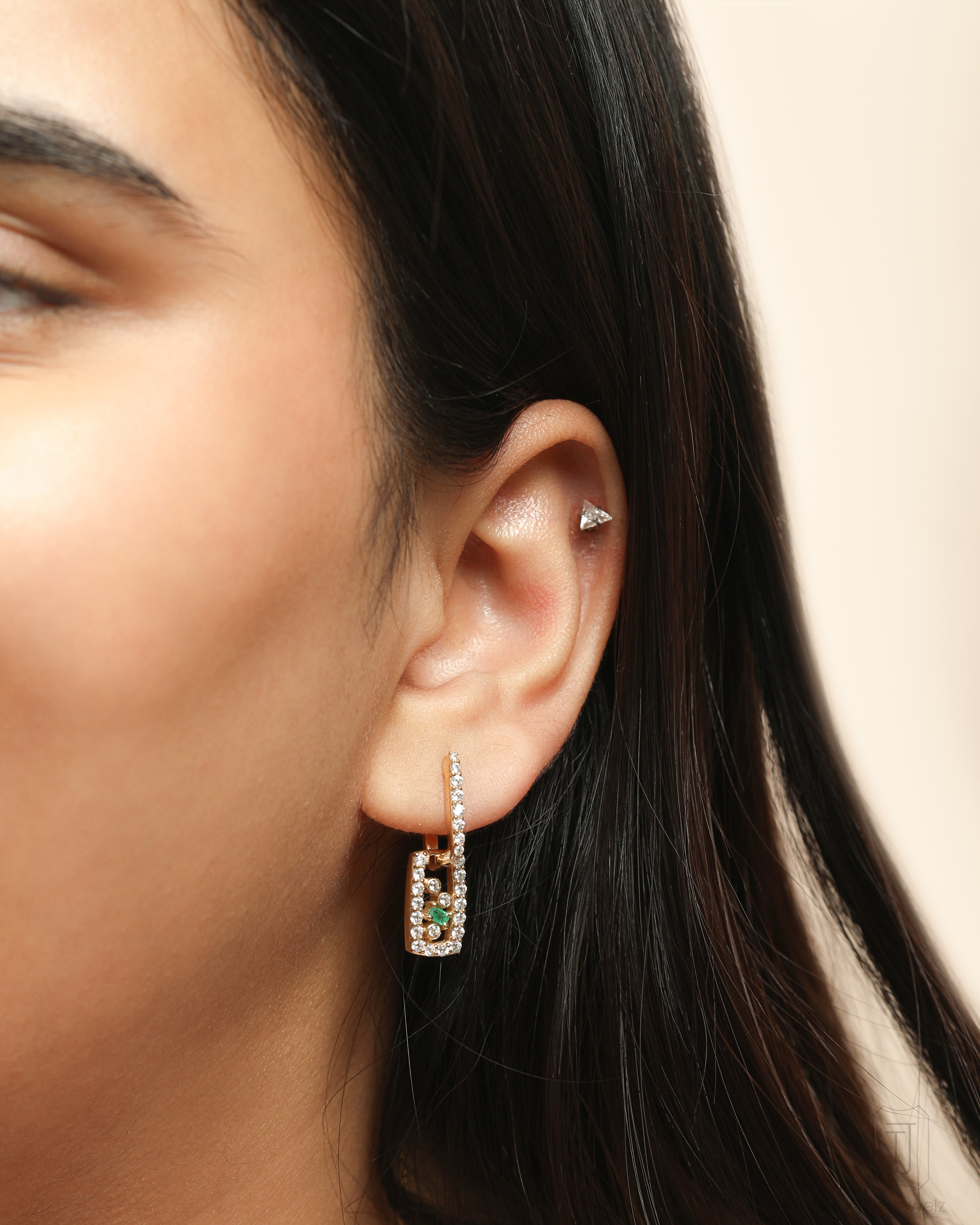 Designed for the woman who cherishes clean lines and jewelery which is as fun as it is functional. This simply sensational pair is the epitome of small statements that packs a bejeweled punch. With these earrings, even a simple black shirt and jeans combo can transform into a "woah is that you Jane?" moment. Trust us, you won't regret it.