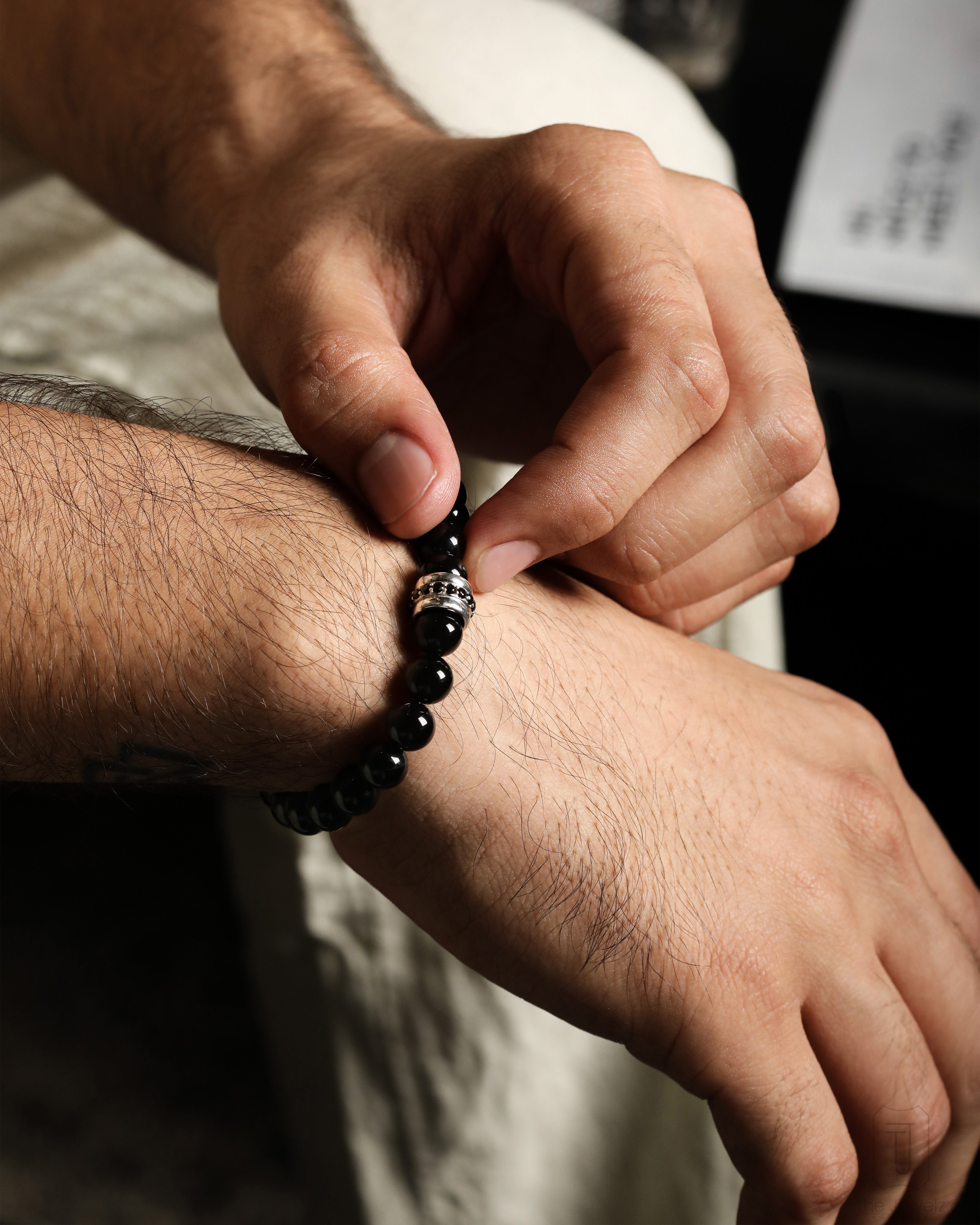 Add a touch of sparkle to your outfit with the Pulse Bracelet. Made with 925 silver, this polished bracelet features a unique combination of onyx, silver, and spinel beads for a sophisticated look. With a weight of 20.47 grams, this bracelet is both elegant and eye-catching.
