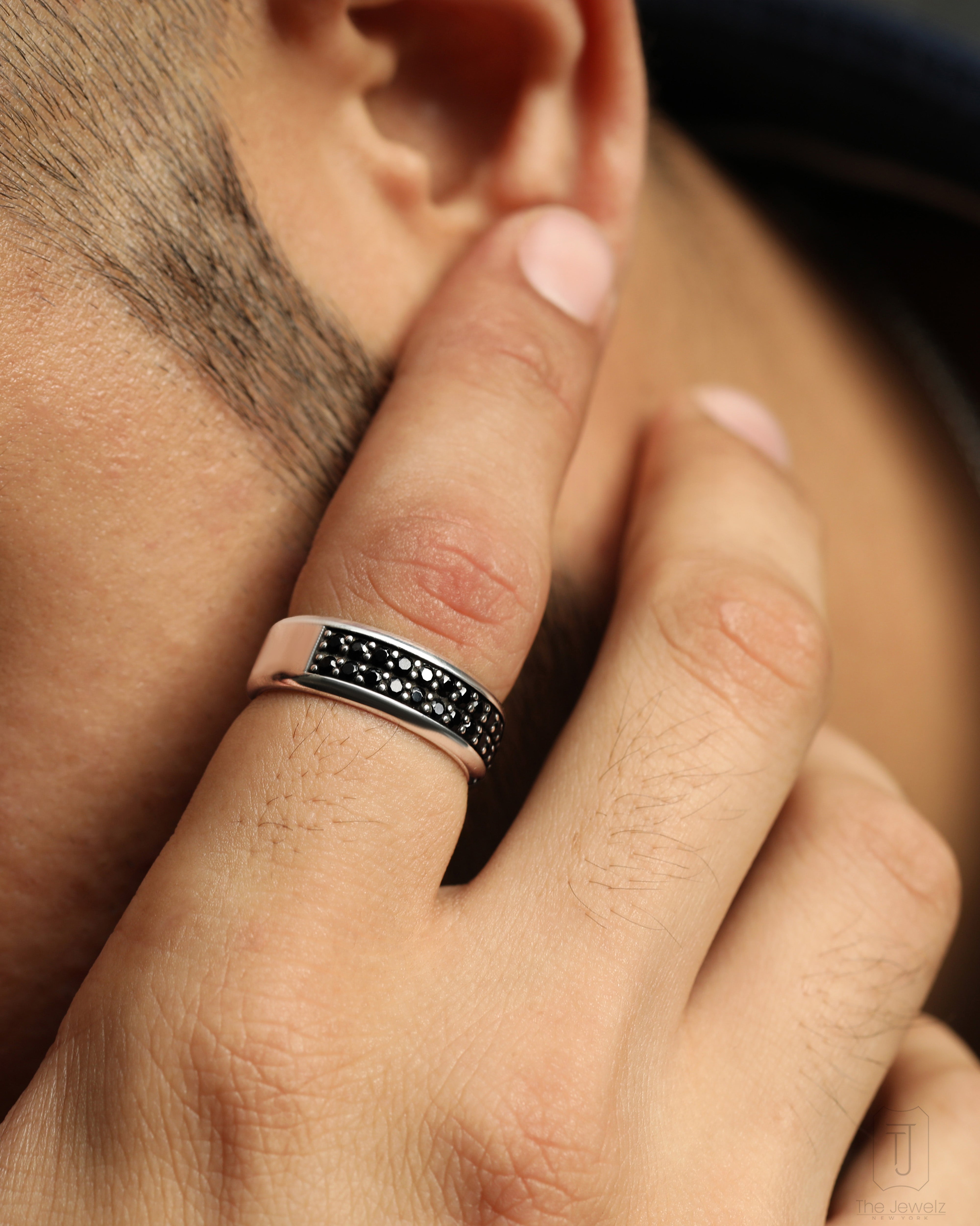 Introducing our Essence Spinel Band - a bold and durable statement piece for any stylish man. Made from 925 sterling silver with a black spinel half band, this ring is the perfect touch of luxury for any outfit. Plus, the subtle oxidization adds a unique touch.