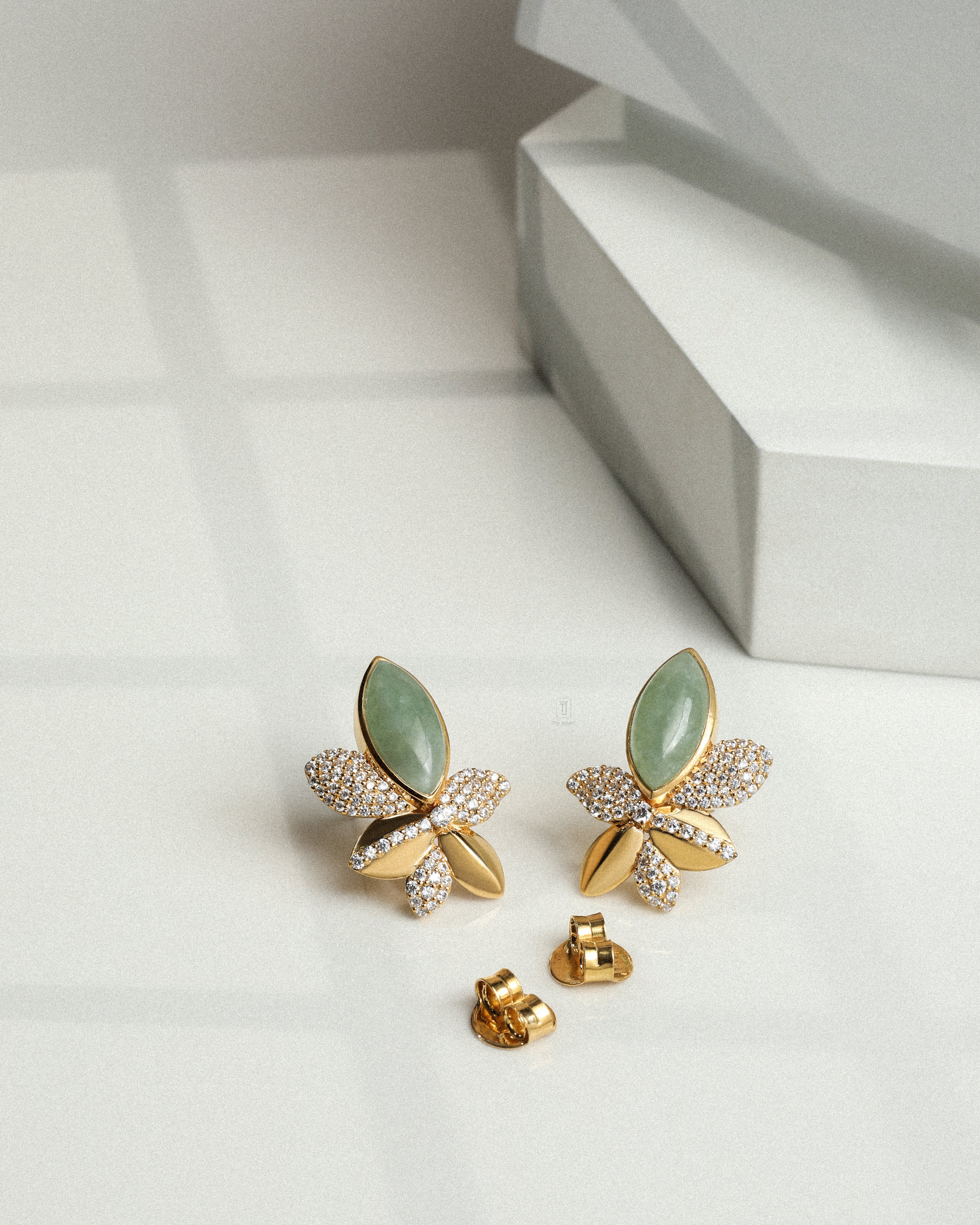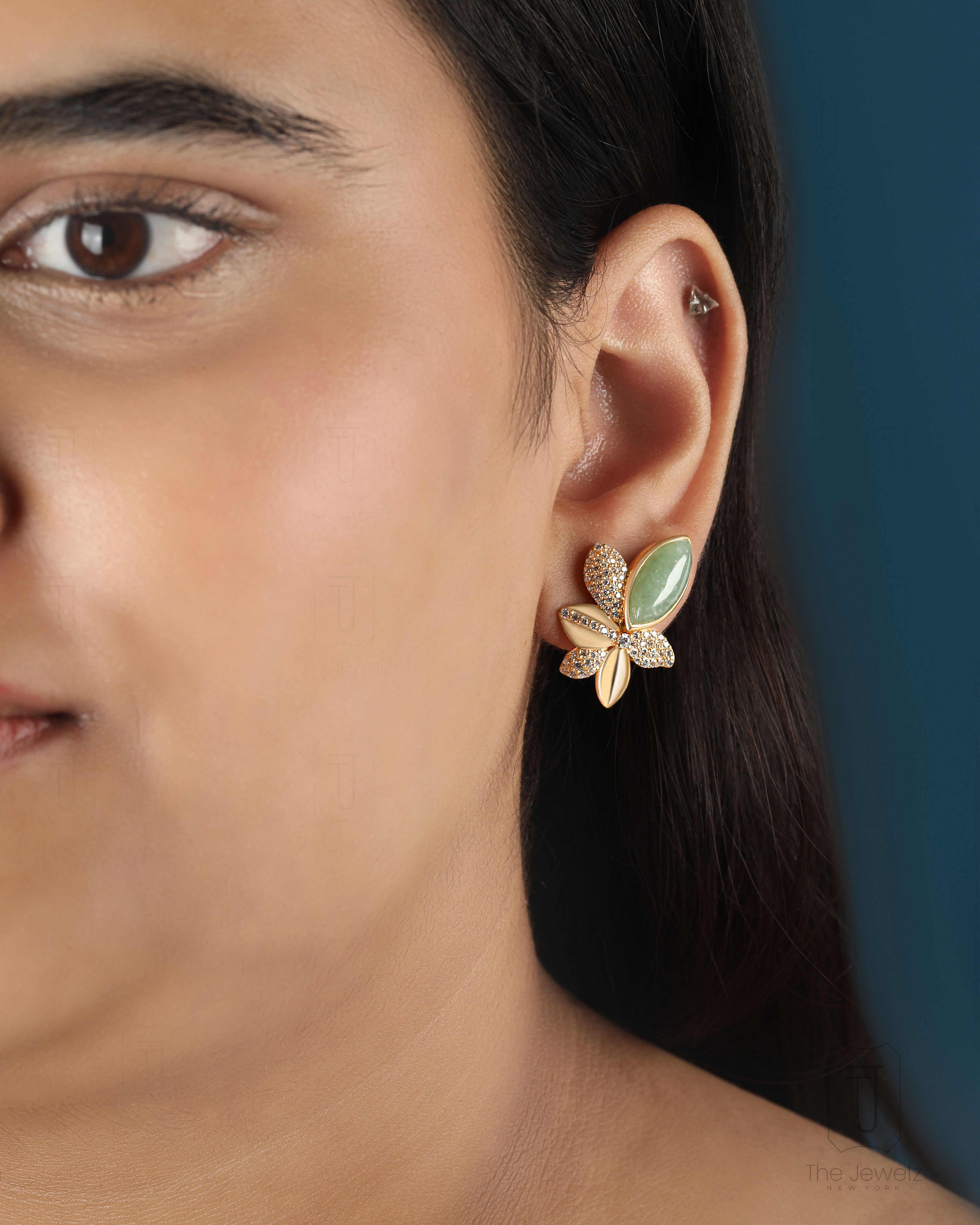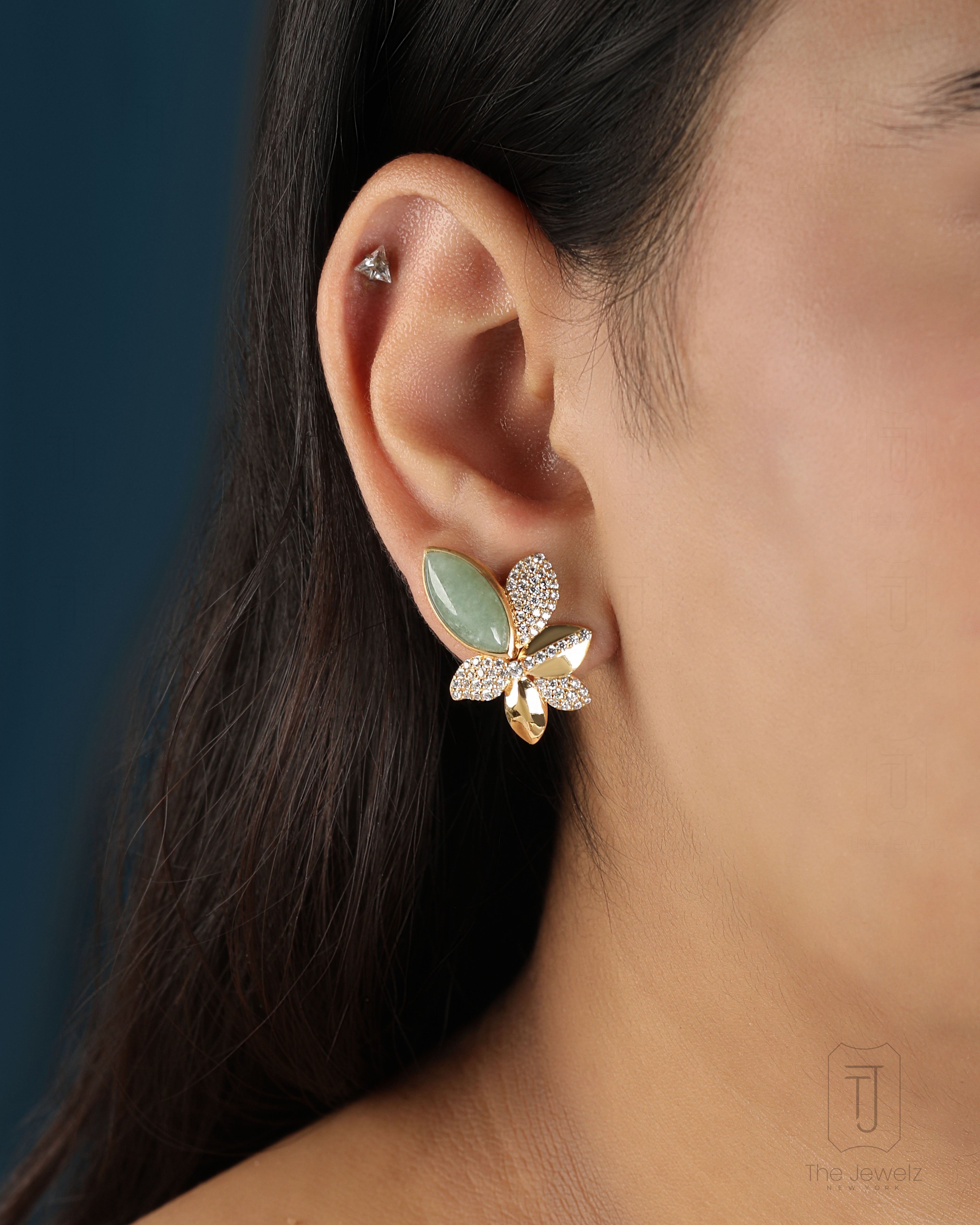 Craving a touch of floral flair without sacrificing your fierce fashion game? Look no further. These dazzling studs are a golden garden party for your ears, featuring a single, showstopping Aventurine petal surrounded by a sparkling constellation of diamonds (cz). Gardenia Ava Studs are the perfect blend of chic and high-end glam, guaranteed to turn heads without overpowering your look.
