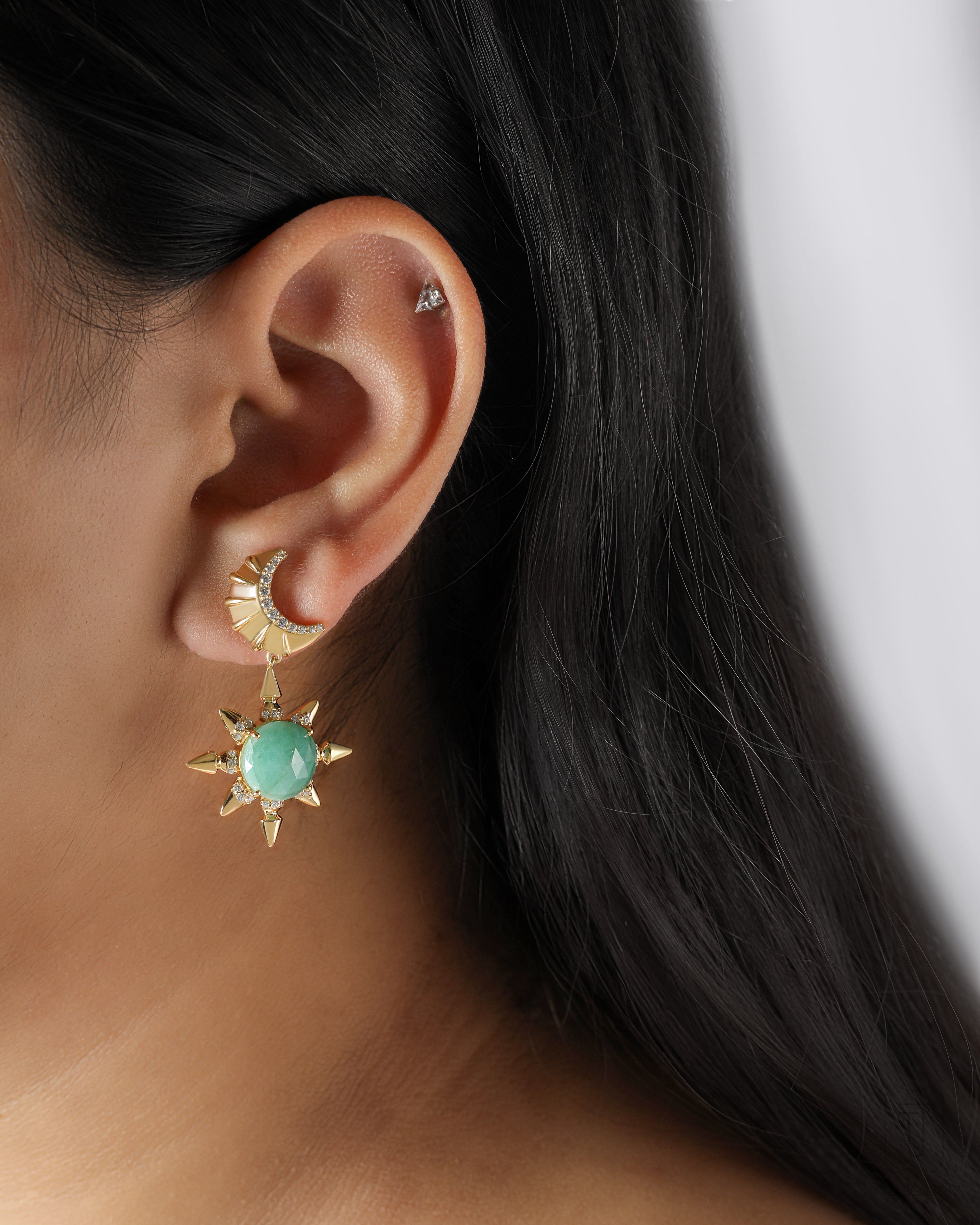 The Prophecy Earrings - talisman of balance, a reminder that every shadow yields to light. A celestial tango of moon and sun, these aren't mere adornments but wearable constellations. Let their ethereal dance cast a spellbinding aura around you.
