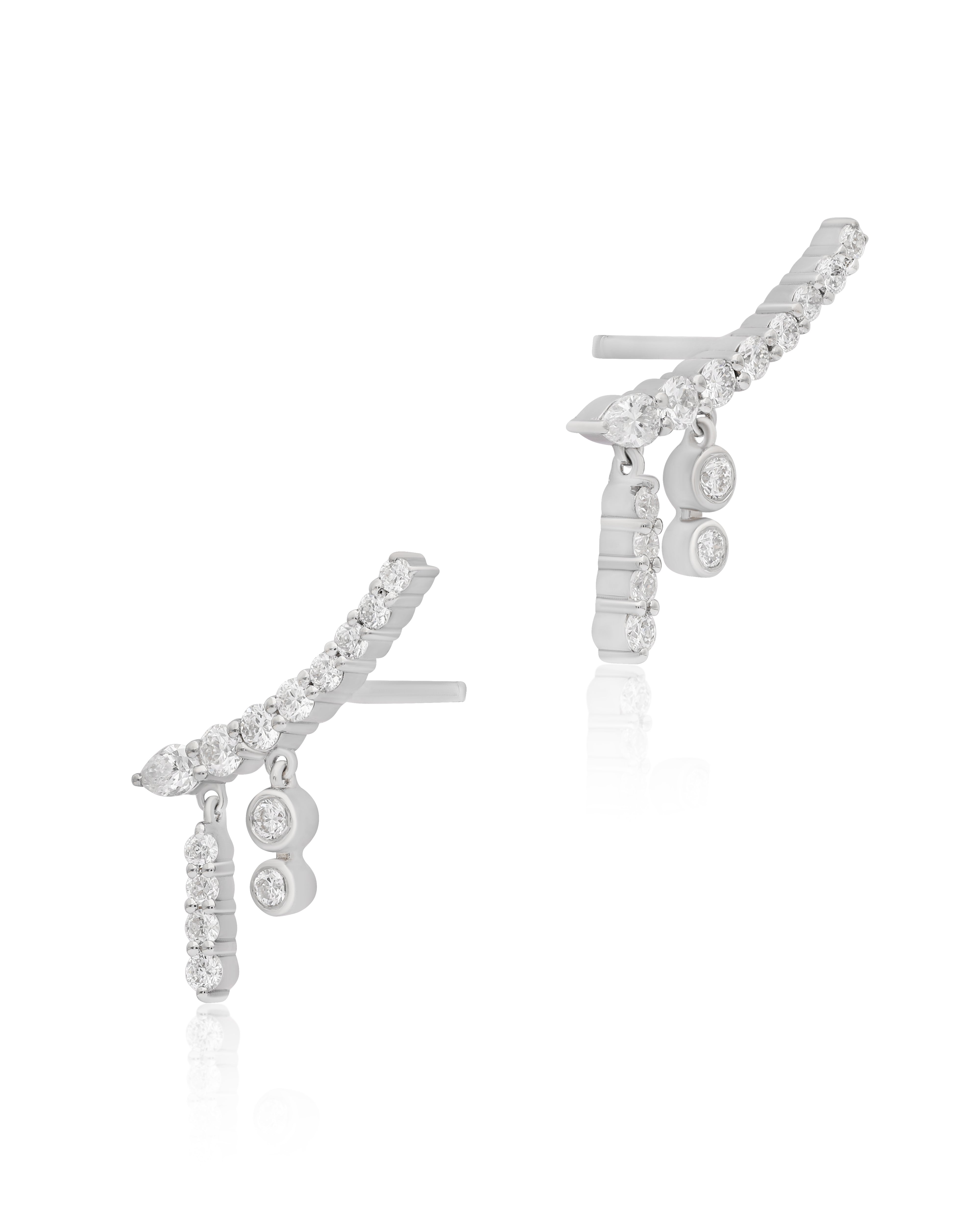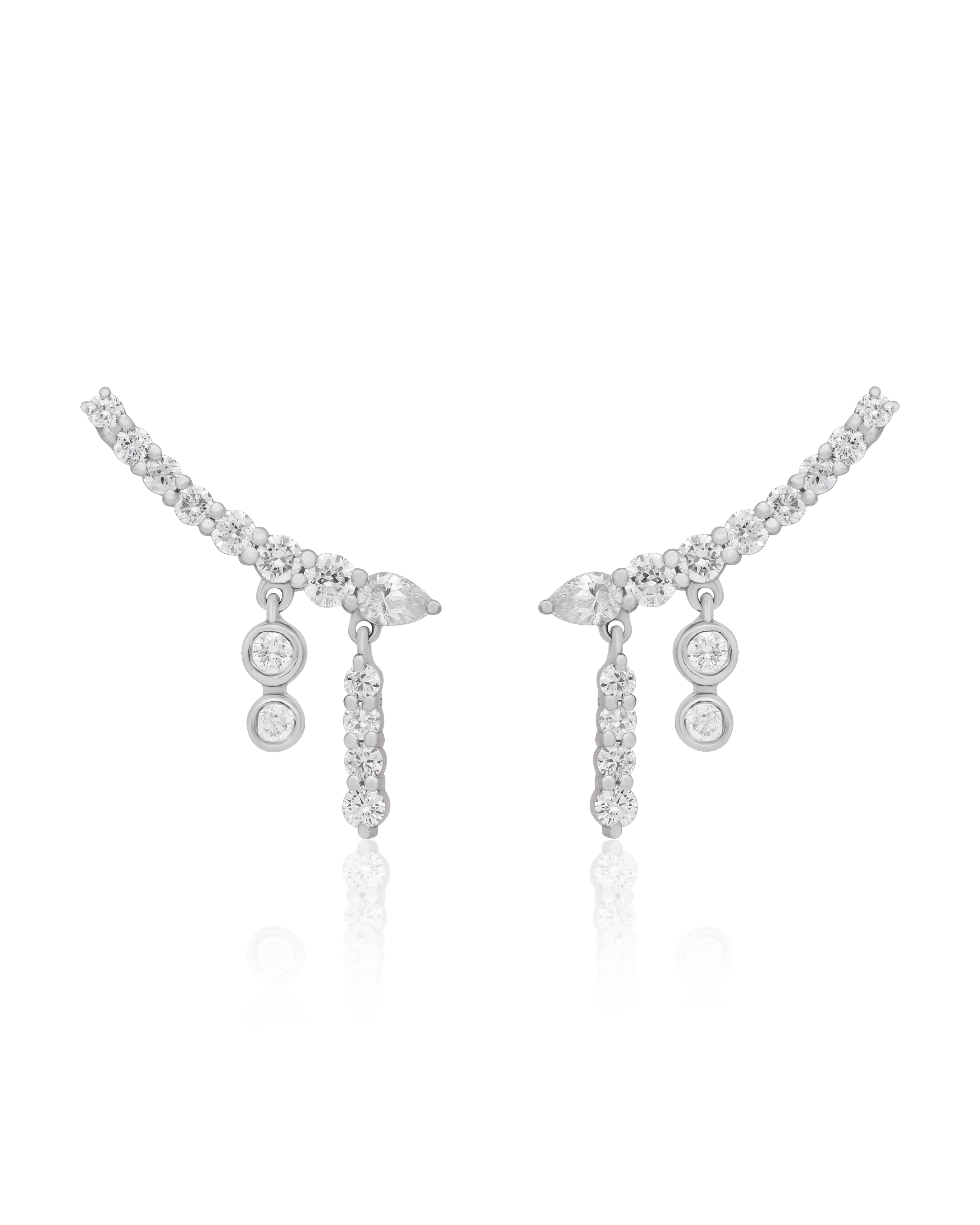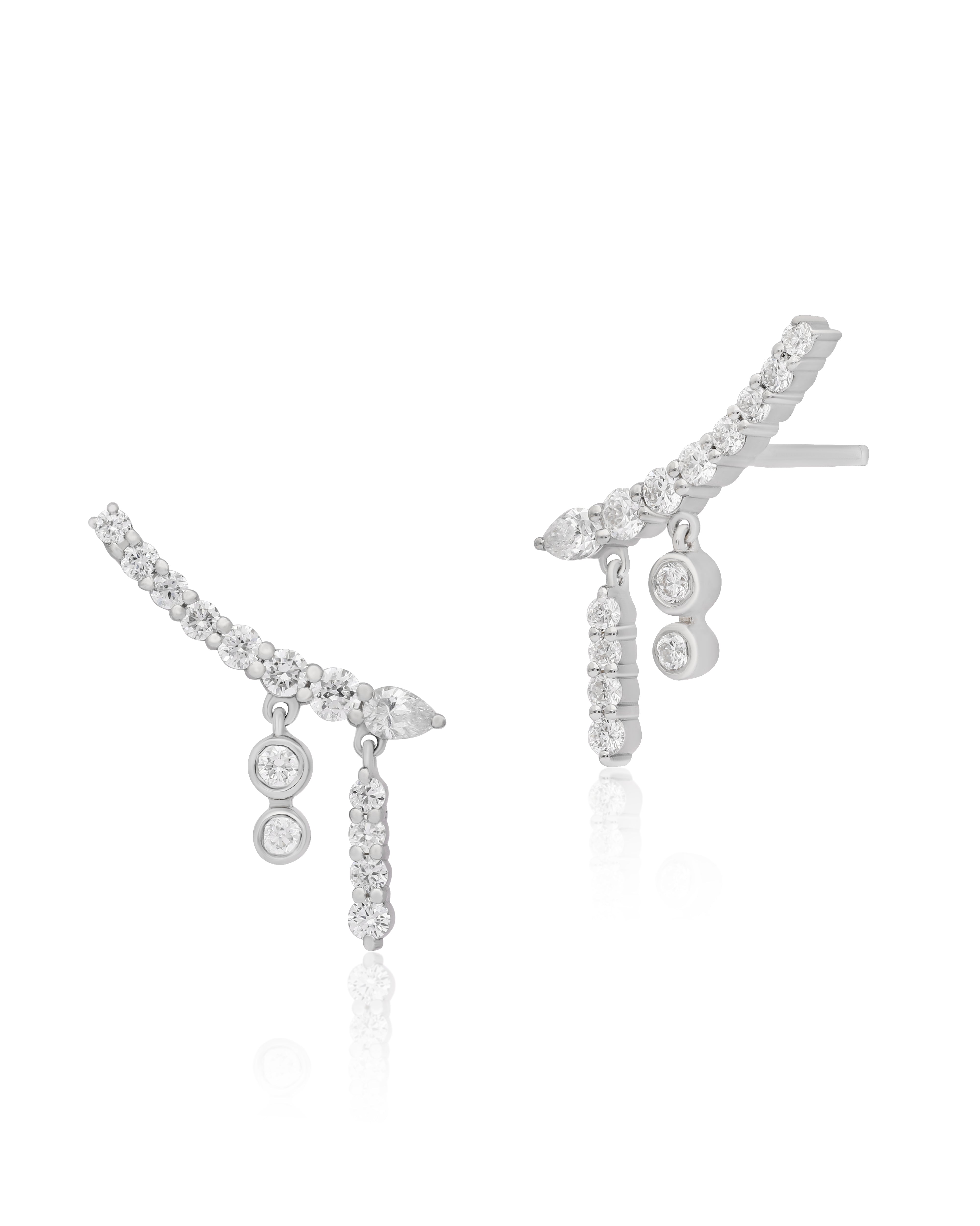 With their stunning symmetry and a structural assortment of brilliant diamonds, these earrings feature a graceful arc that perfectly frames your ear. Whether you're heading to the office or out for a night on the town, these climbers are the perfect accessory to add some understated glamour to your look.