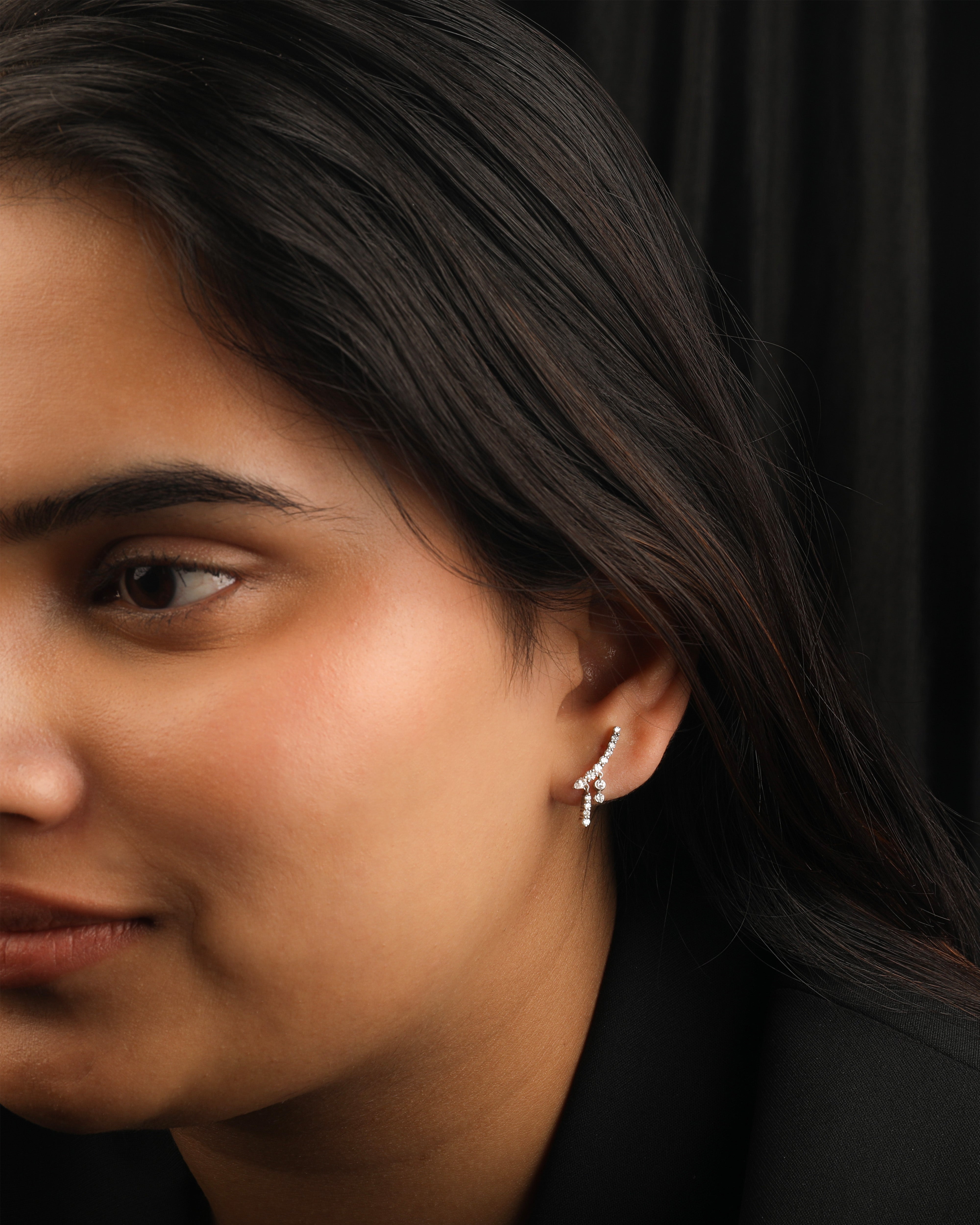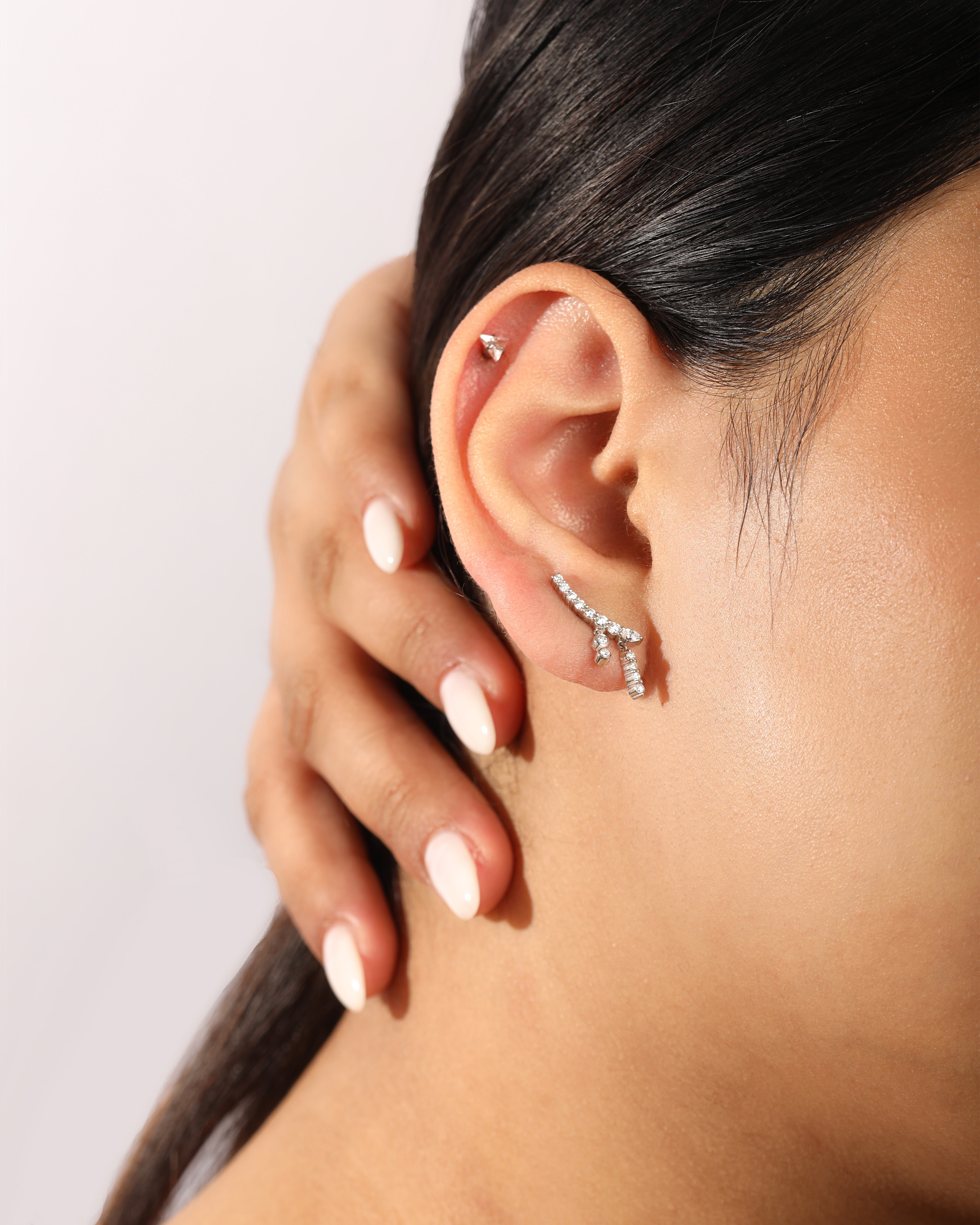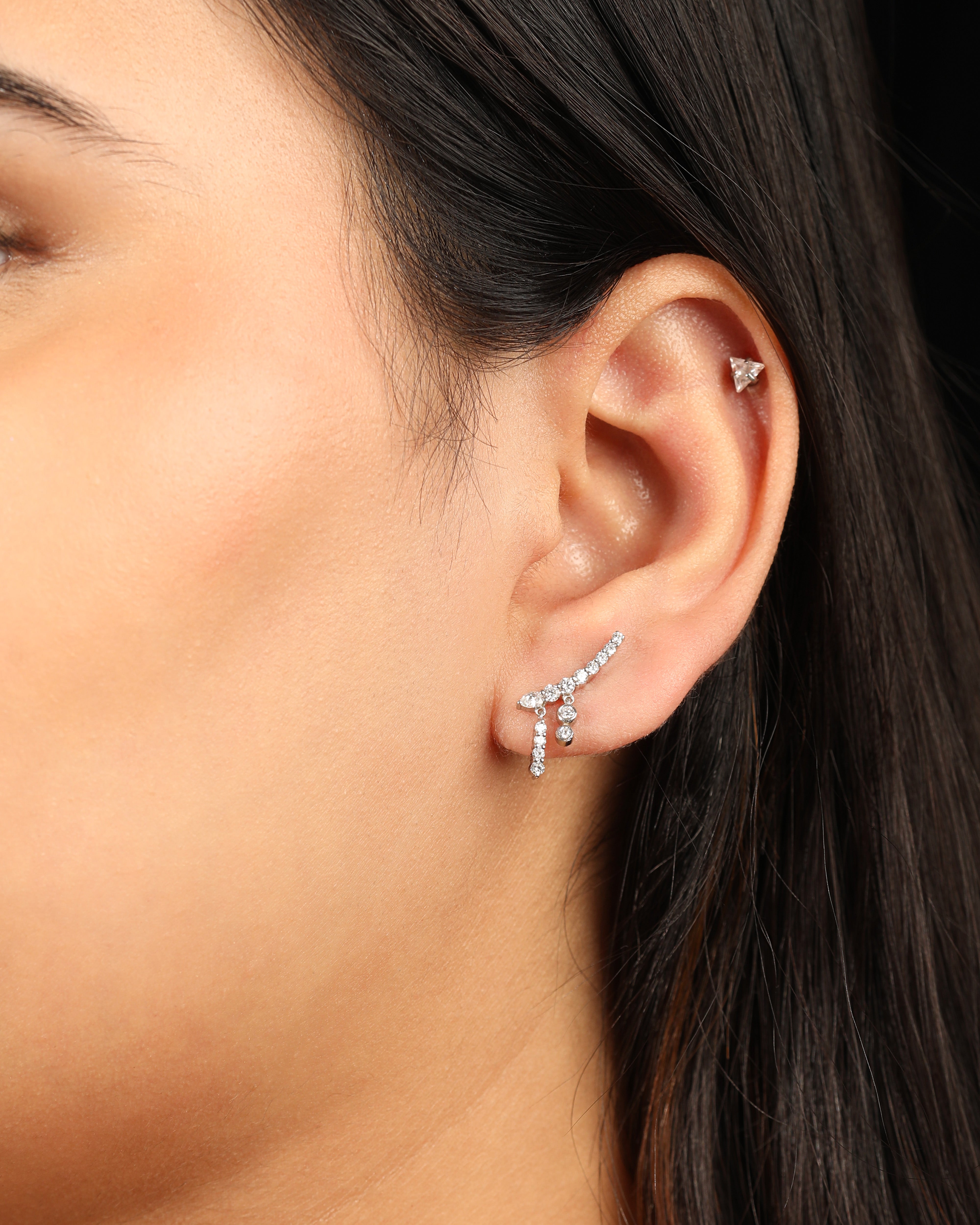 With their stunning symmetry and a structural assortment of brilliant diamonds, these earrings feature a graceful arc that perfectly frames your ear. Whether you're heading to the office or out for a night on the town, these climbers are the perfect accessory to add some understated glamour to your look.