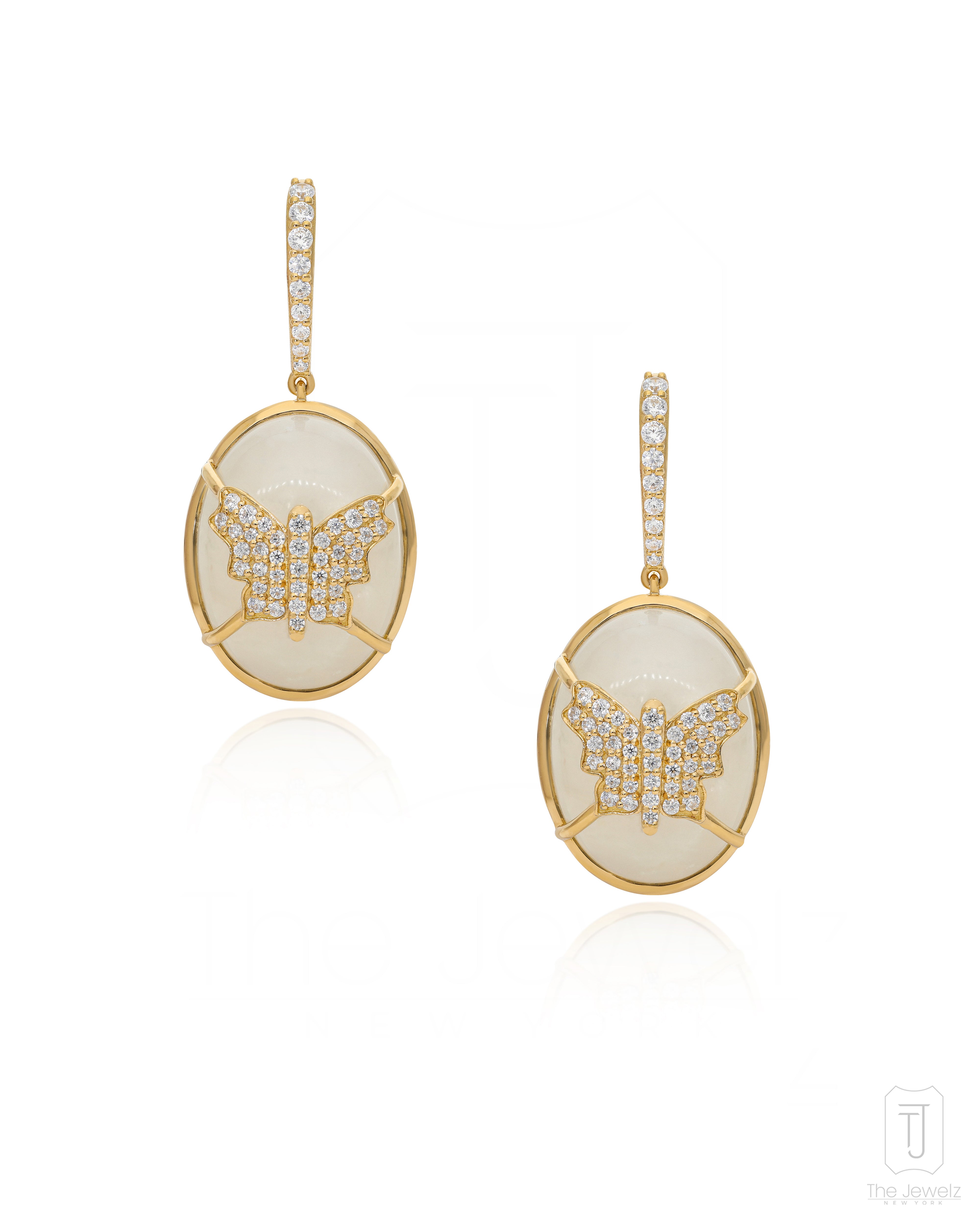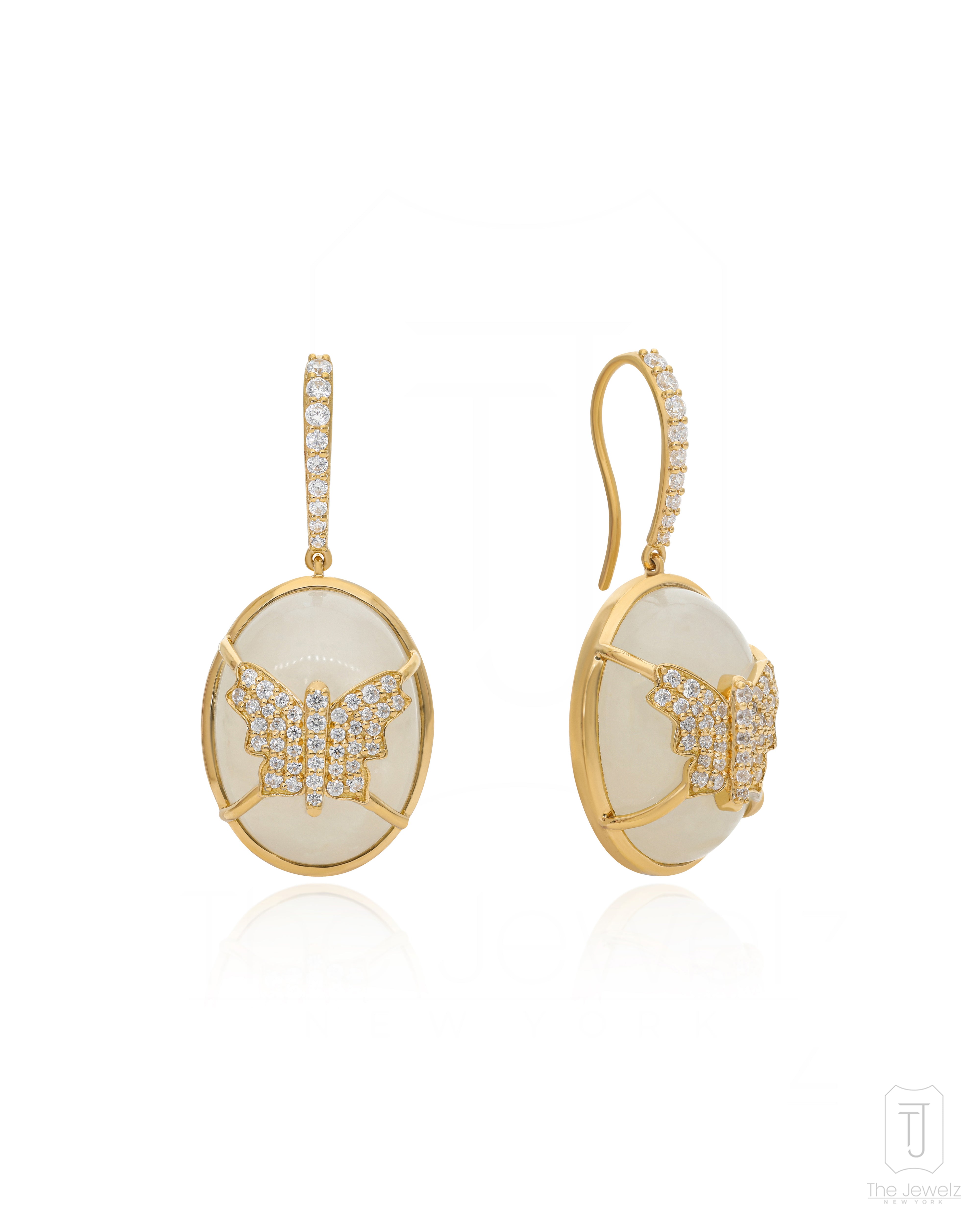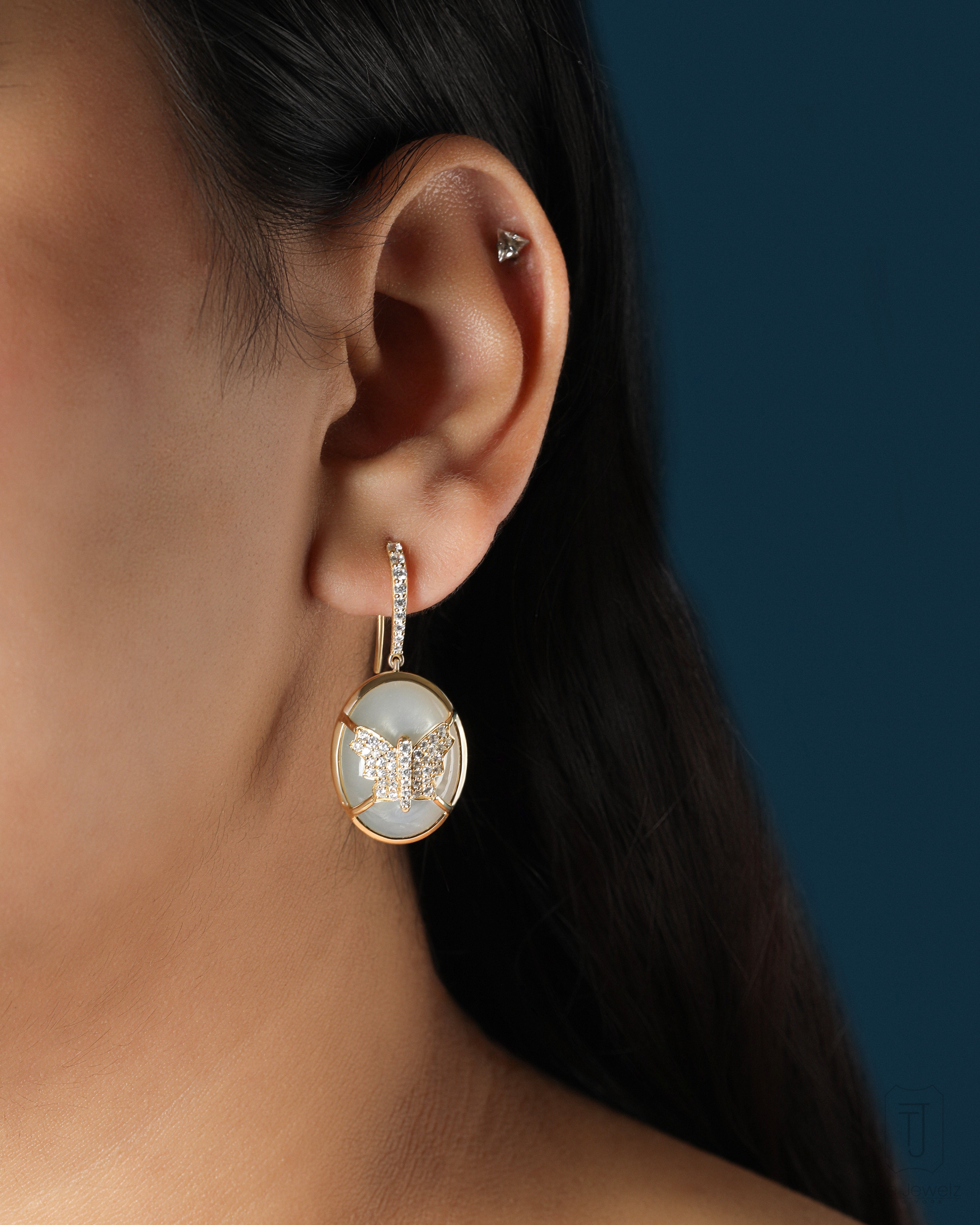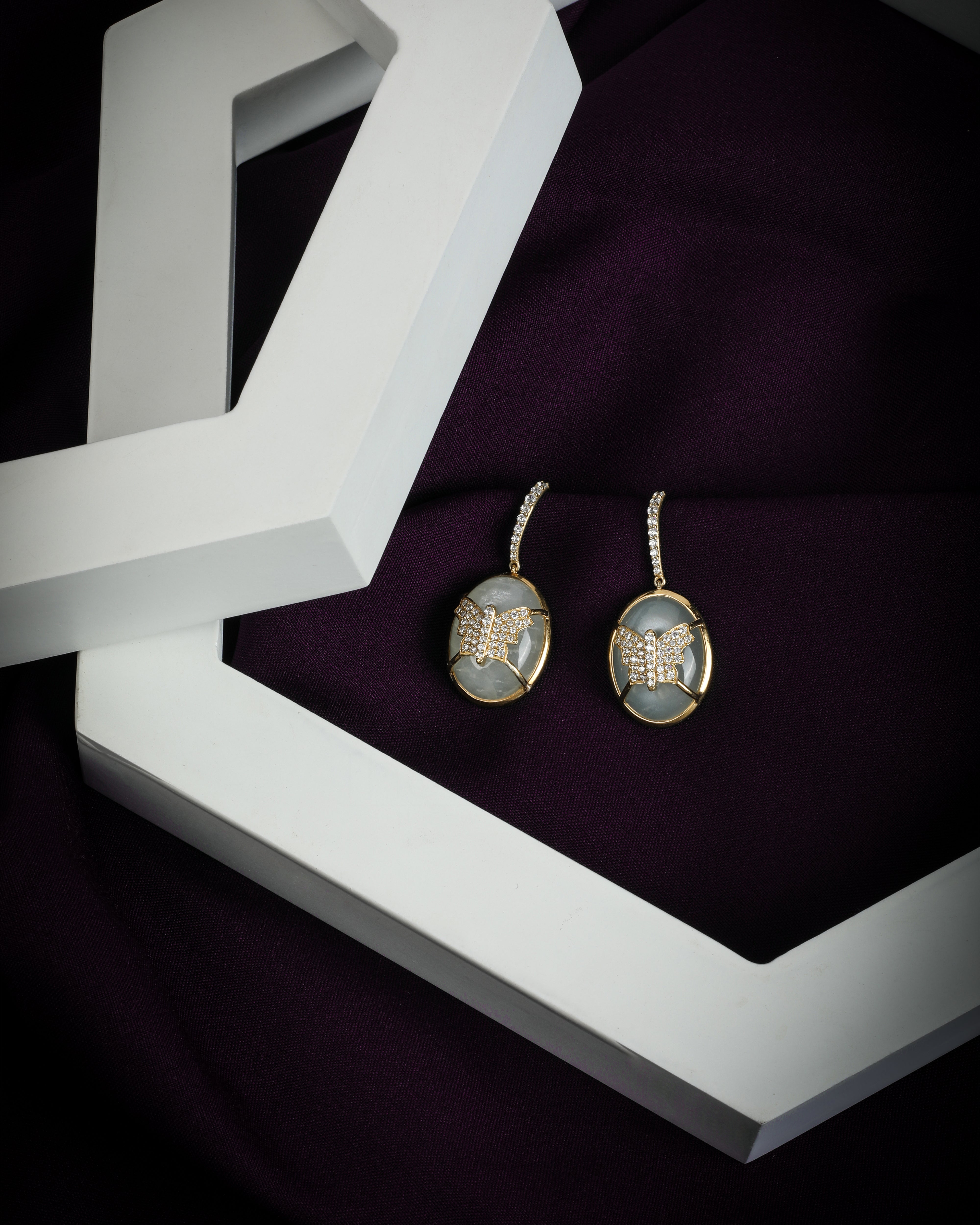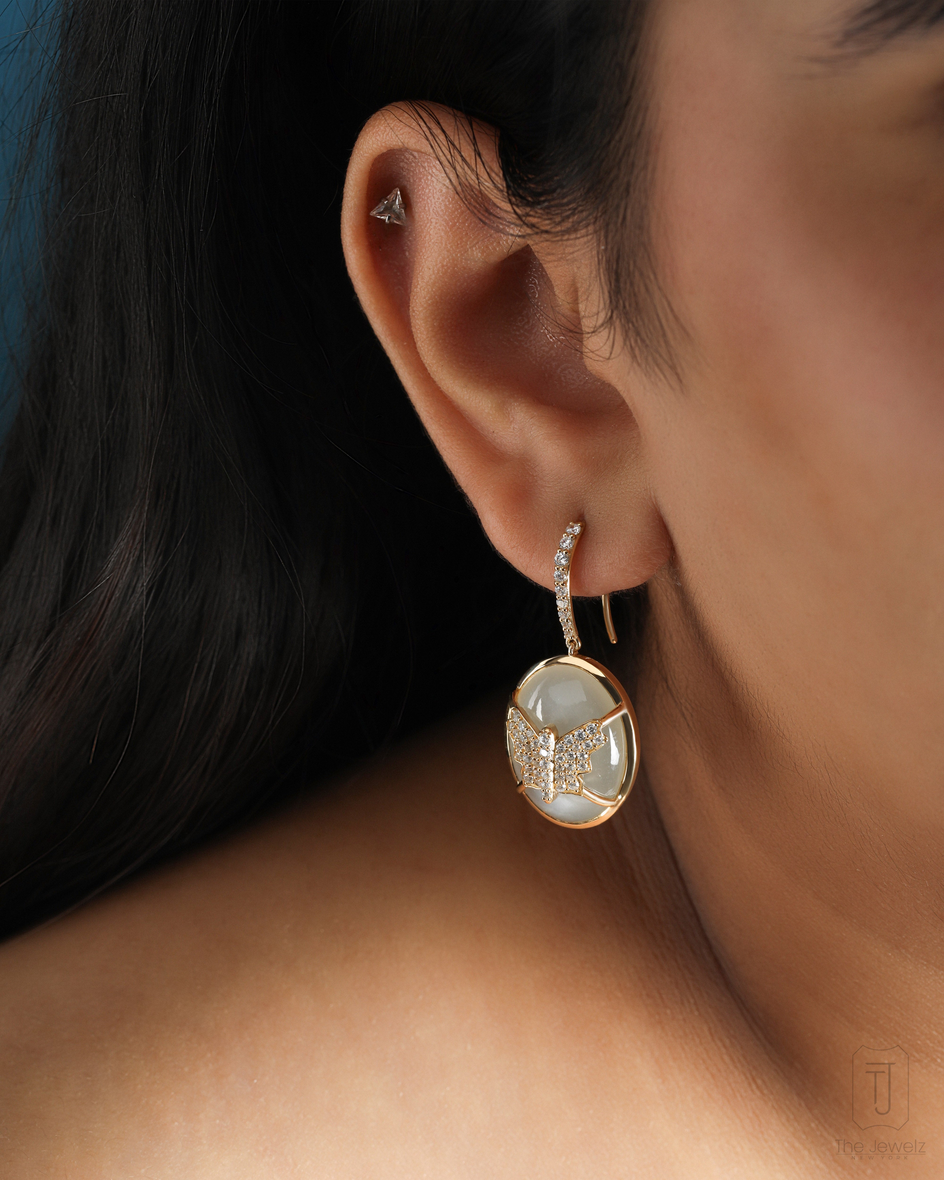 Designed to turn heads and ignite imaginations, these moonstone earrings are not for the timid. A captive butterfly, frozen in a moment of ethereal grace, lies at the heart of each moonstone. They're a statement as bold as your personality.