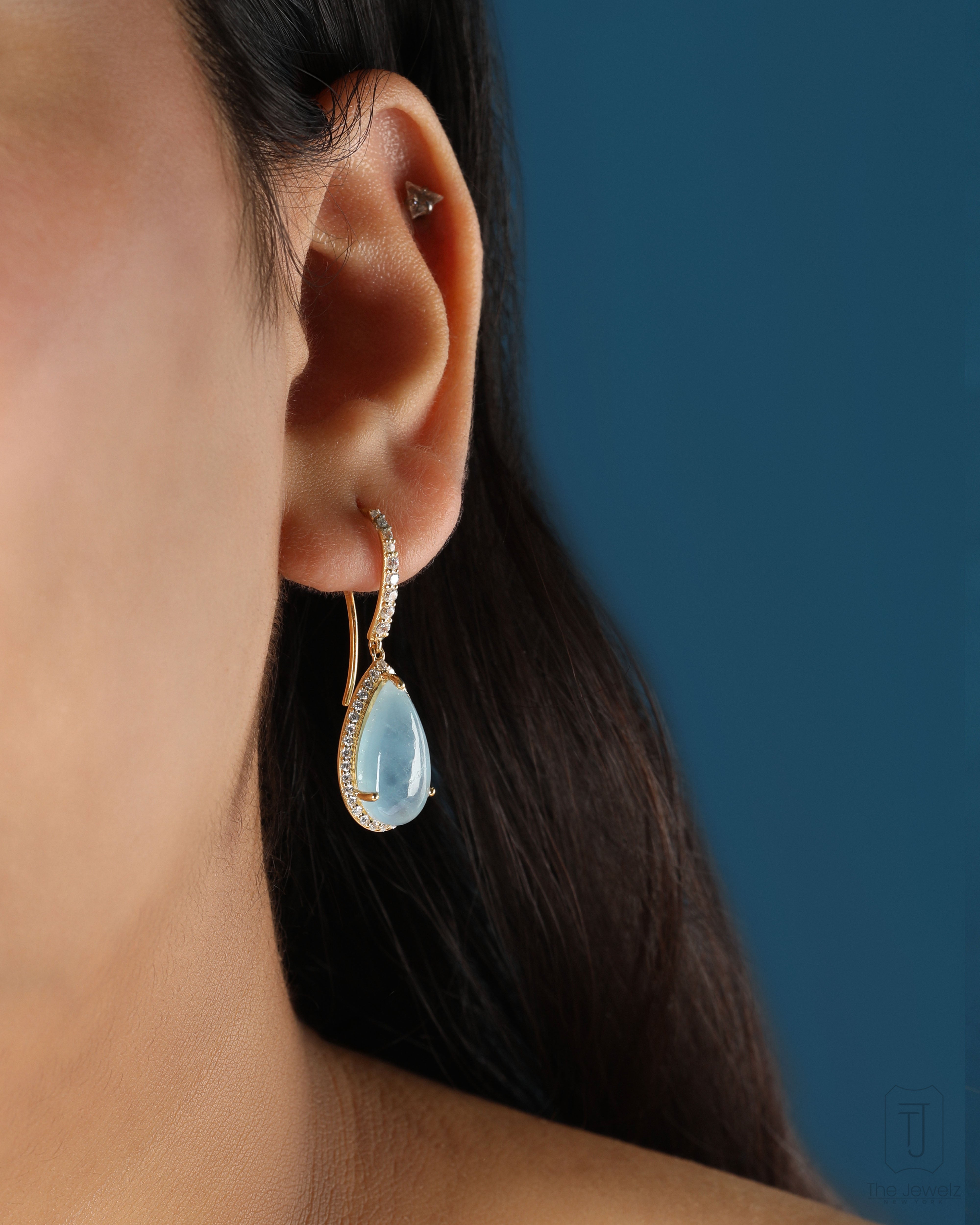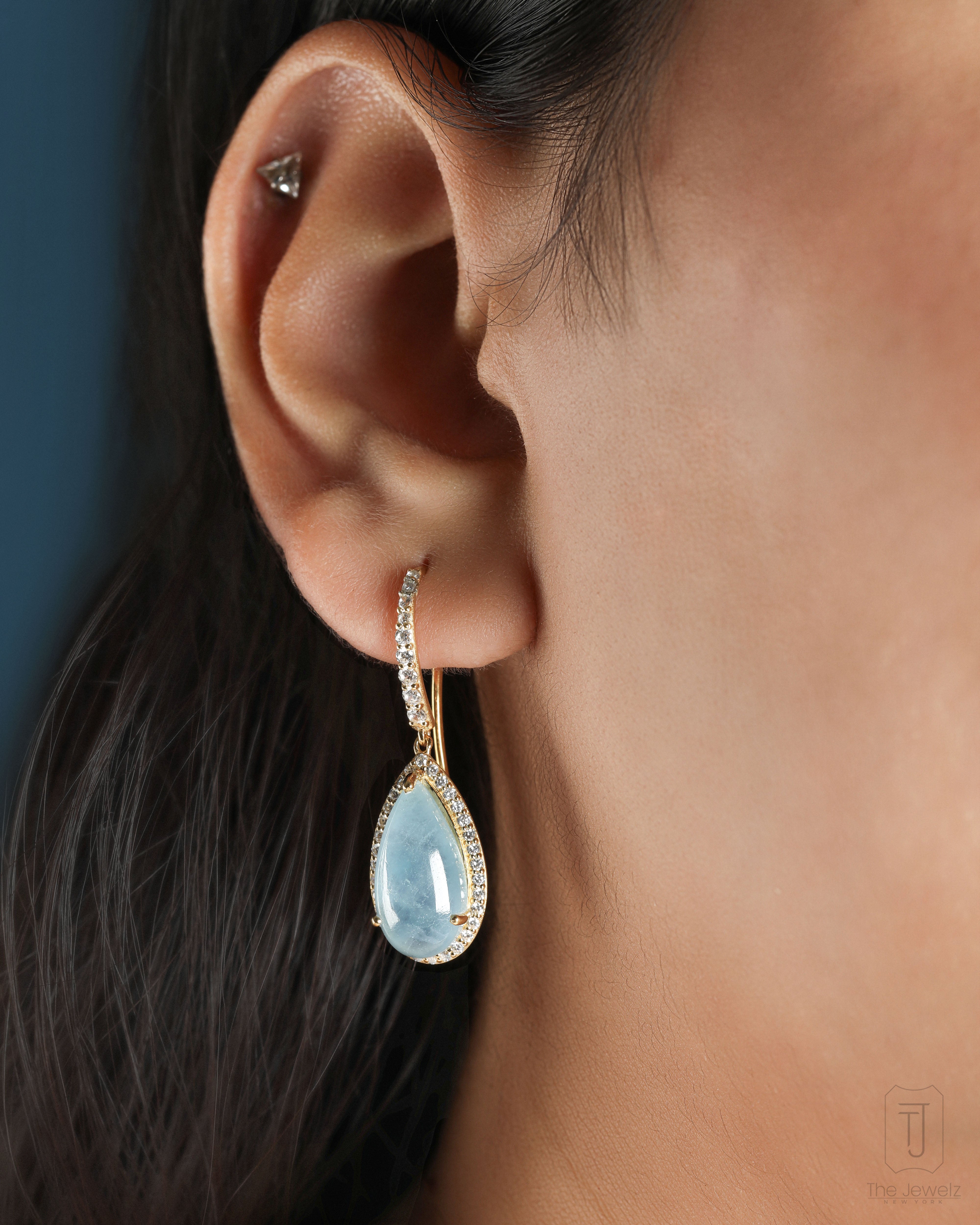 Epiphany Hook Earrings are your wearable meditation, a moment of peace amidst life's chaos. Featuring a dreamy cabochon aquamarine that's as refreshing as a coastal breeze and hangs delicately from the ear. From casual chic to cocktail glam, they'll take you from nine to five (and beyond) in style. Let the rhythmic sway of the sea inspire your every move.