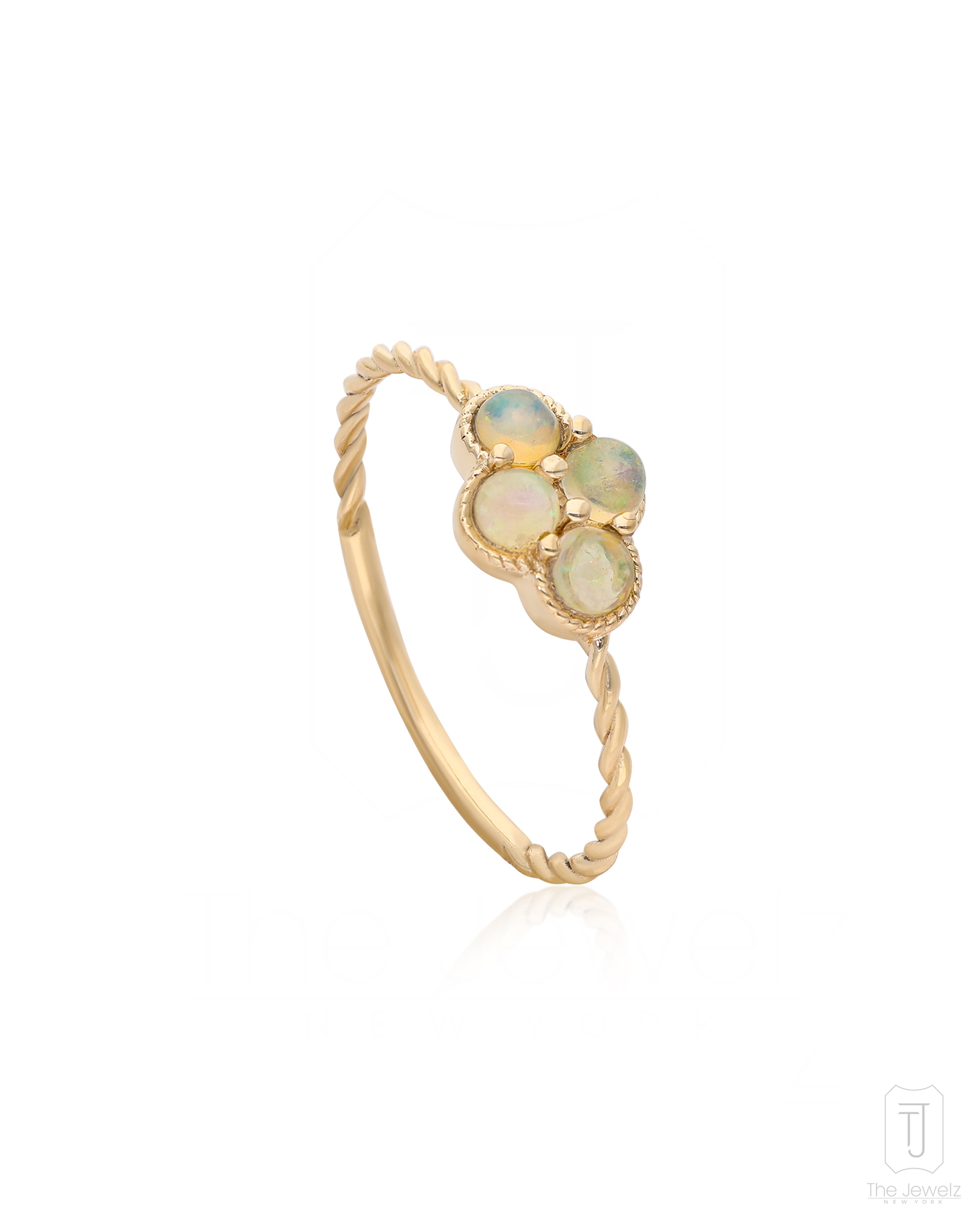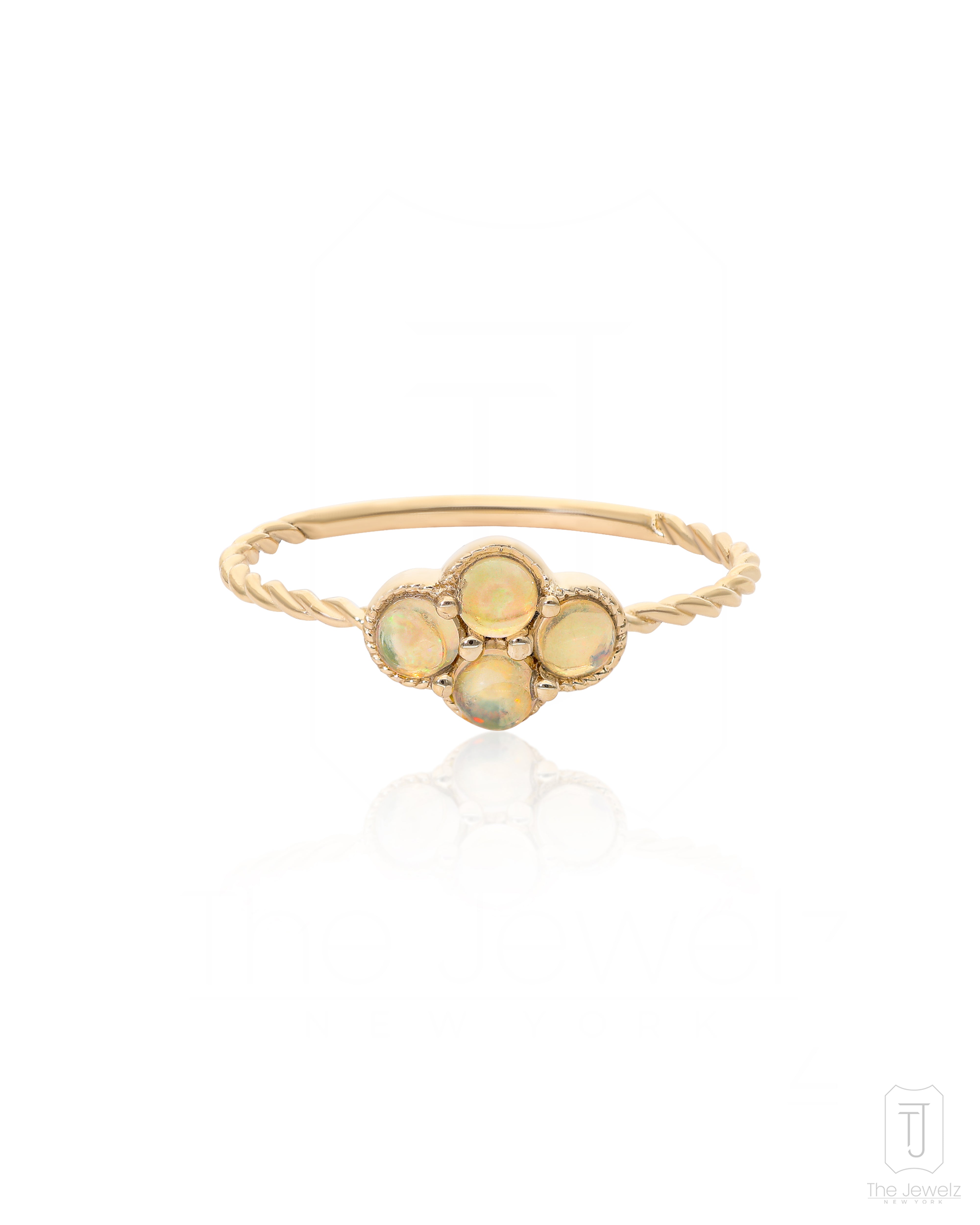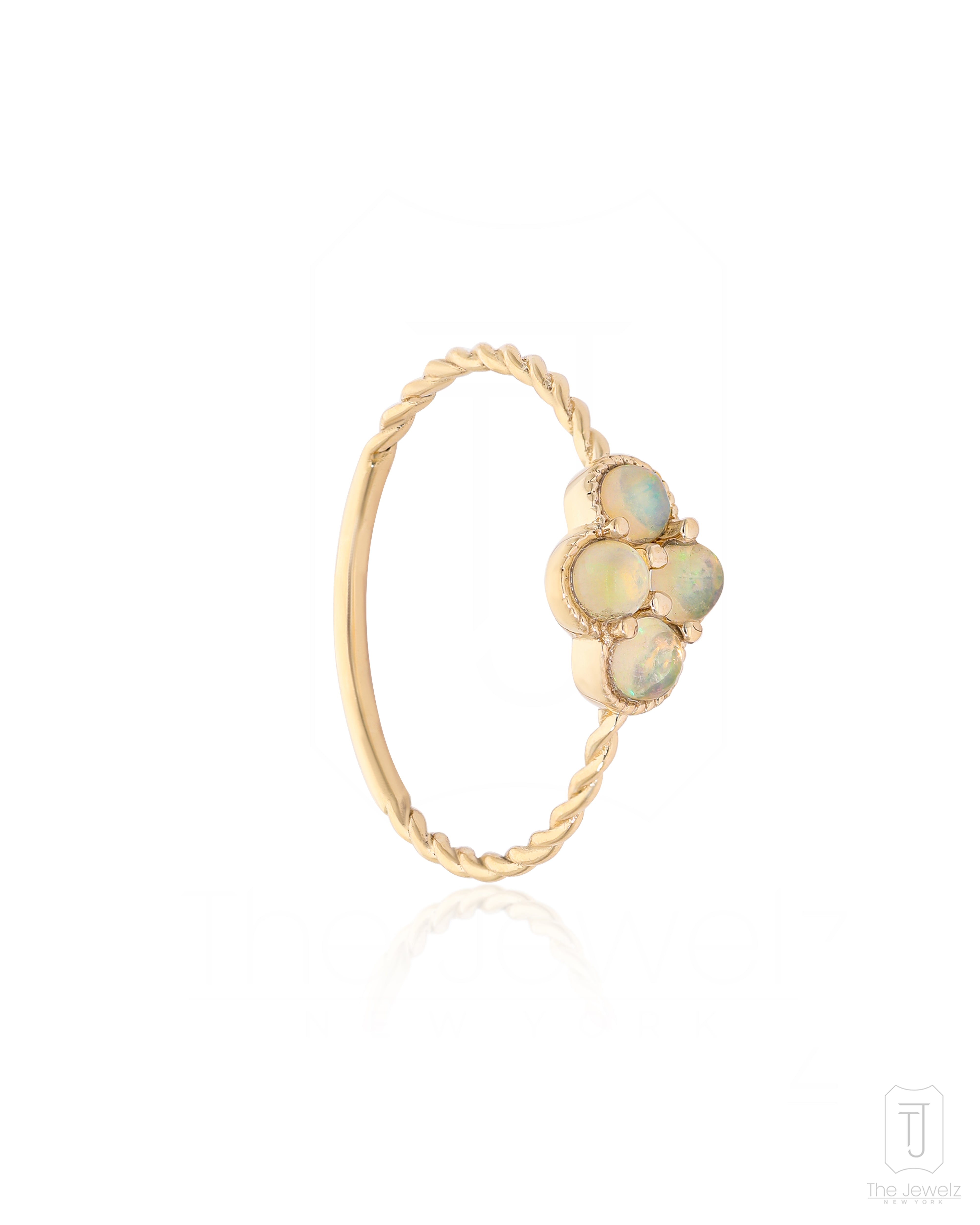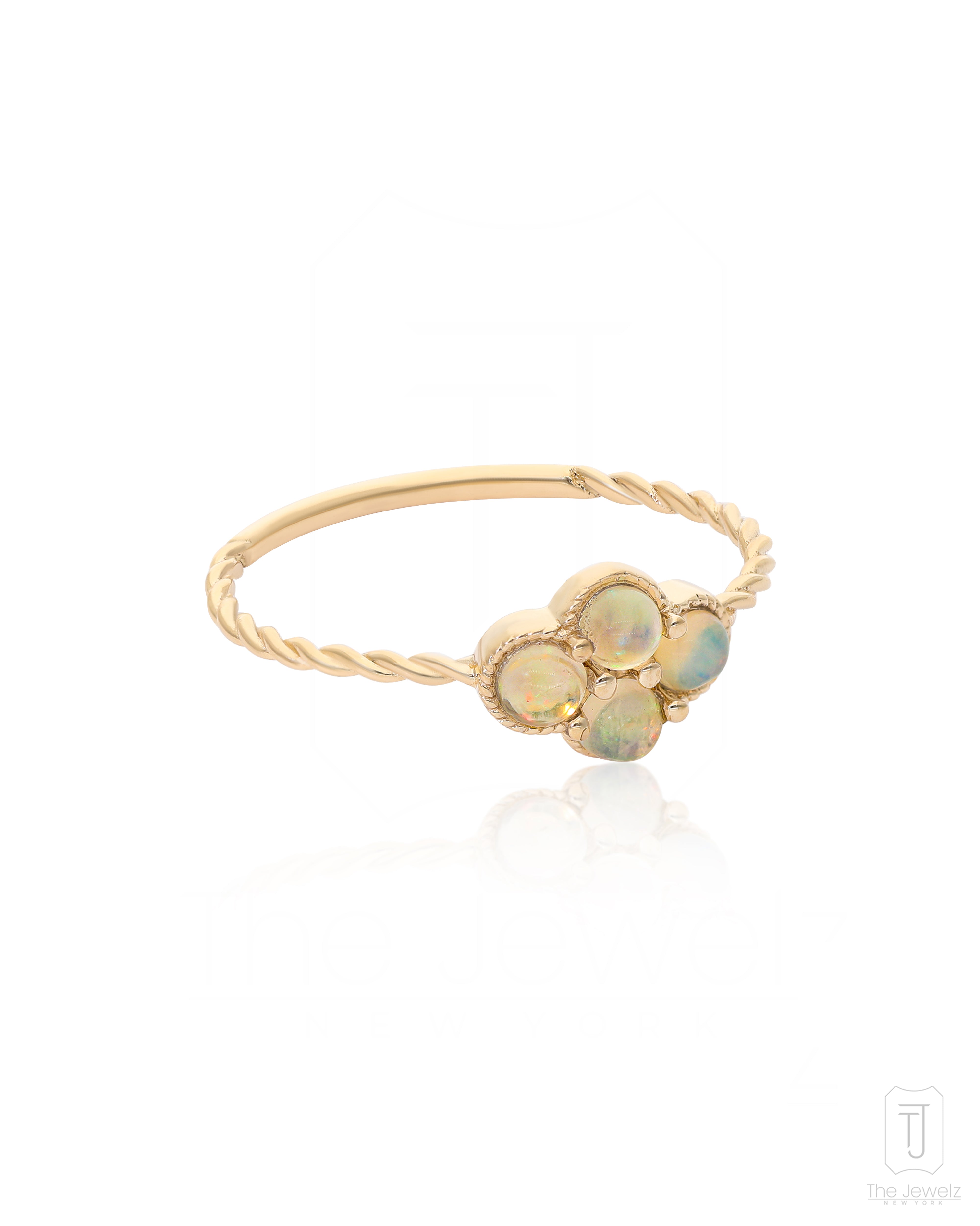 This exquisite Four Leaf Clover Opal Ring is crafted using a solid Solid Gold band and genuine opal inlay. Each leaf is carefully detailed to create a unique and eye-catching piece. Don't miss your chance to own this rare and stunning ring.