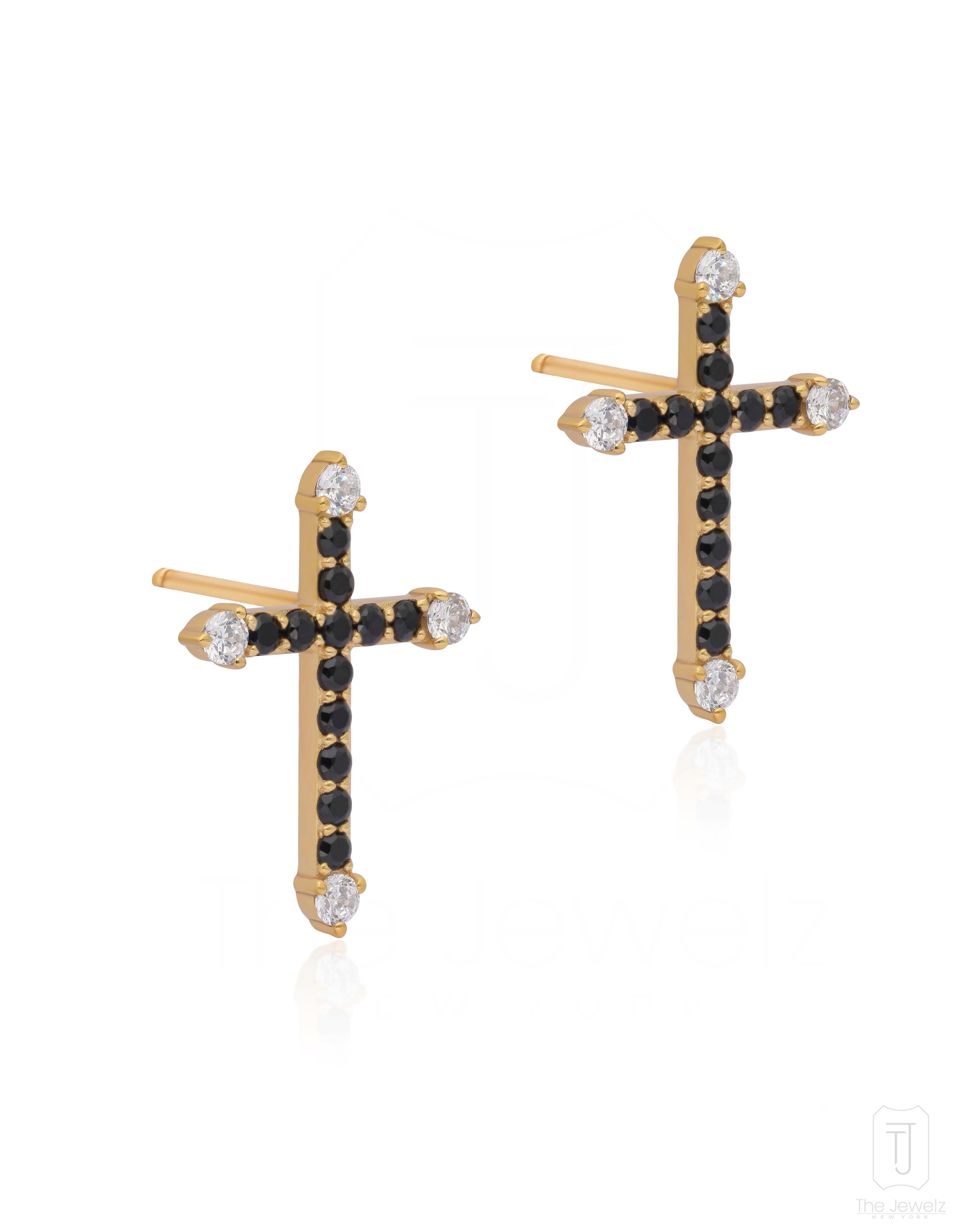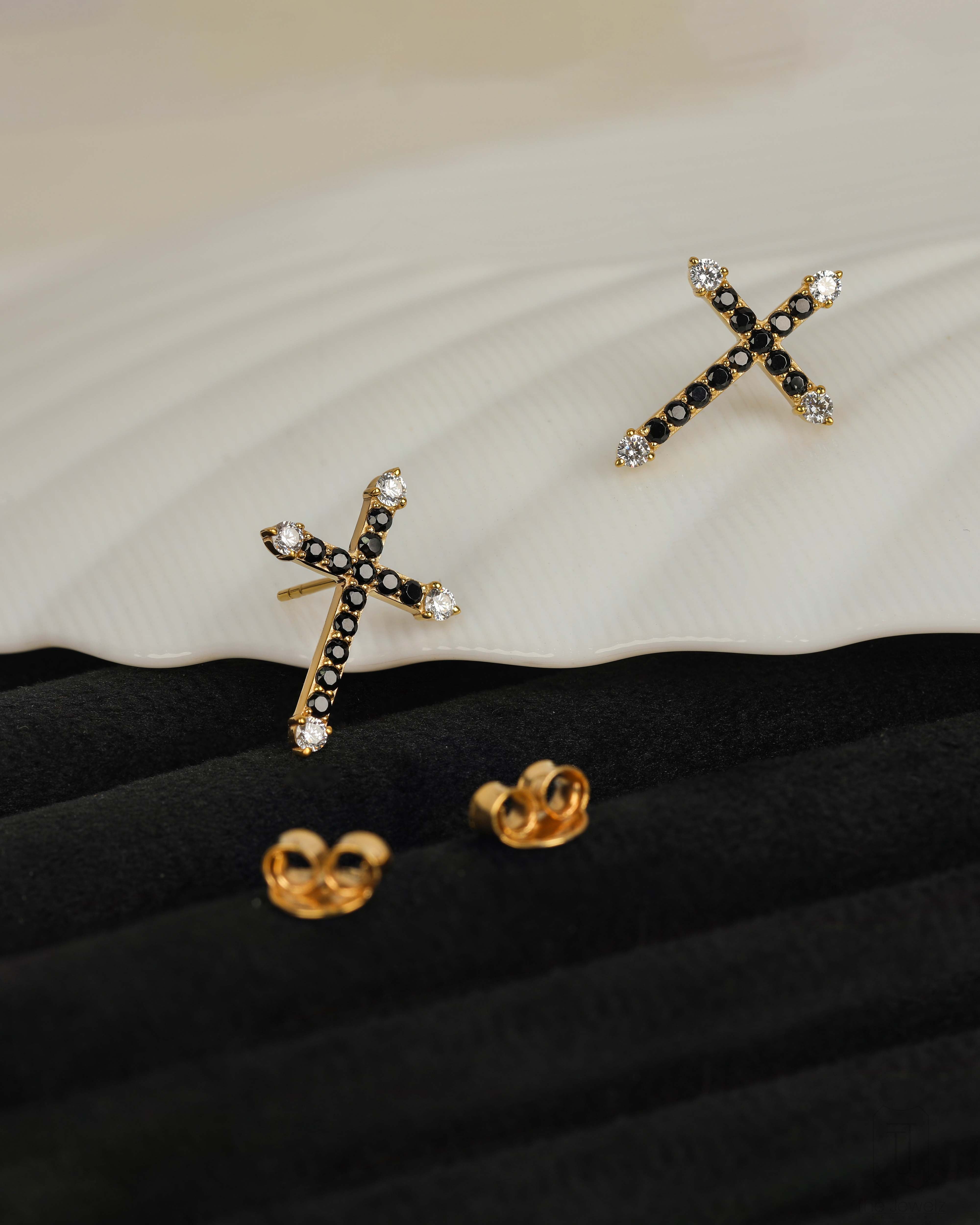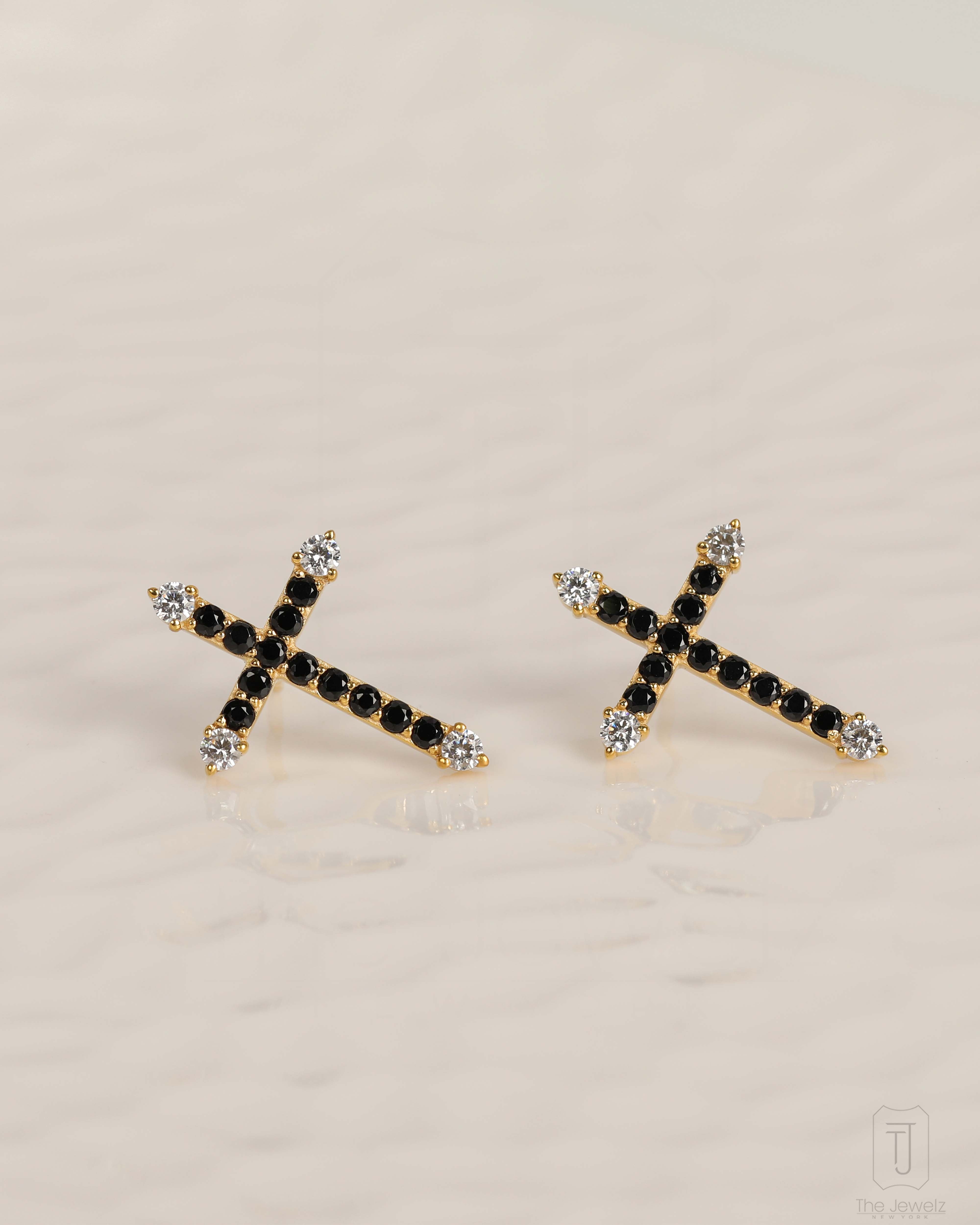Dusk Crossline' Black Spinel 925 Silver Earrings