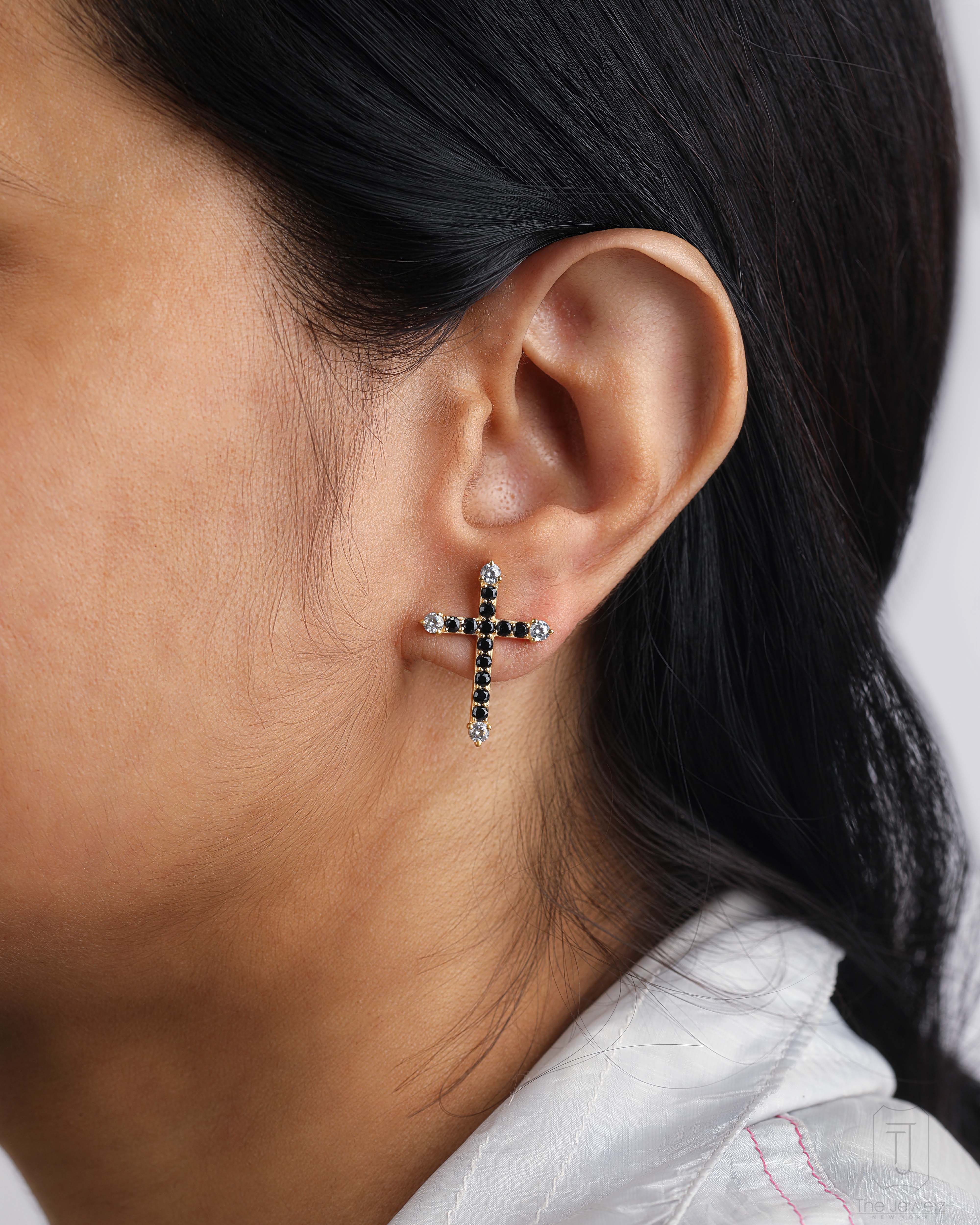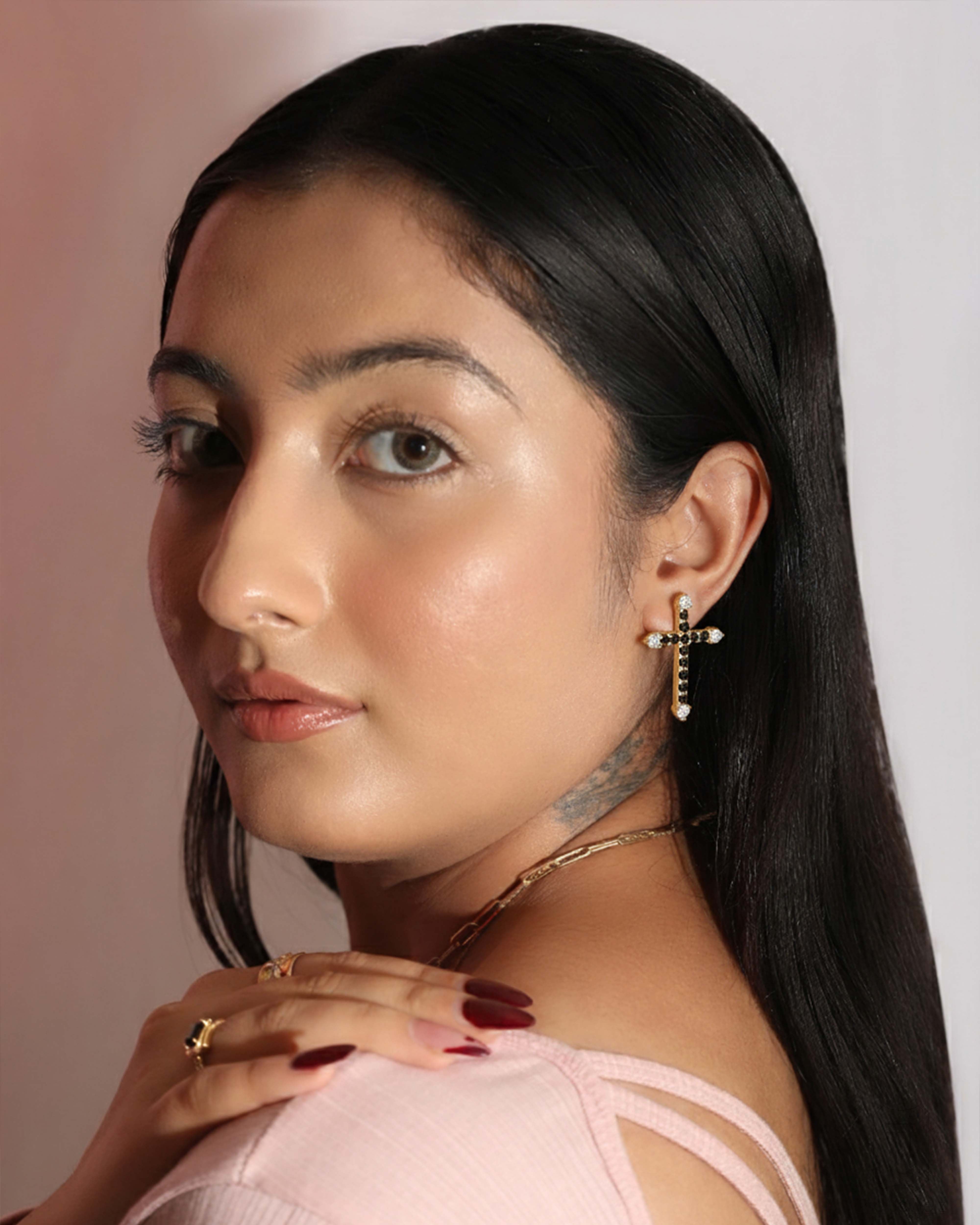 Introducing the Dusk Crossline—where elegance meets edge! These stunning 925 silver earrings feature a captivating crossline design adorned with genuine black spinel and sparkling cubic zirconia. Weighing just 3.33 gms with refined proportions (16.10 MM width × 22.40 MM length), they're the perfect balance of bold and wearable. Whether you're dressing up for a night out or adding attitude to your everyday look, these beauties deliver serious style without the serious weight. Pure silver sophistication with a dark, mysterious twist.