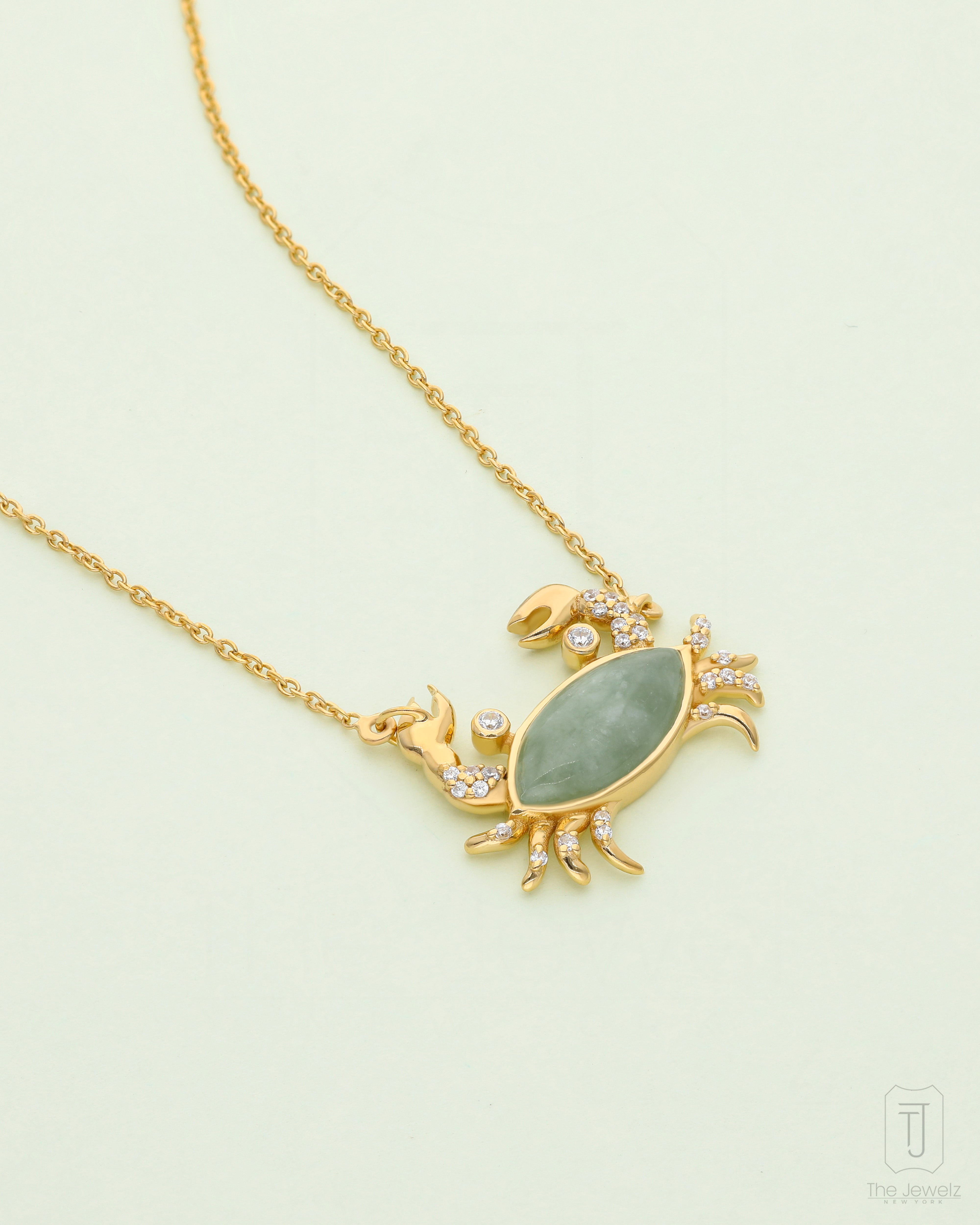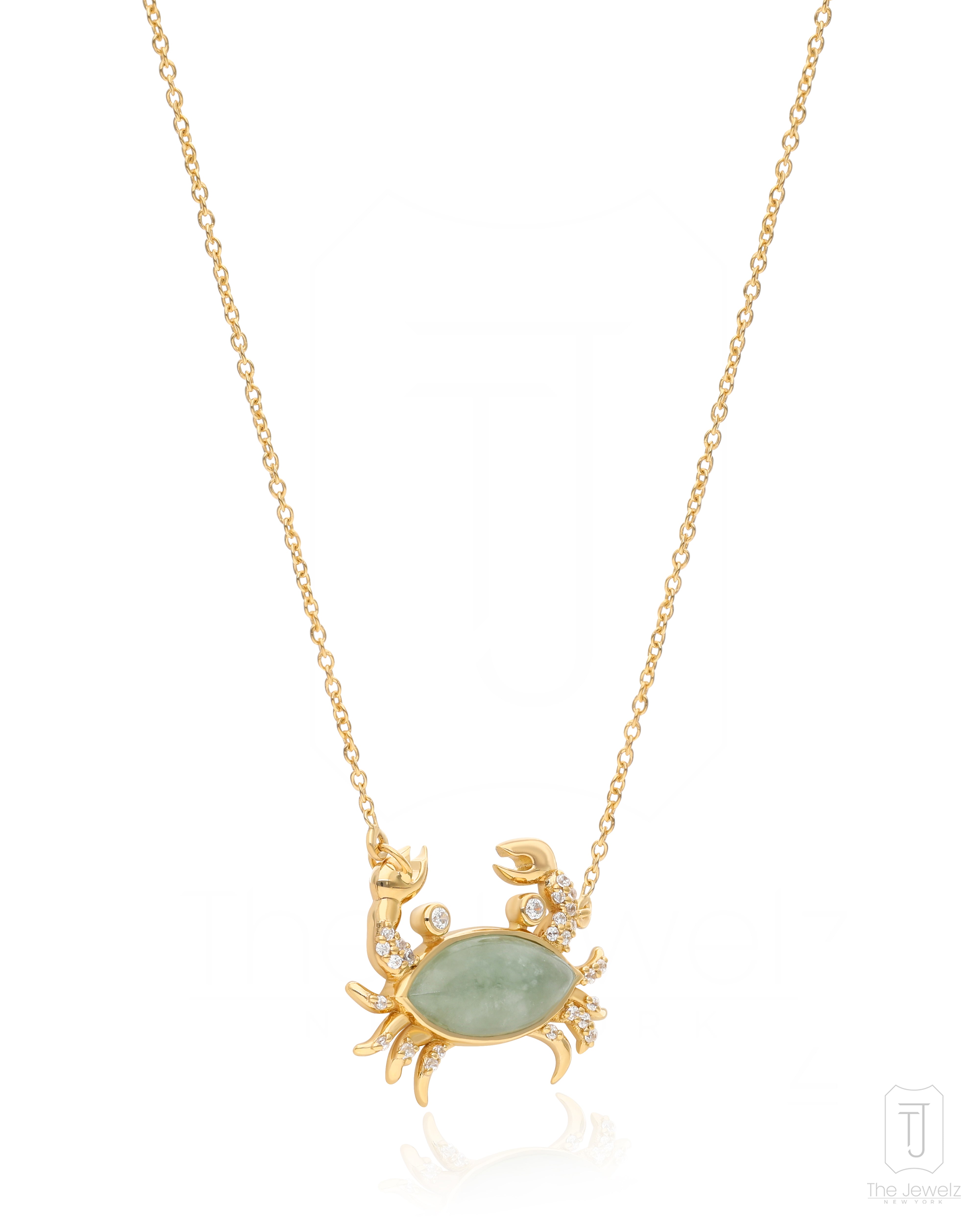 The Crab Flow Necklace is where oceanic charm meets effortless elegance, featuring a delicately crafted crab motif that cradles a stunning Aventurine stone, renowned as the "Stone of Opportunity." Drape yourself in a piece that balances whimsical design with talismanic charm, perfect for those who flow through life with grace, strength, and a hint of sparkle.