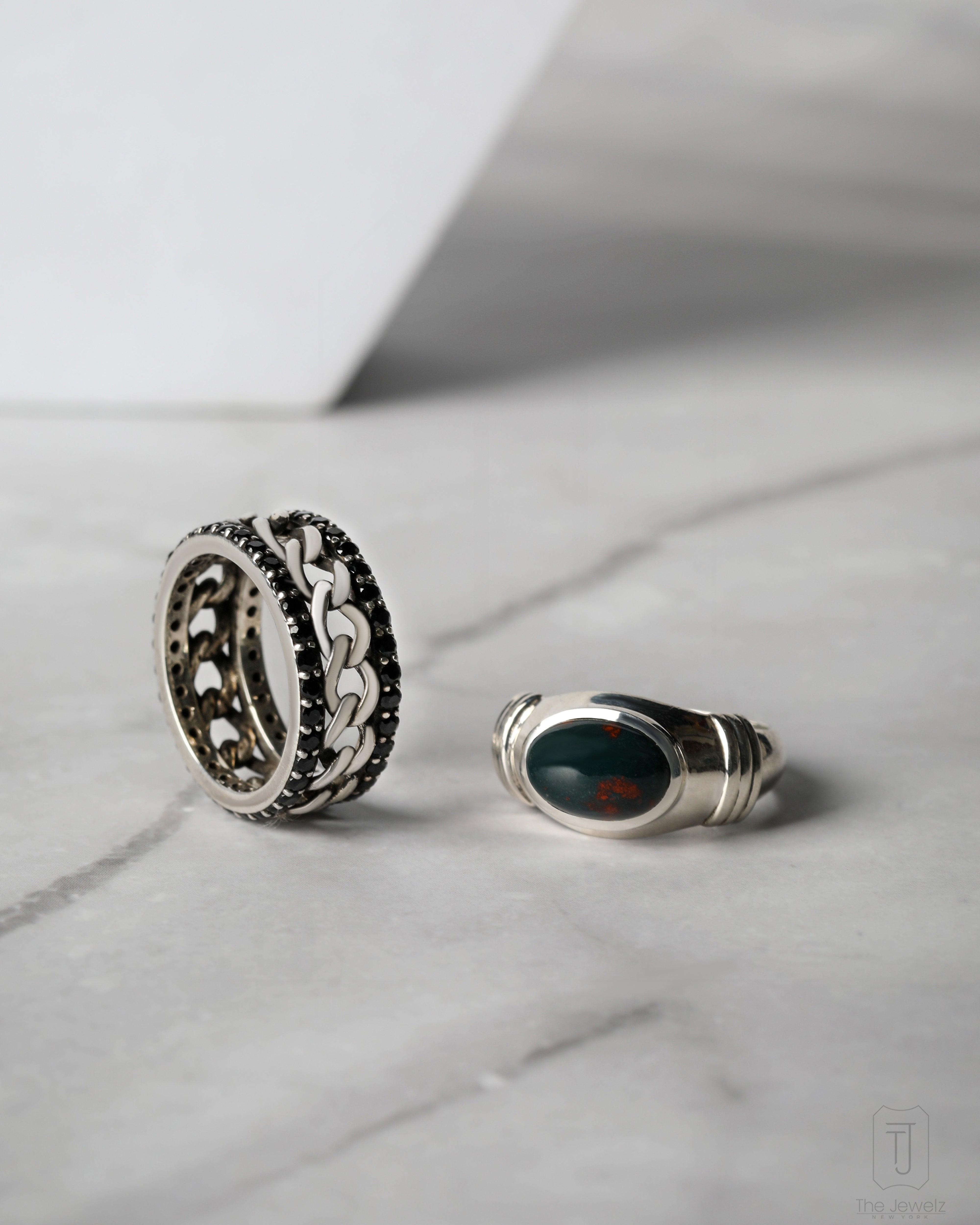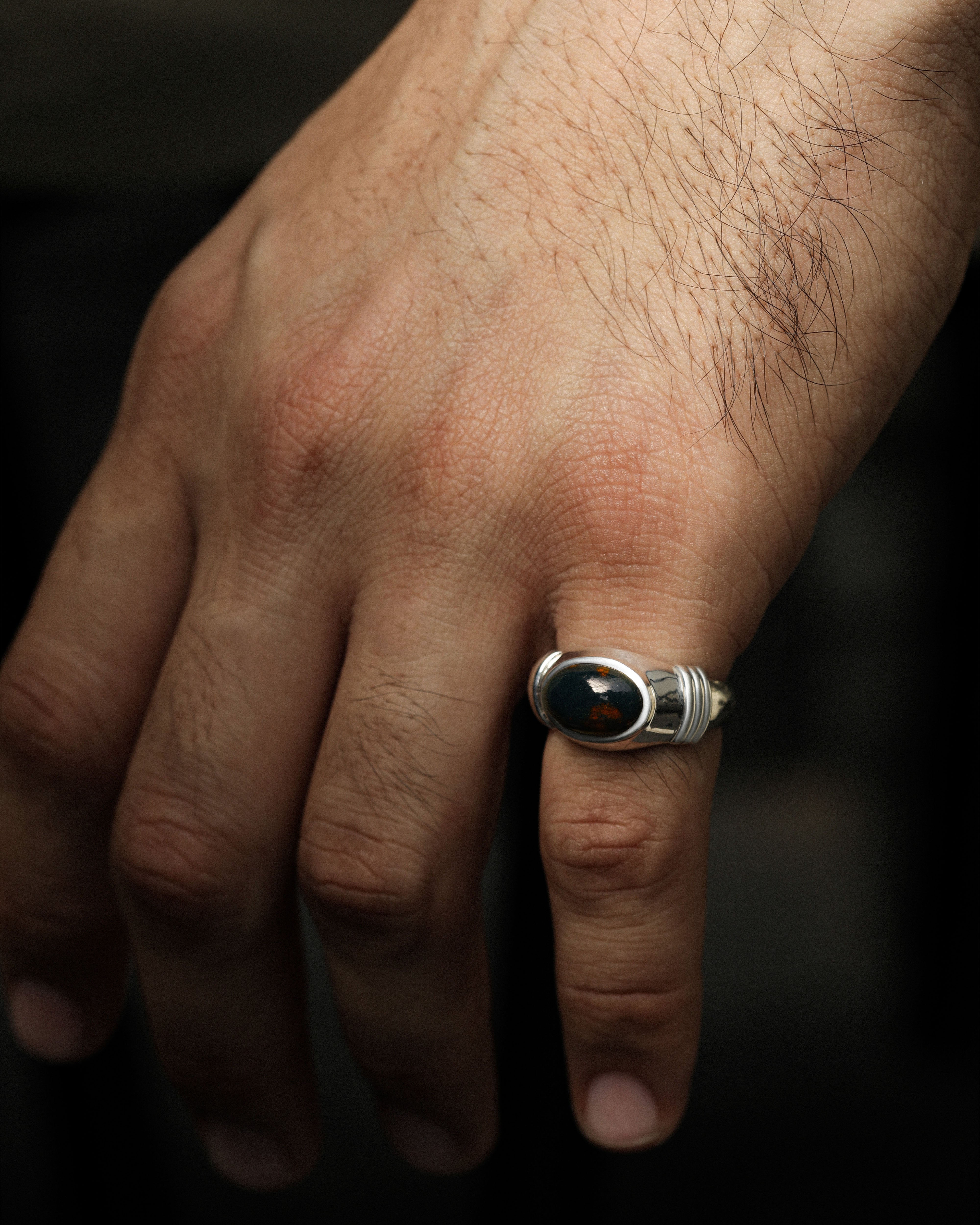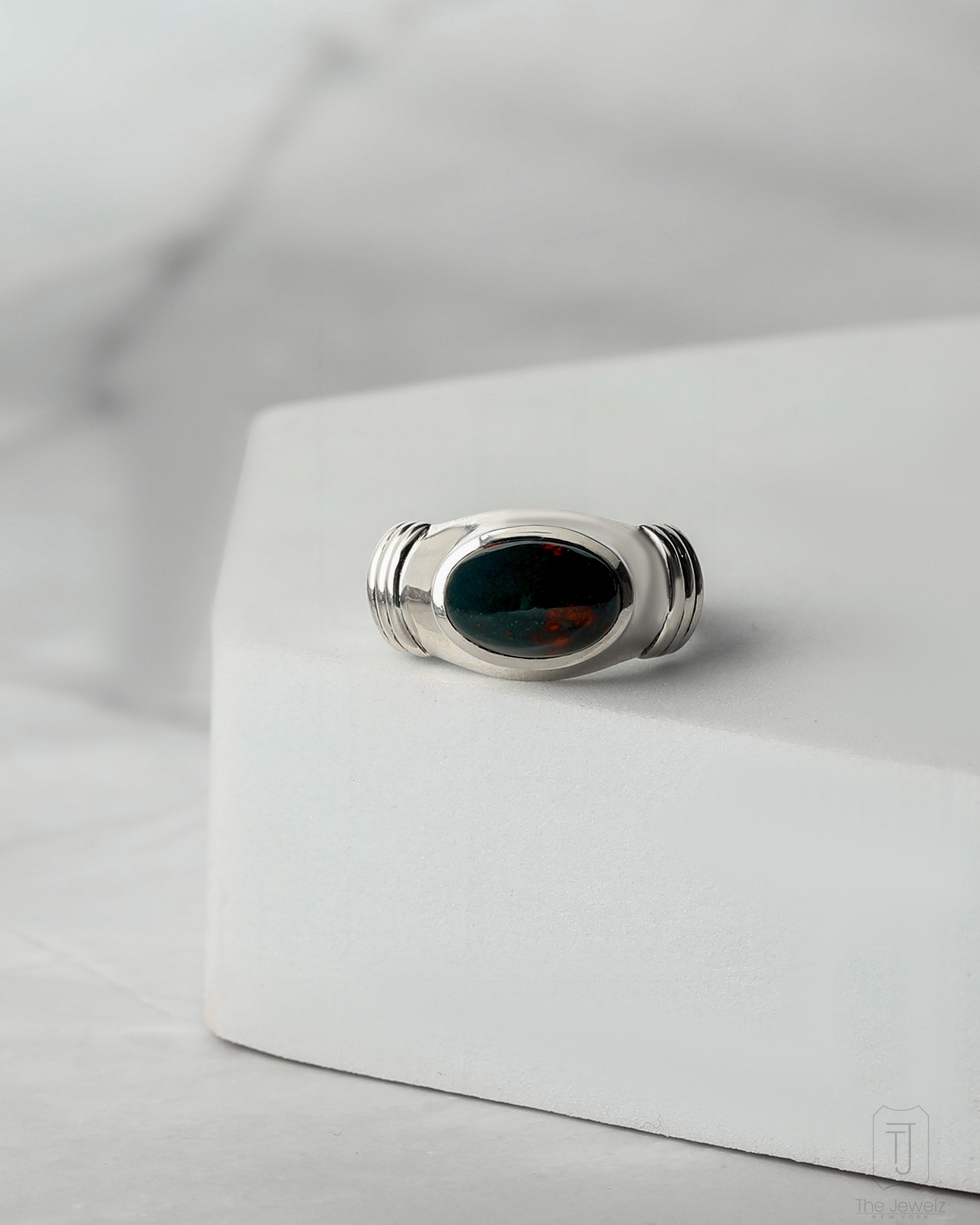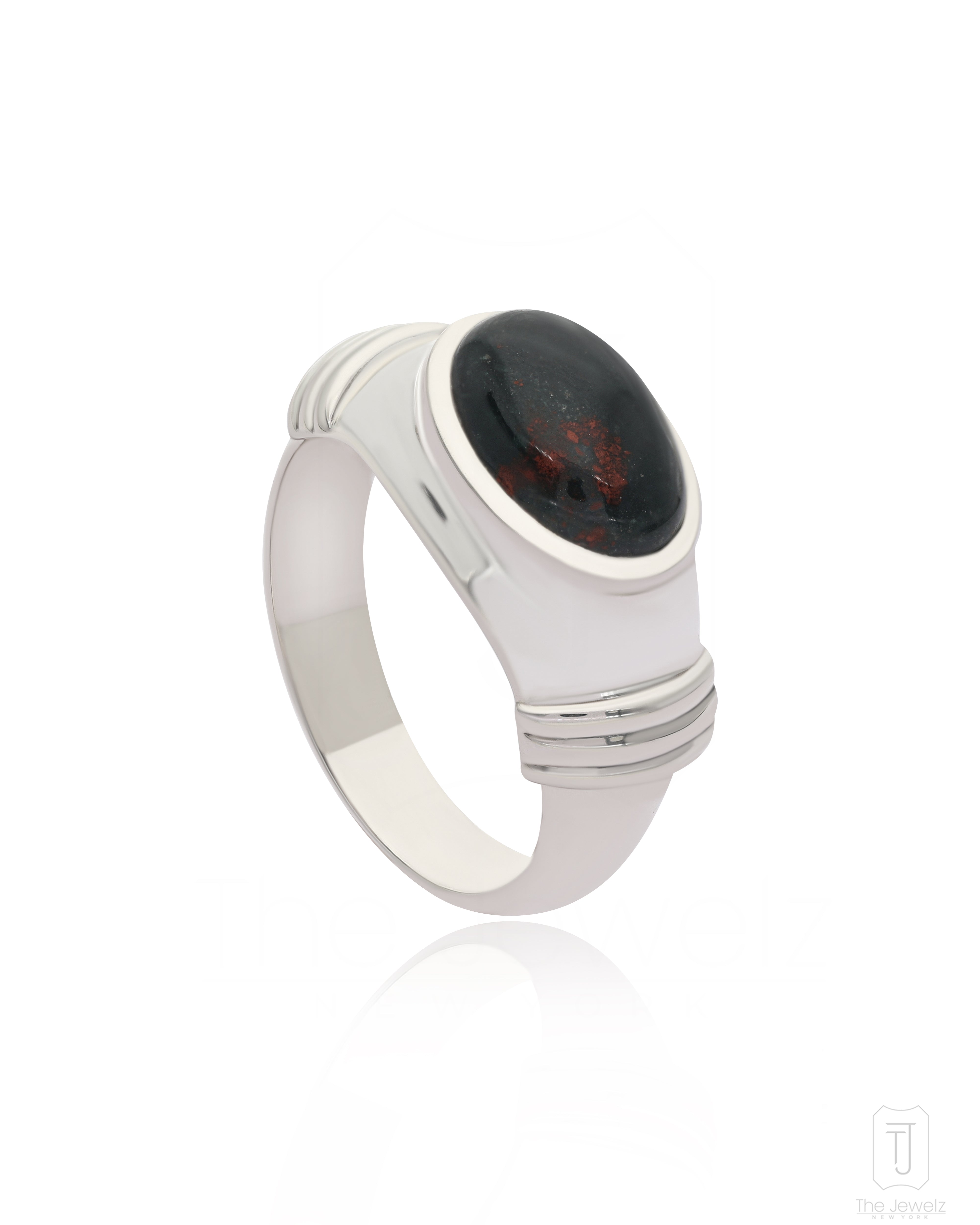 Add a touch of luxury to his attire with our showstopping Bloodstone Signet Band. Made with durable 925 sterling silver and a striking bloodstone, this bold ring is sure to turn heads. Subtly oxidized for a unique finish. Gross Wt. 7.42 Gms. Metal Wt. 6.65 Gms.
