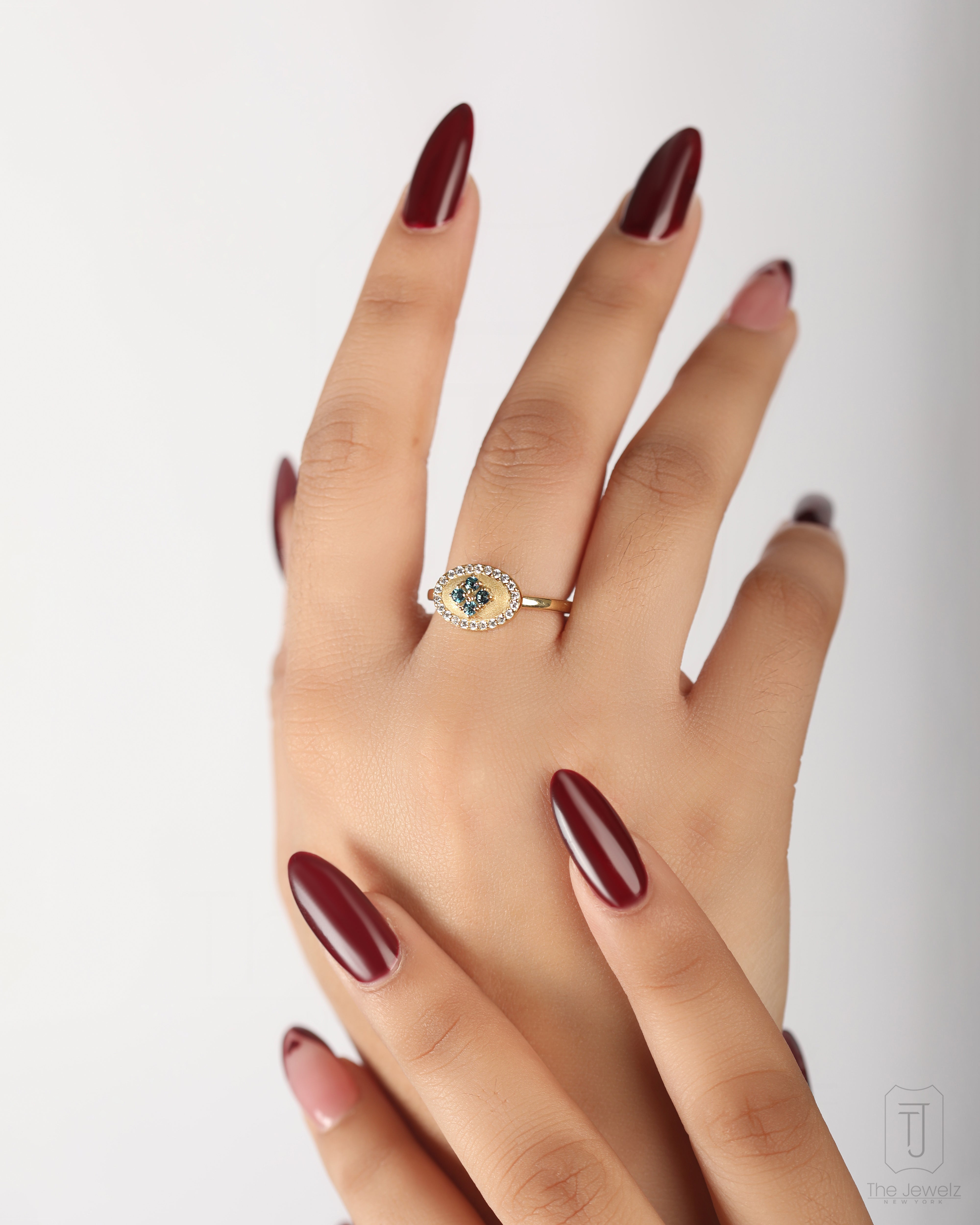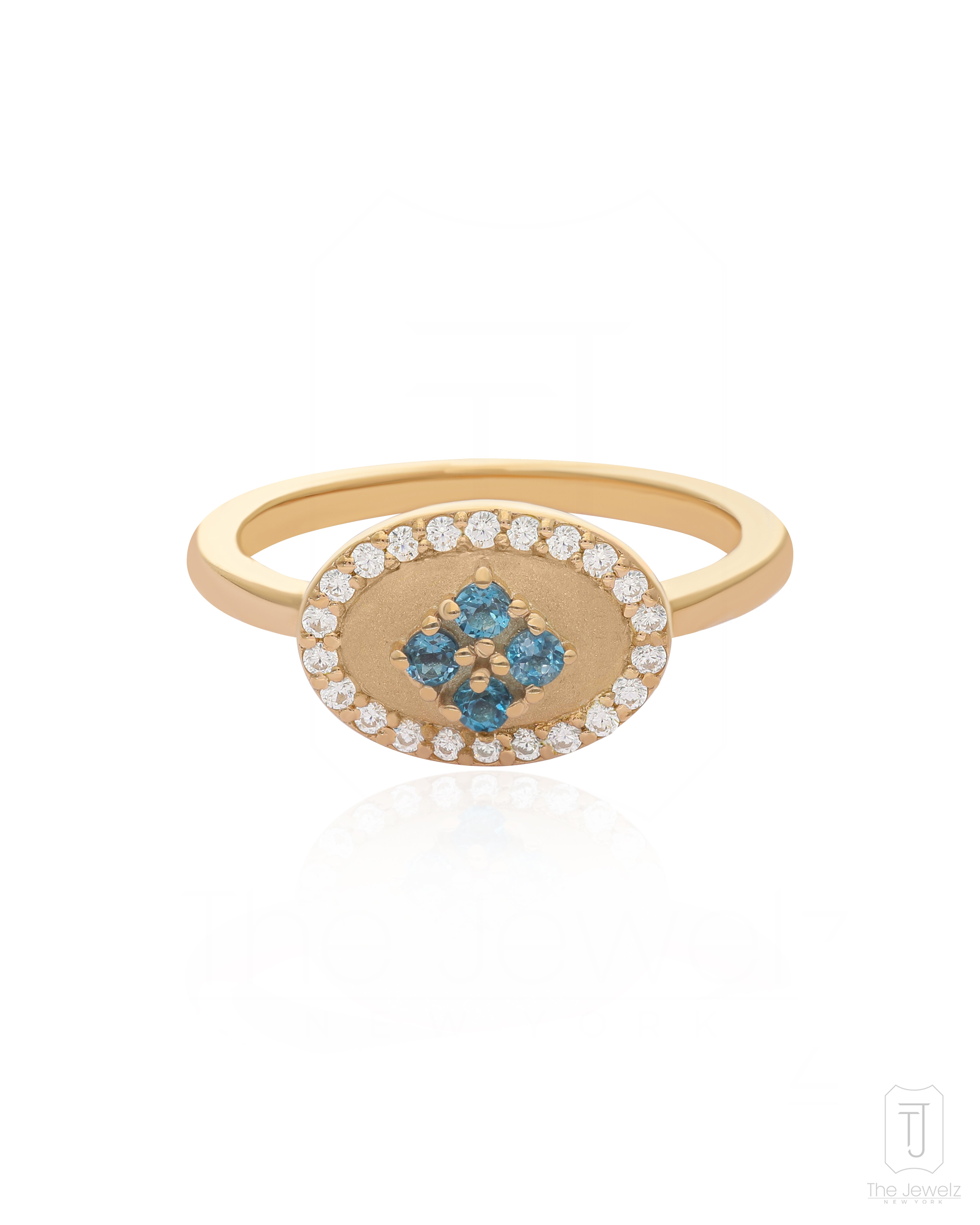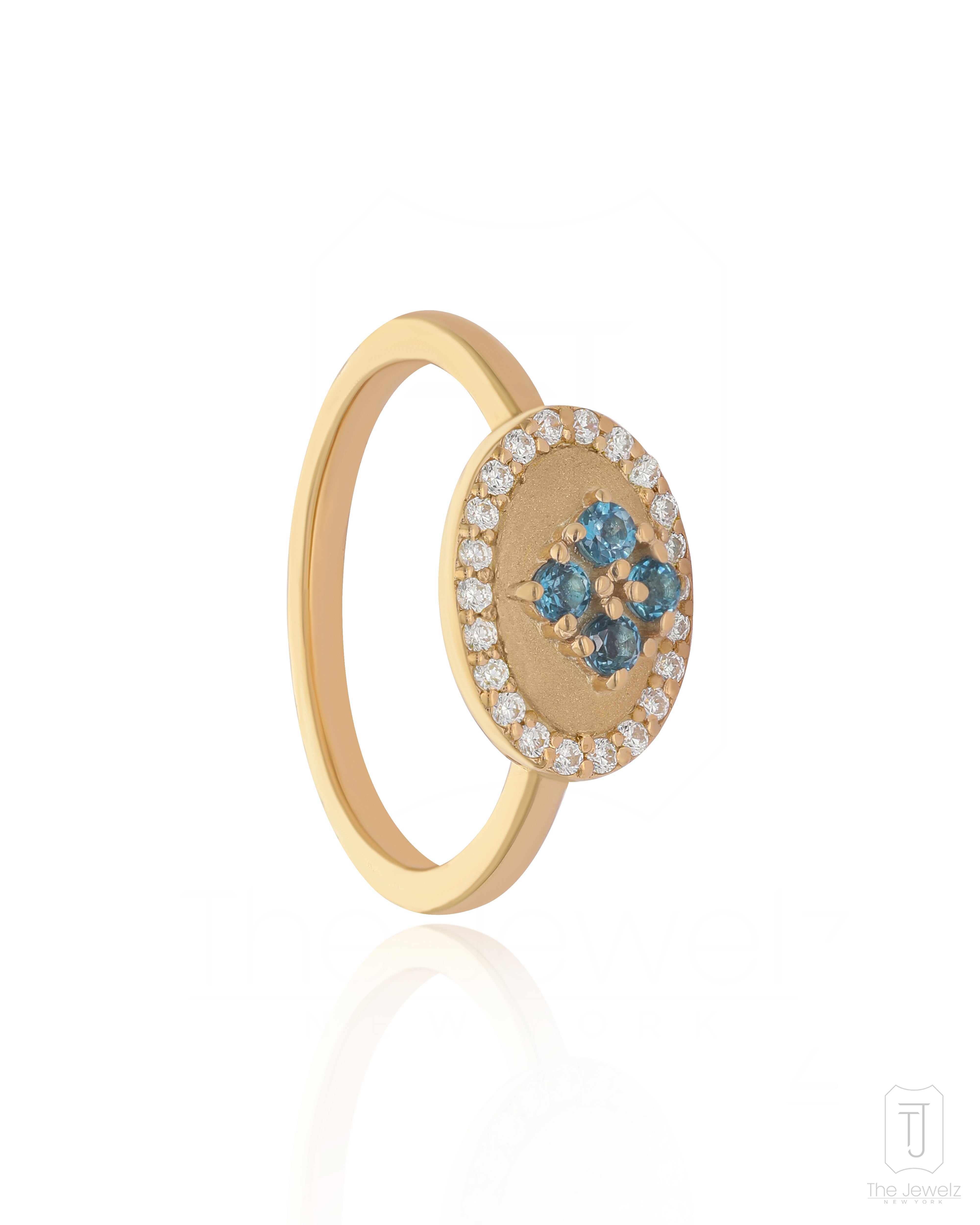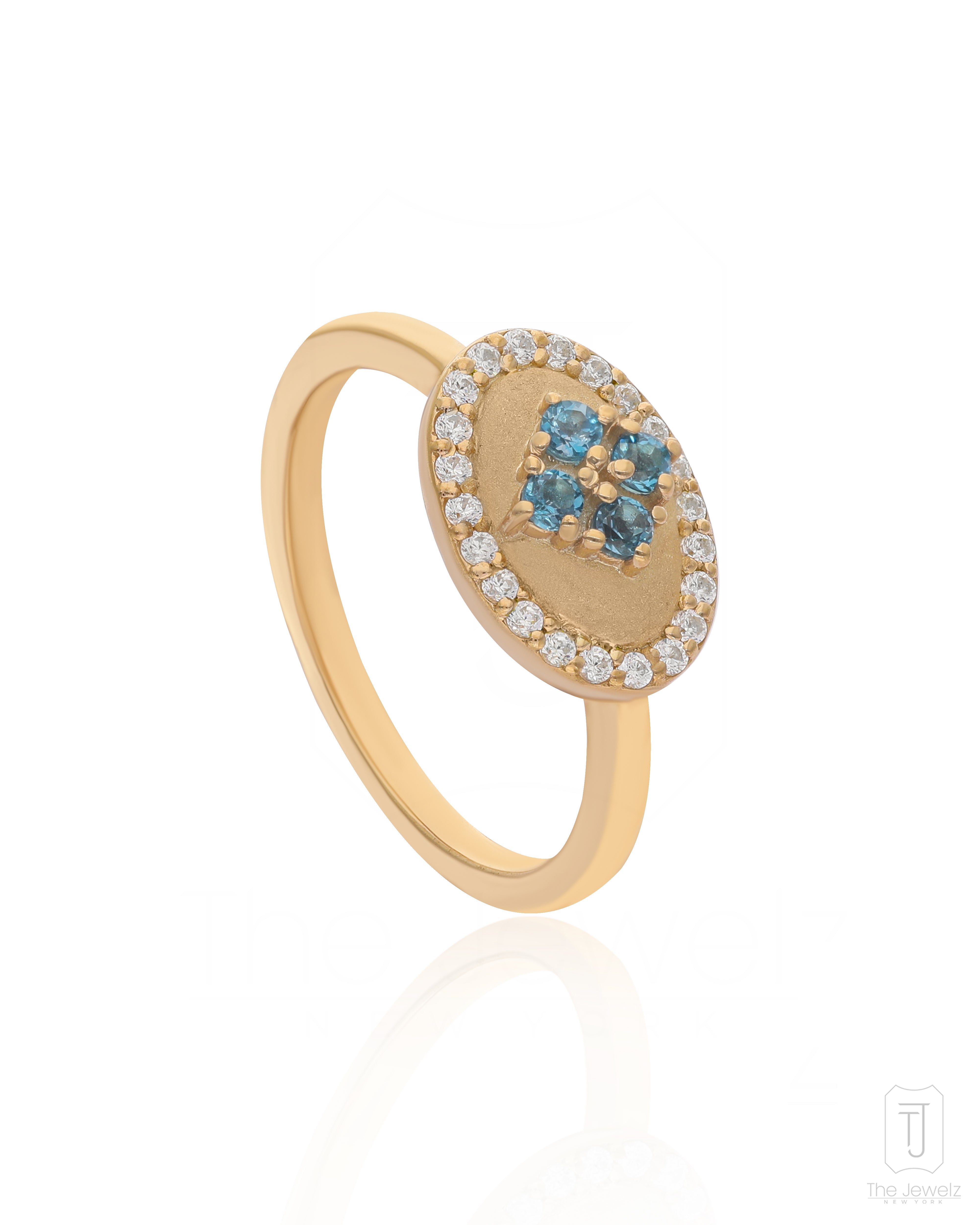 Elevate your style with this striking signet ring, centered with London blue topaz, encircled by shimmering stones. Its unique design blends classic elegance with a touch of modern flair, perfect for any occasion.