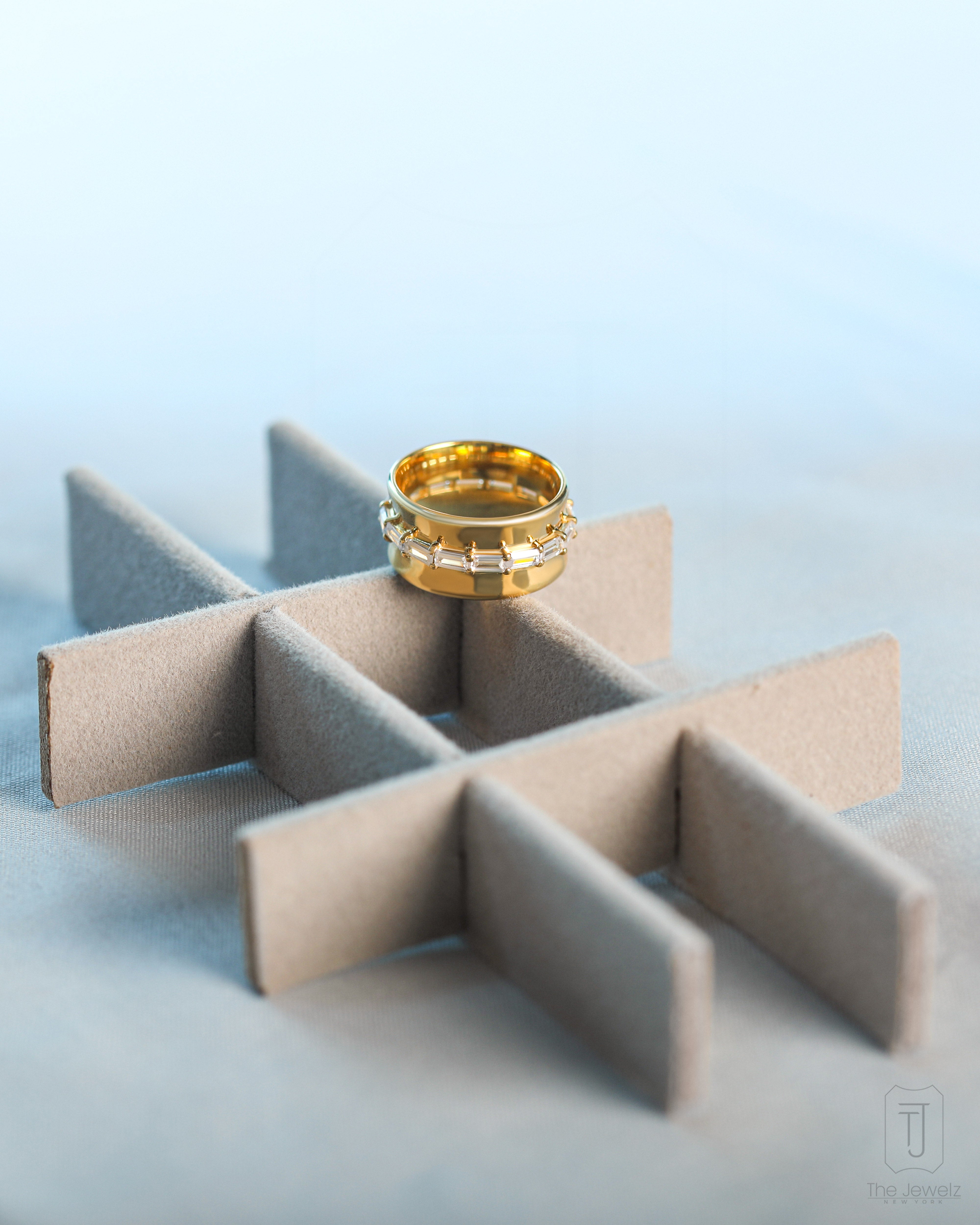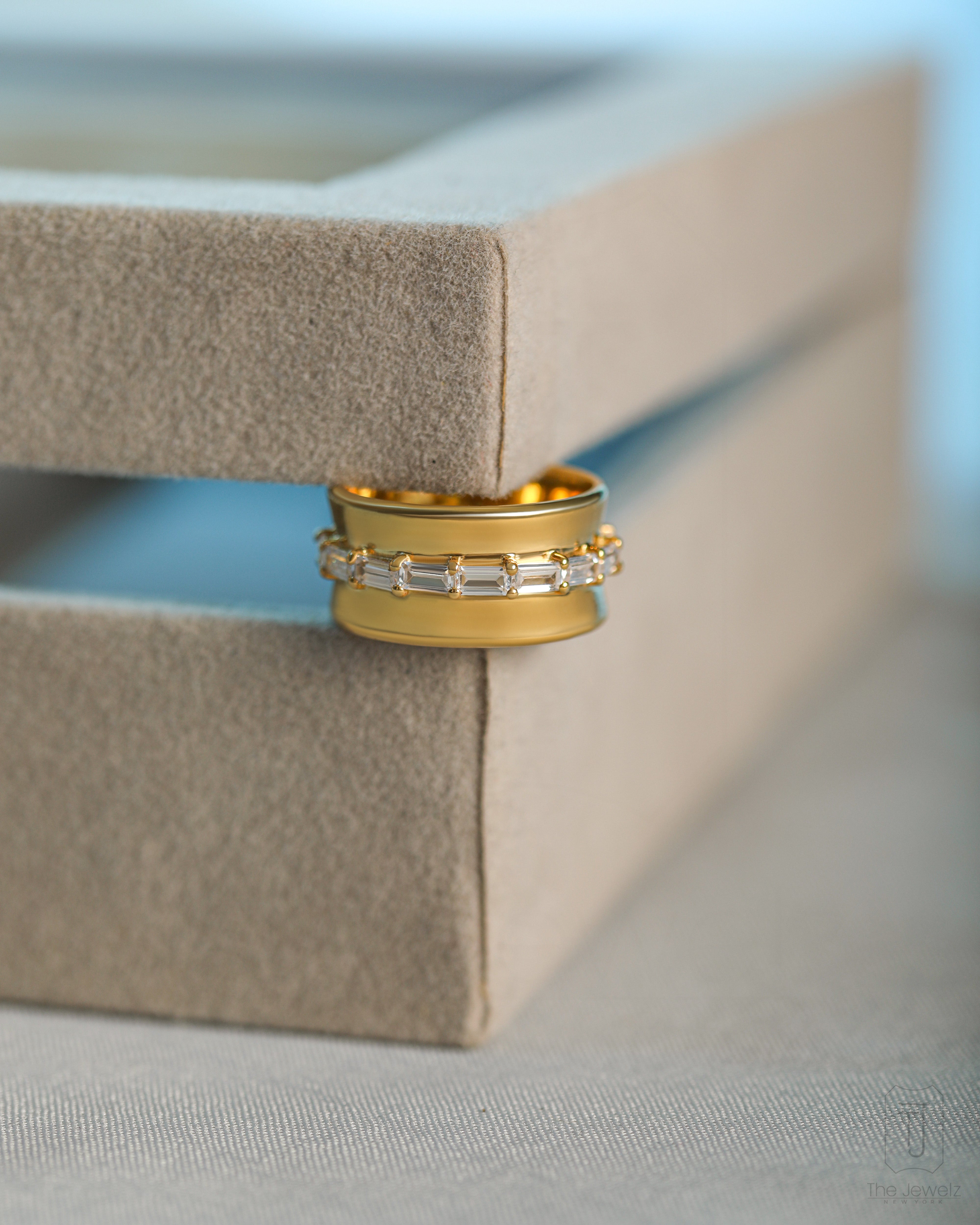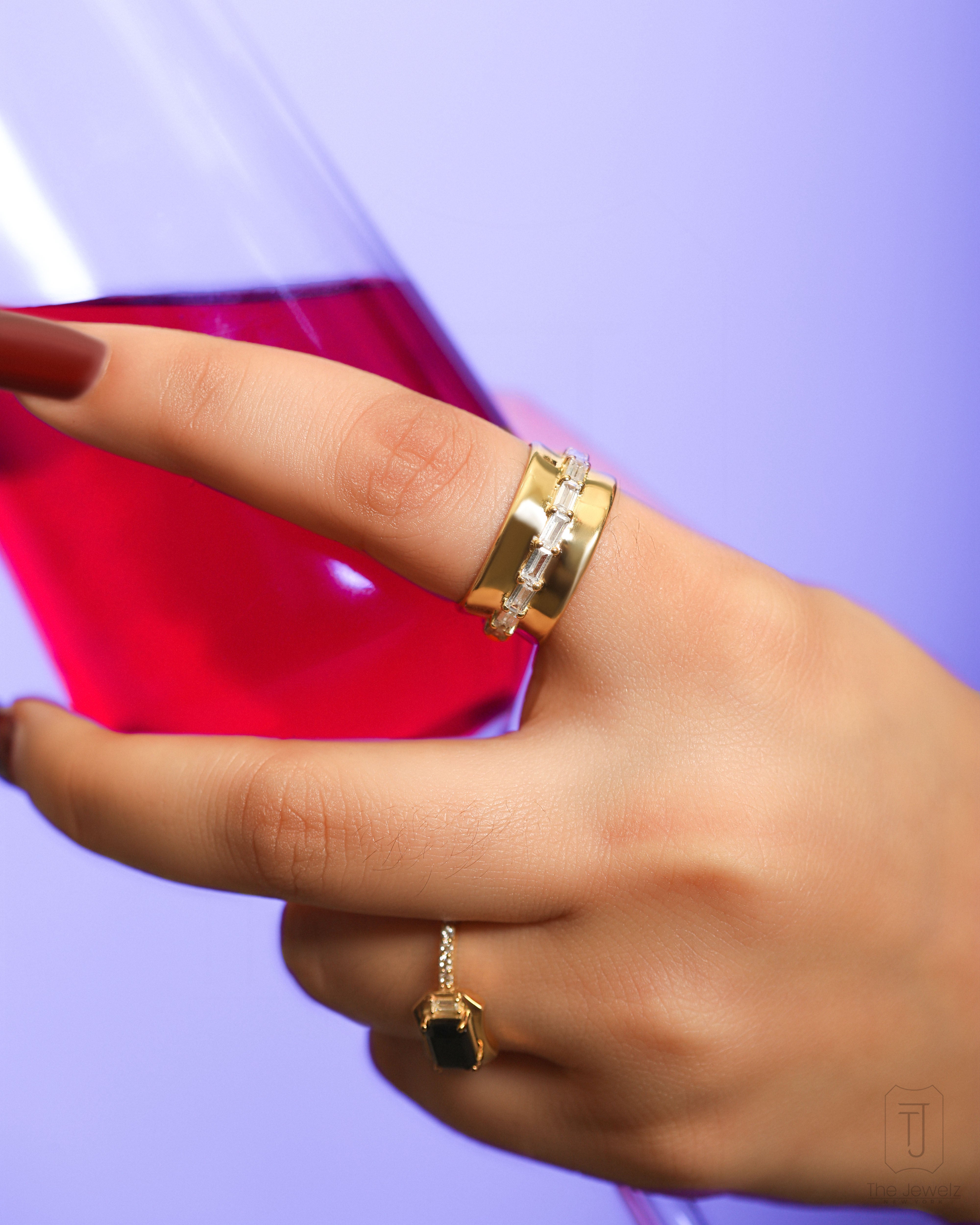 It’s the kind of ring you slip on and forget—until the light catches just right, and suddenly, you’re distracted mid-sentence, admiring your own hand. The 925 silver band hugs your finger, smooth and substantial, while the row of baguette-cut stones glints like a knowing smirk. It’s elegant but a little bold, classic with a hint of mischief. Wear it alone when you want to feel effortlessly put together, or stack it up when you're feeling a little extra. Either way, it belongs on your hand. Obviously.