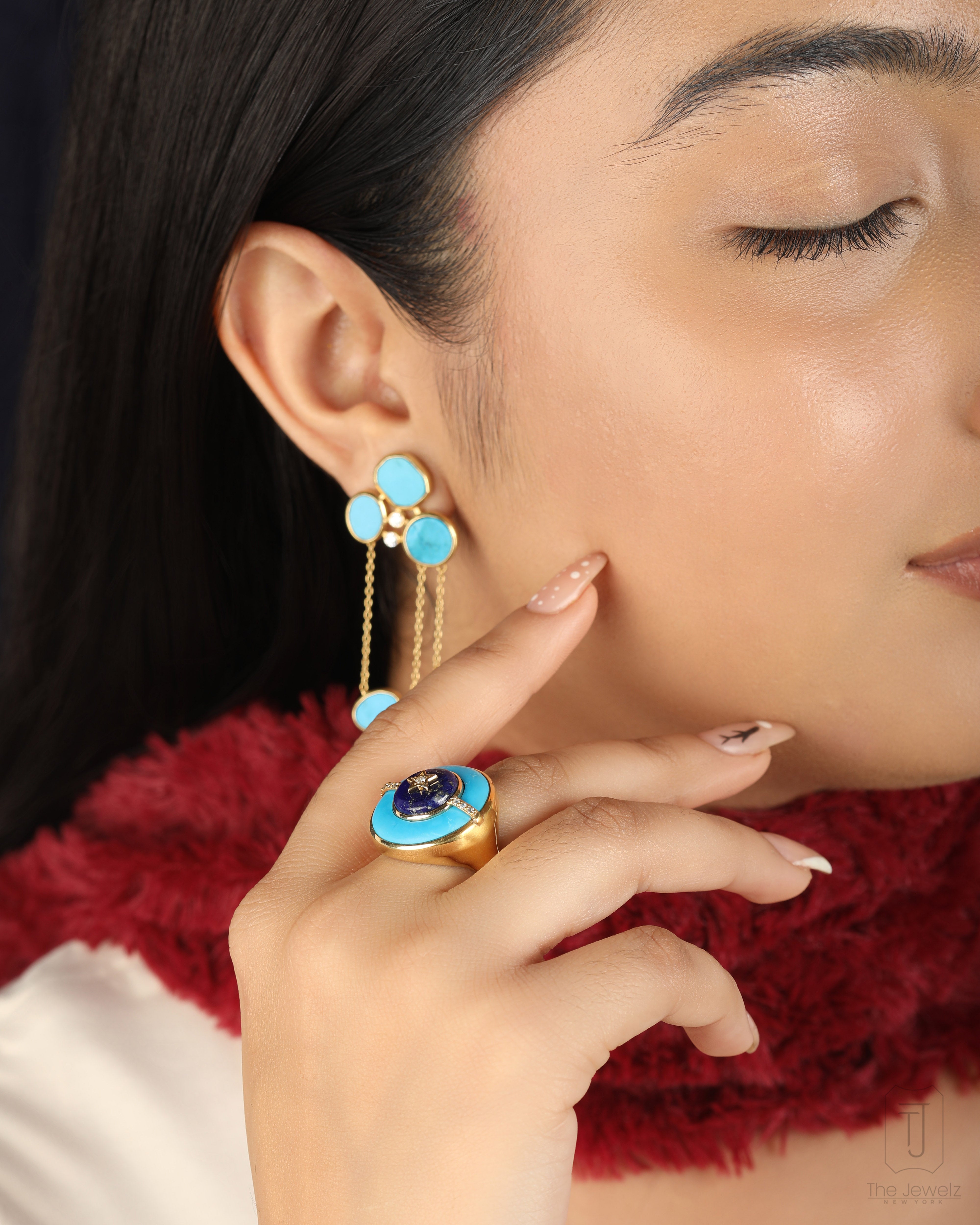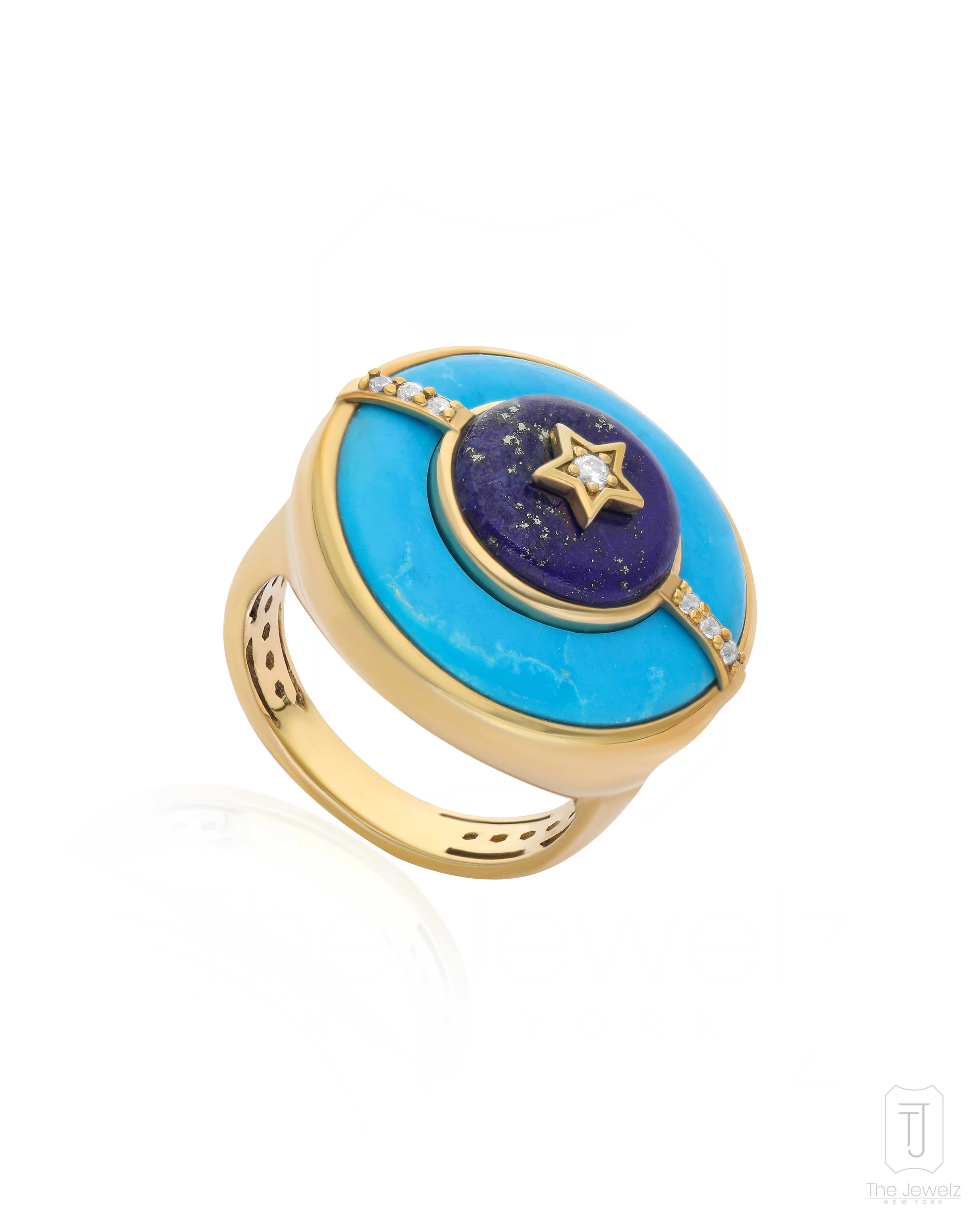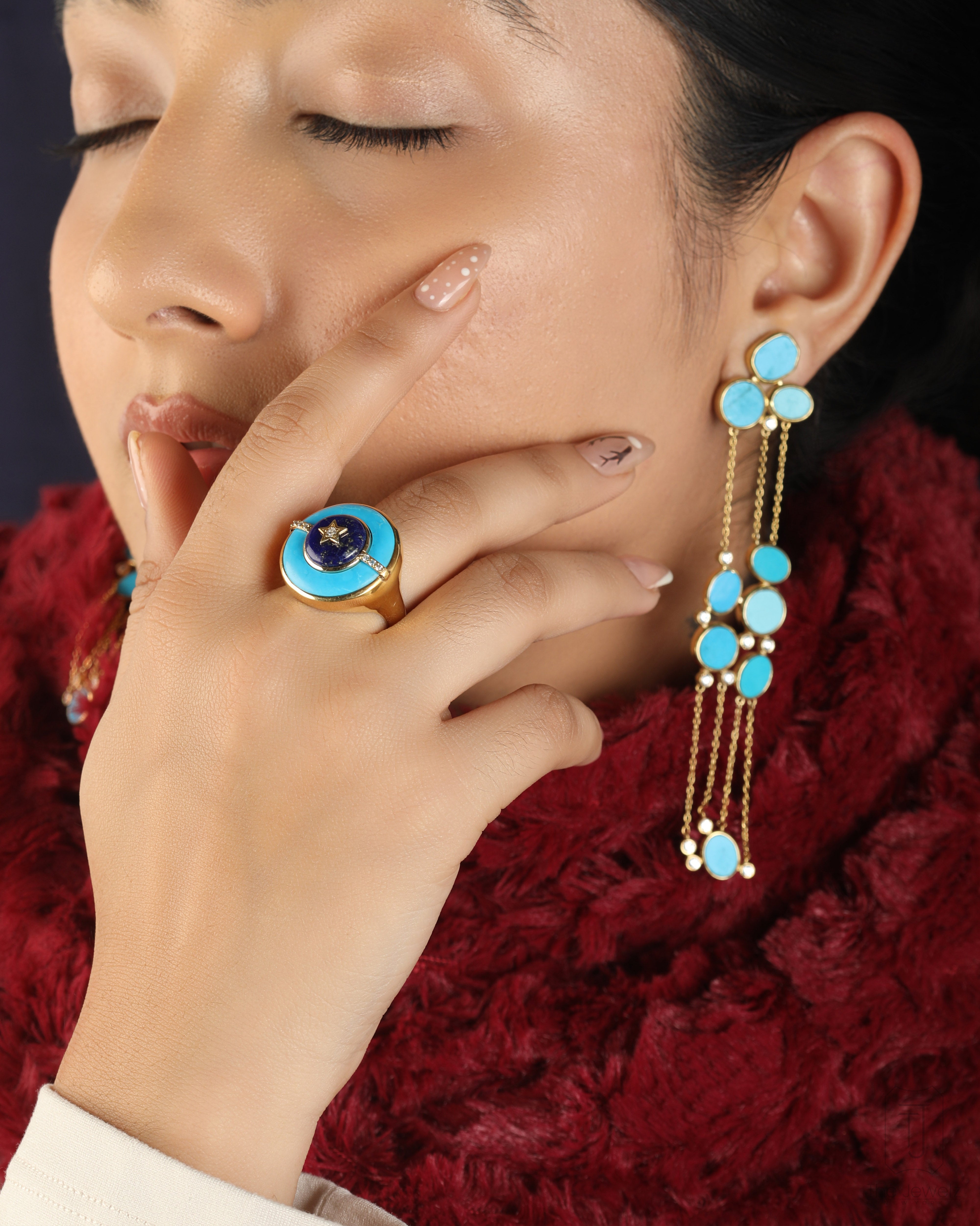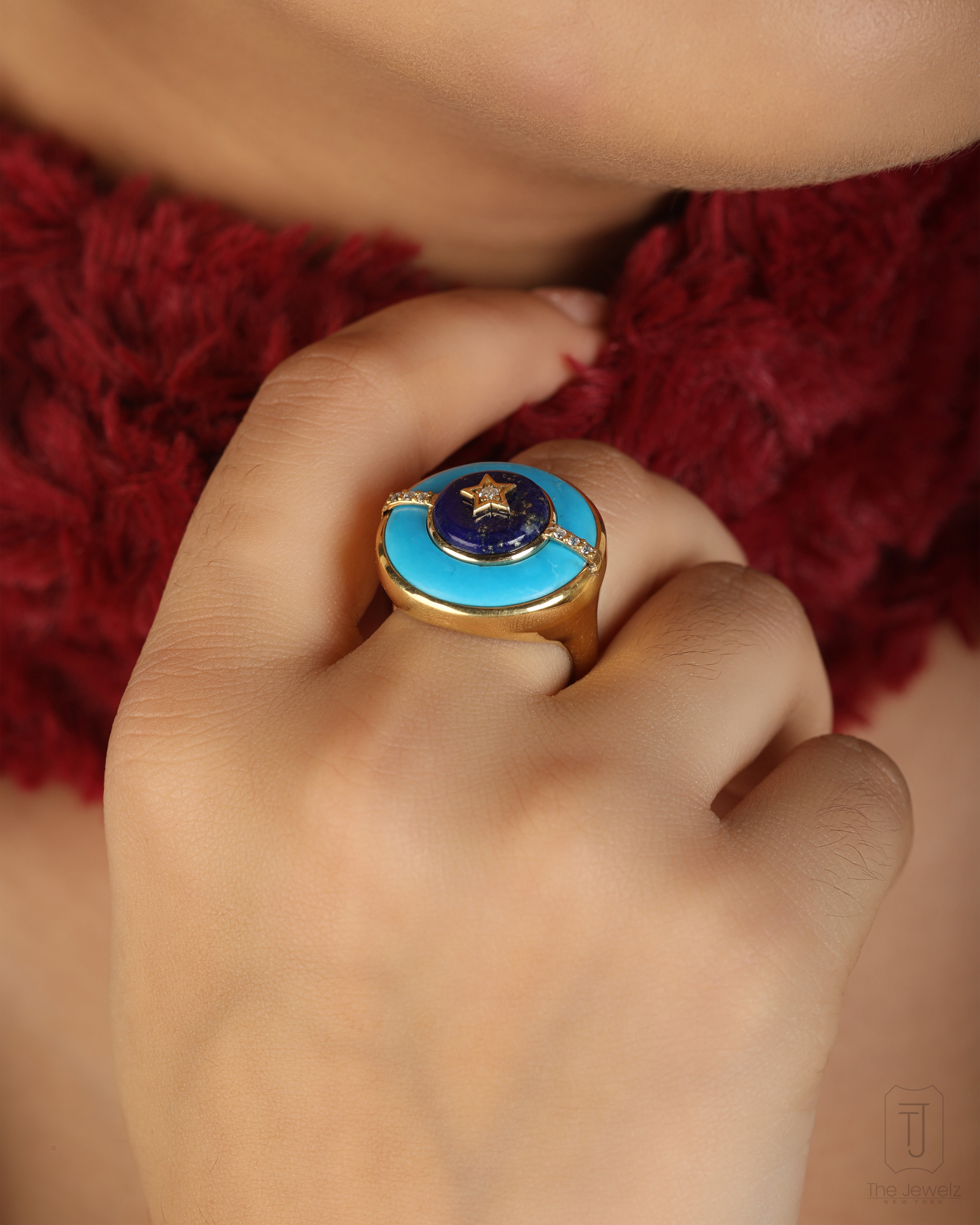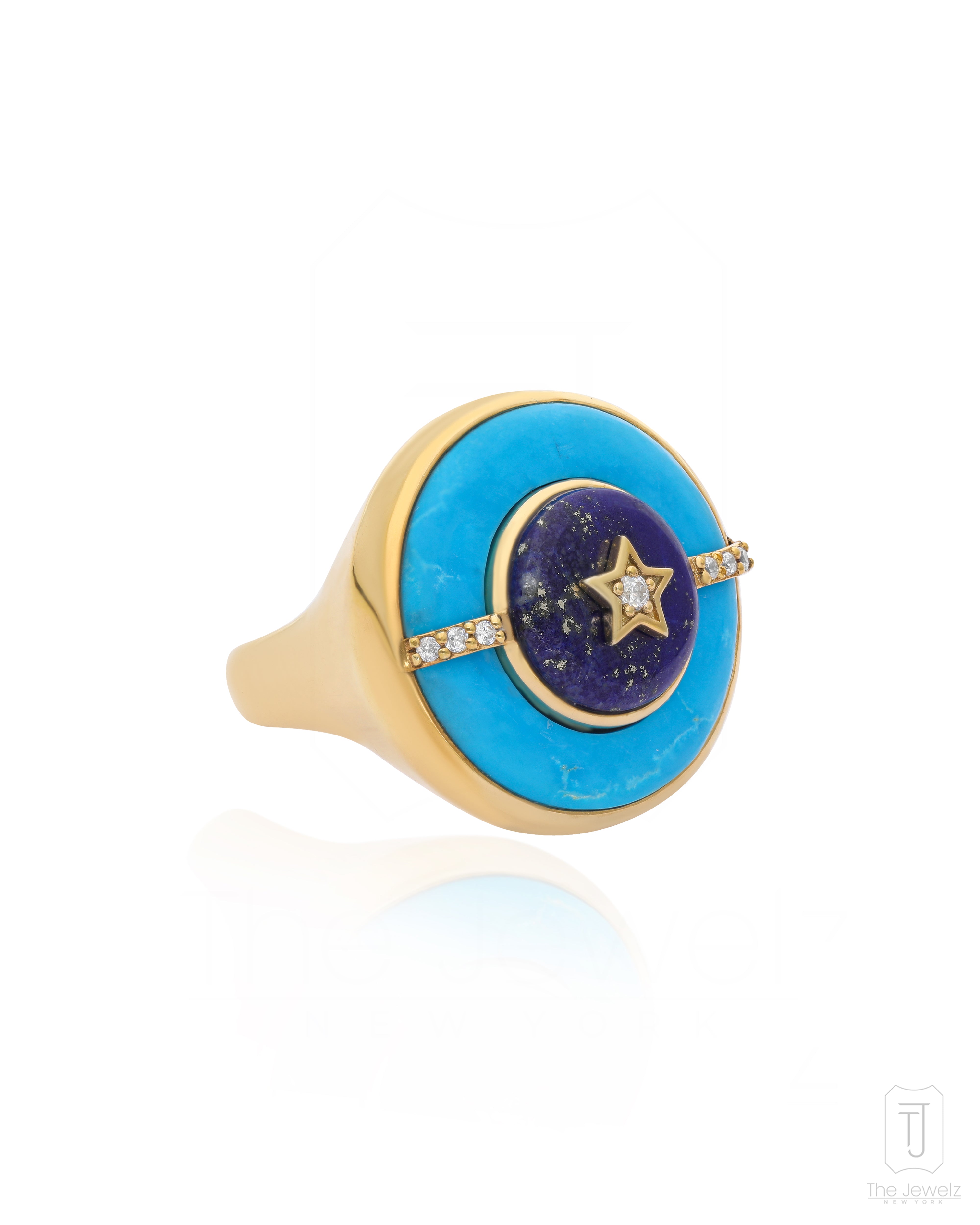 If the night sky had a heartbeat, it would look something like this. The Starry Night Signet Ring is a quiet little rebellion against the ordinary—a swirl of deep lapis and turquoise, like galaxies colliding in perfect harmony.