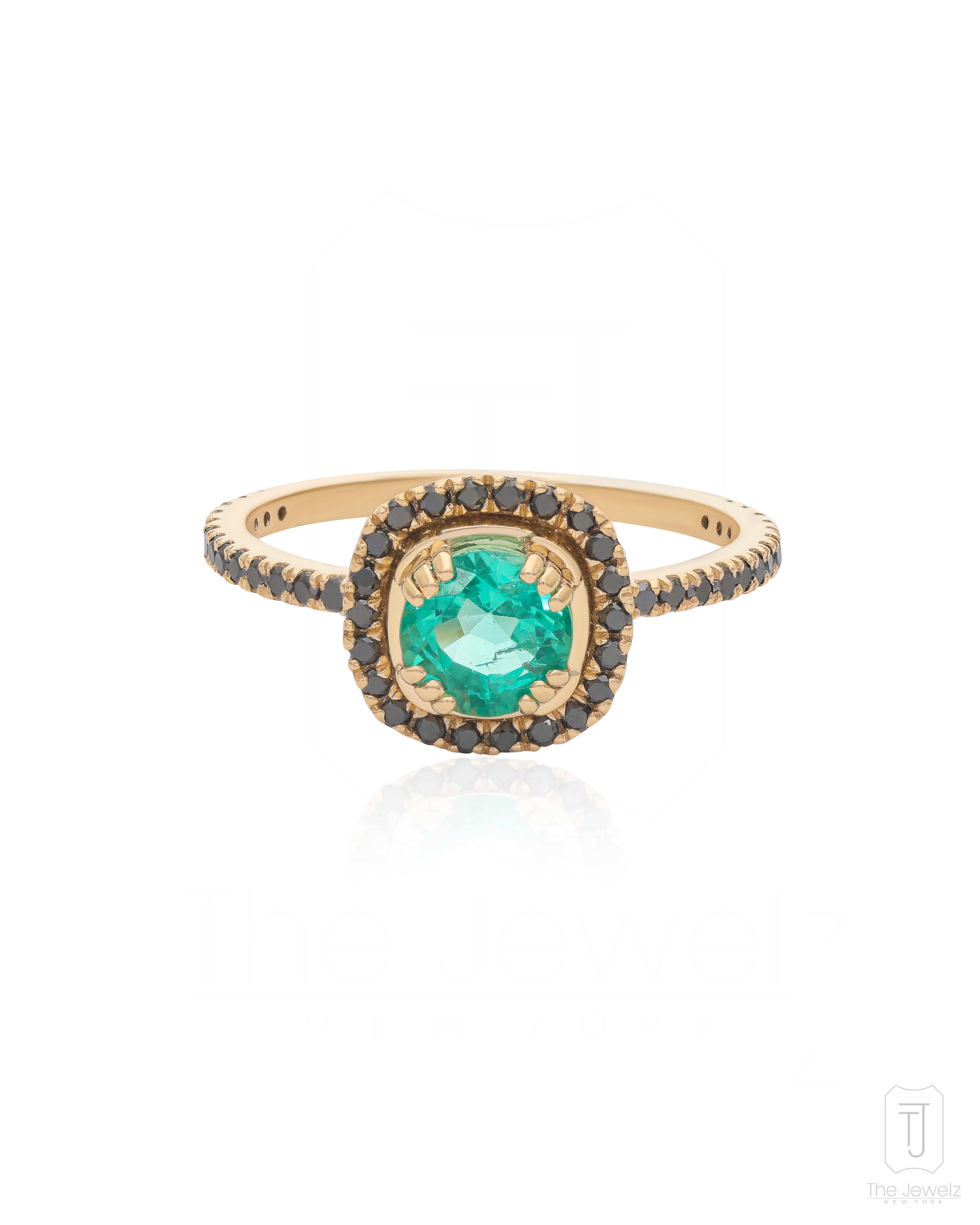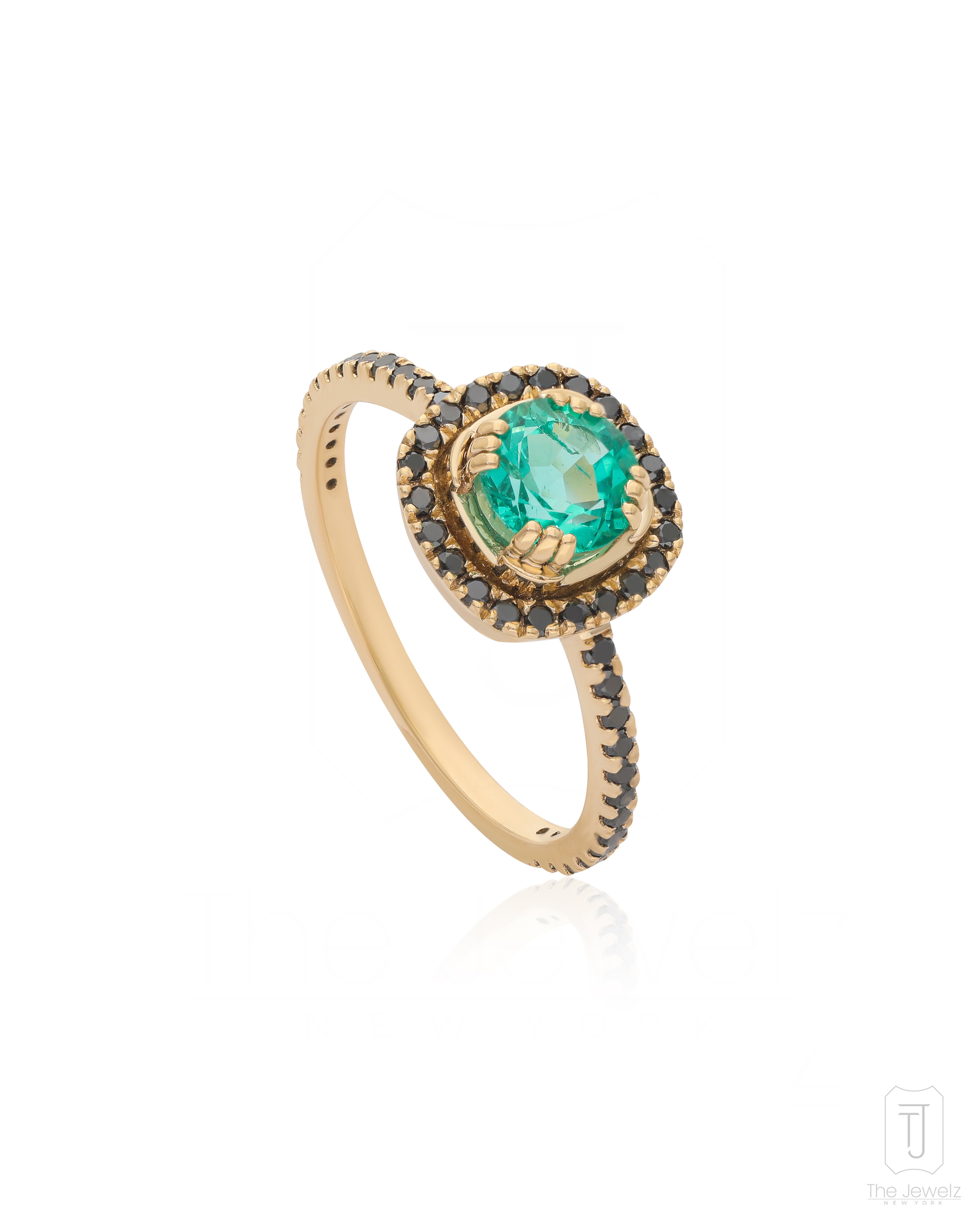 Embrace the charm of vintage elegance with our Cushion Emerald Ring, set in 14k gold and surrounded by black diamonds. The rich green emerald at the center of this stunning design is complemented by the bold contrast of black diamonds, adding a modern twist to a timeless classic. As we move into 2025, bold gemstone and diamond combinations are a major trend, with emeralds gaining popularity for their deep, luxurious color and unique appeal. This ring brings together vintage sophistication with the latest trends, making it a statement piece for any jewelry collection.
