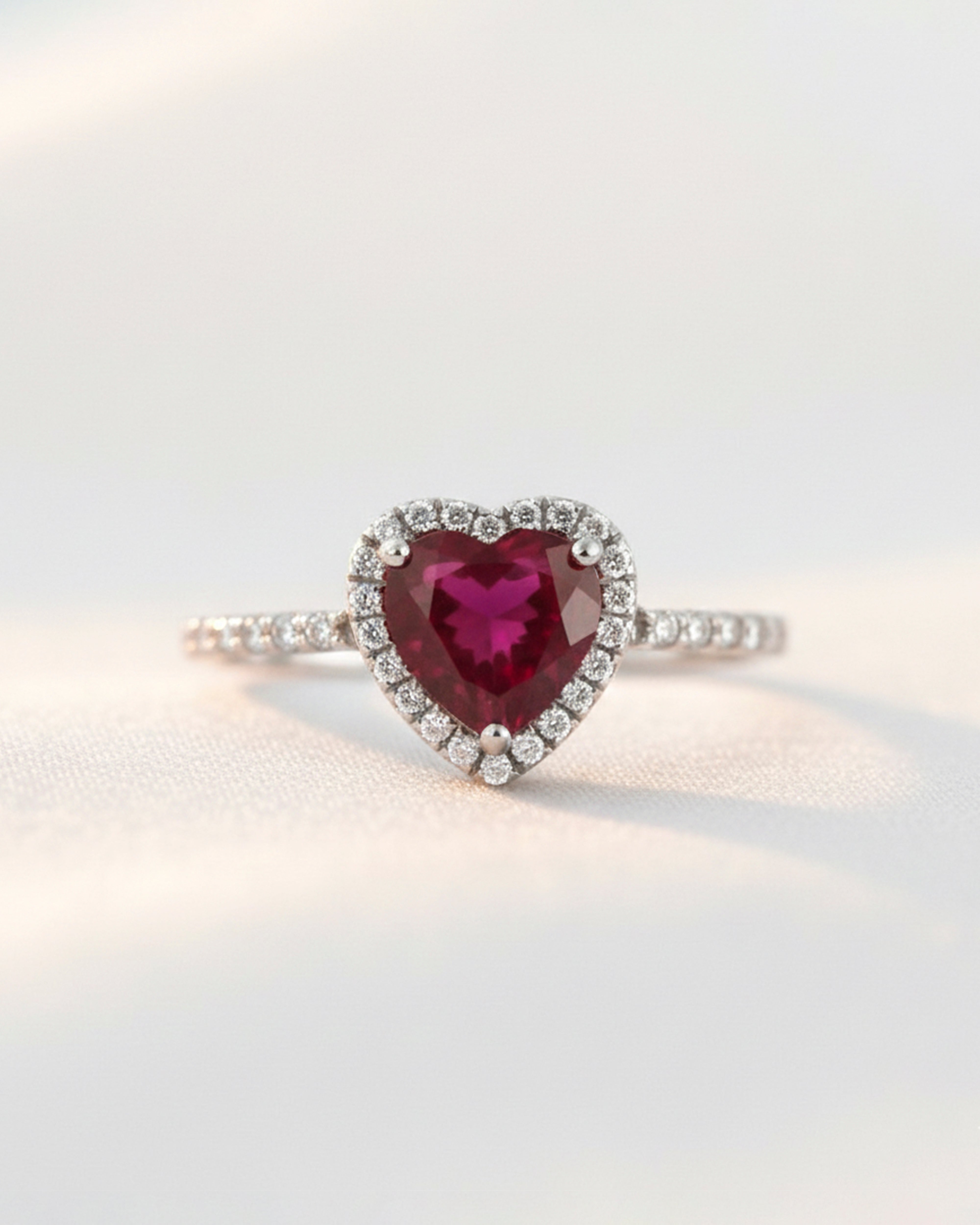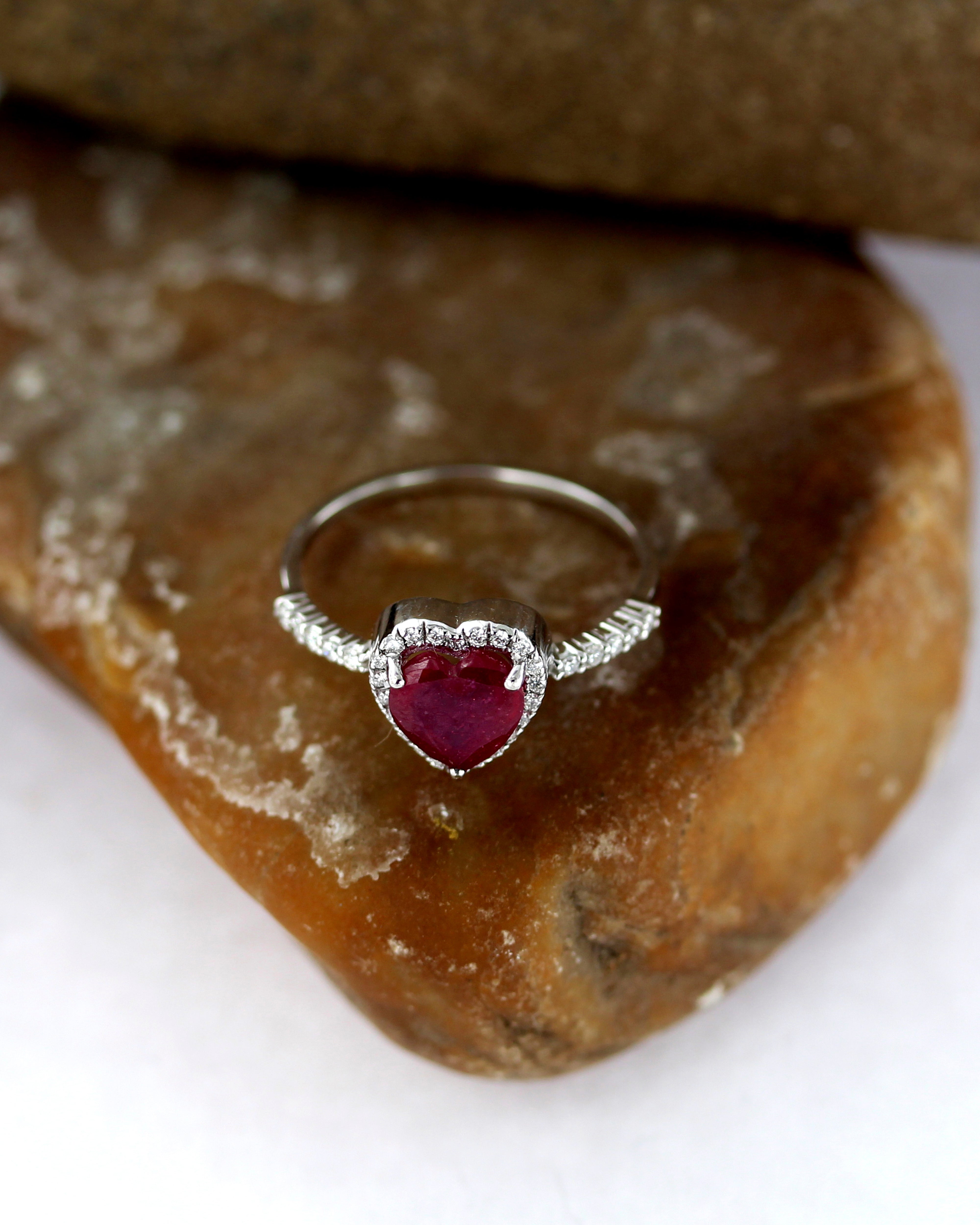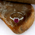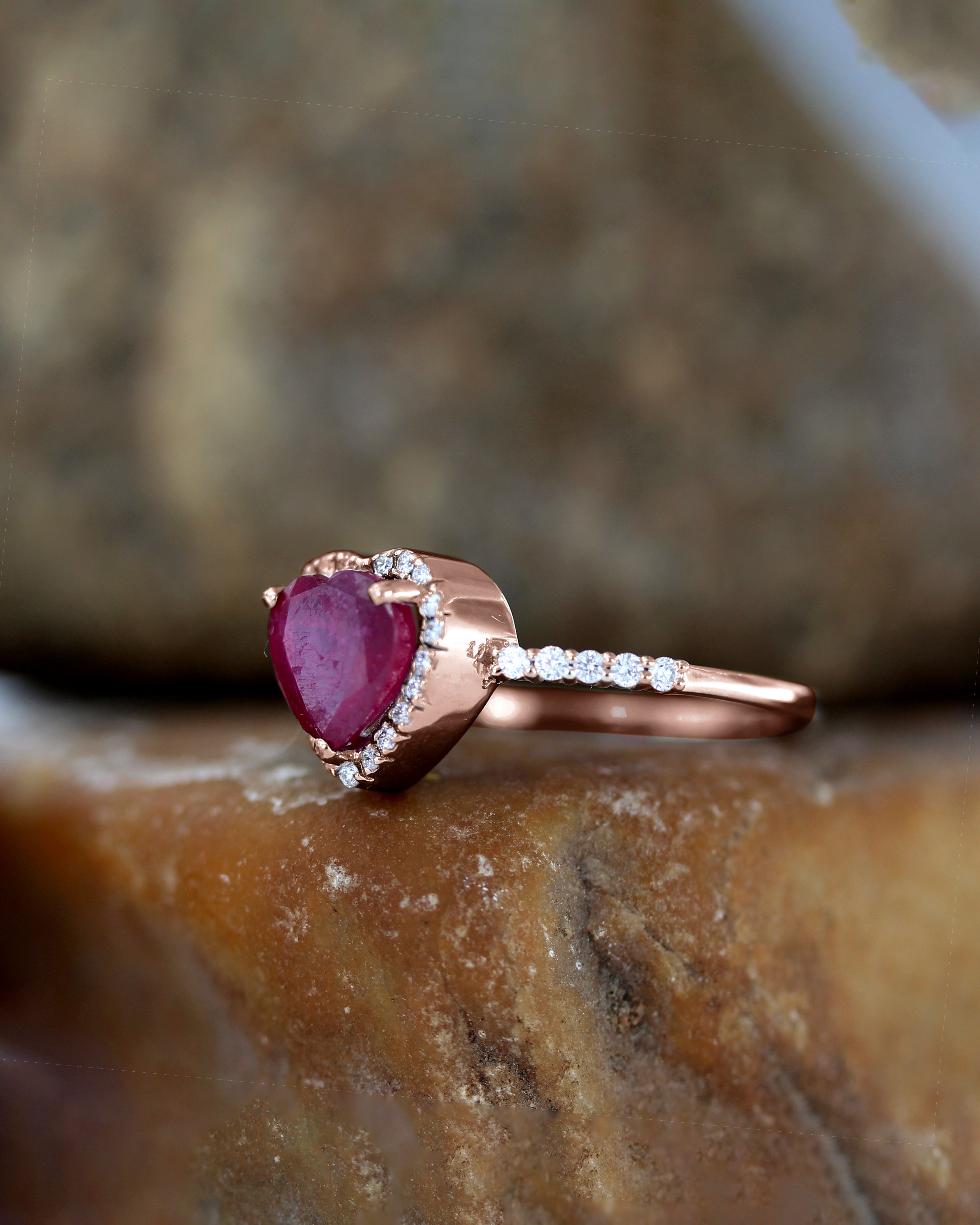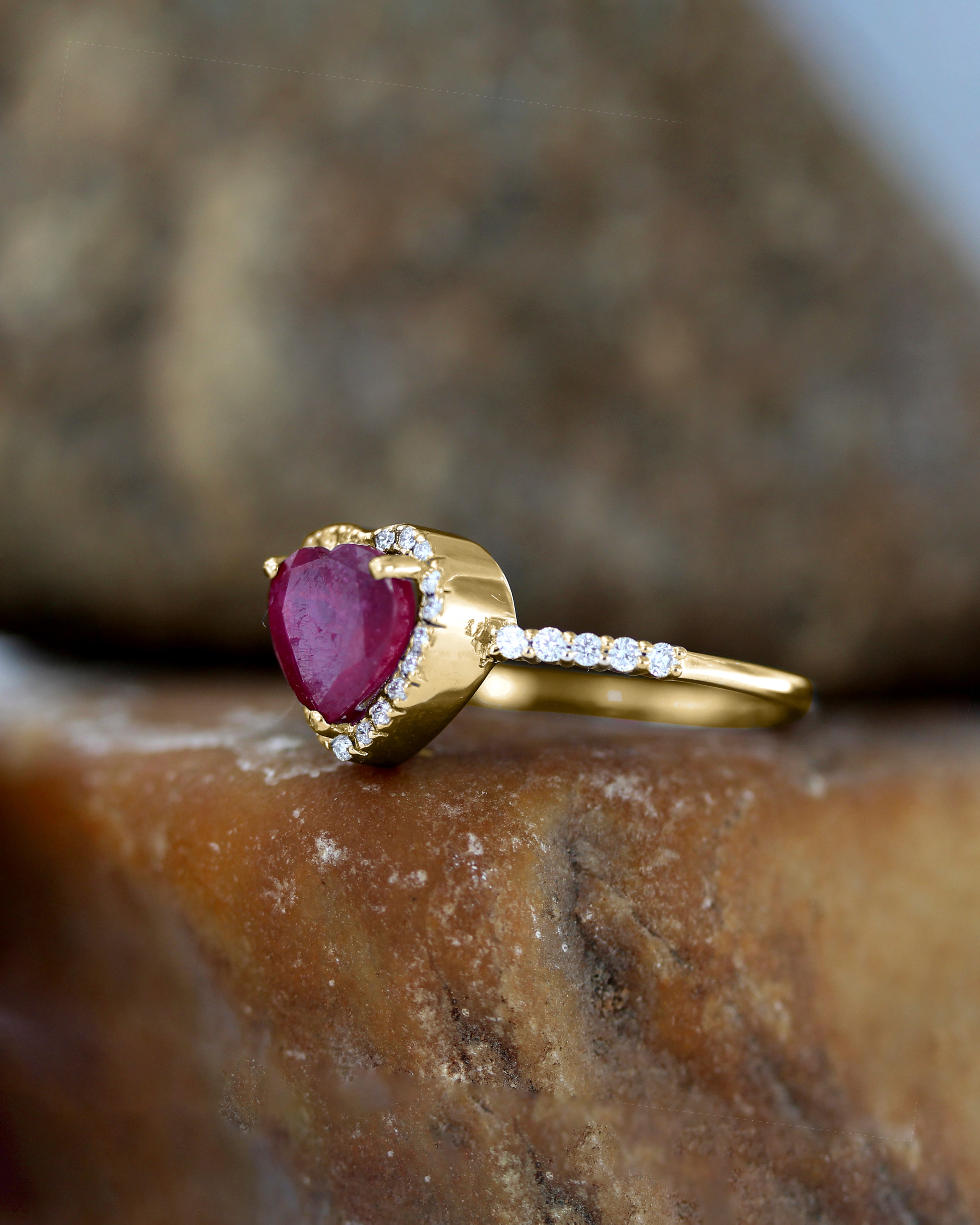 14K Gold Diamond And Heart Shape Ruby Gemstone Ring Classic Valentine's Day Gift