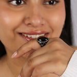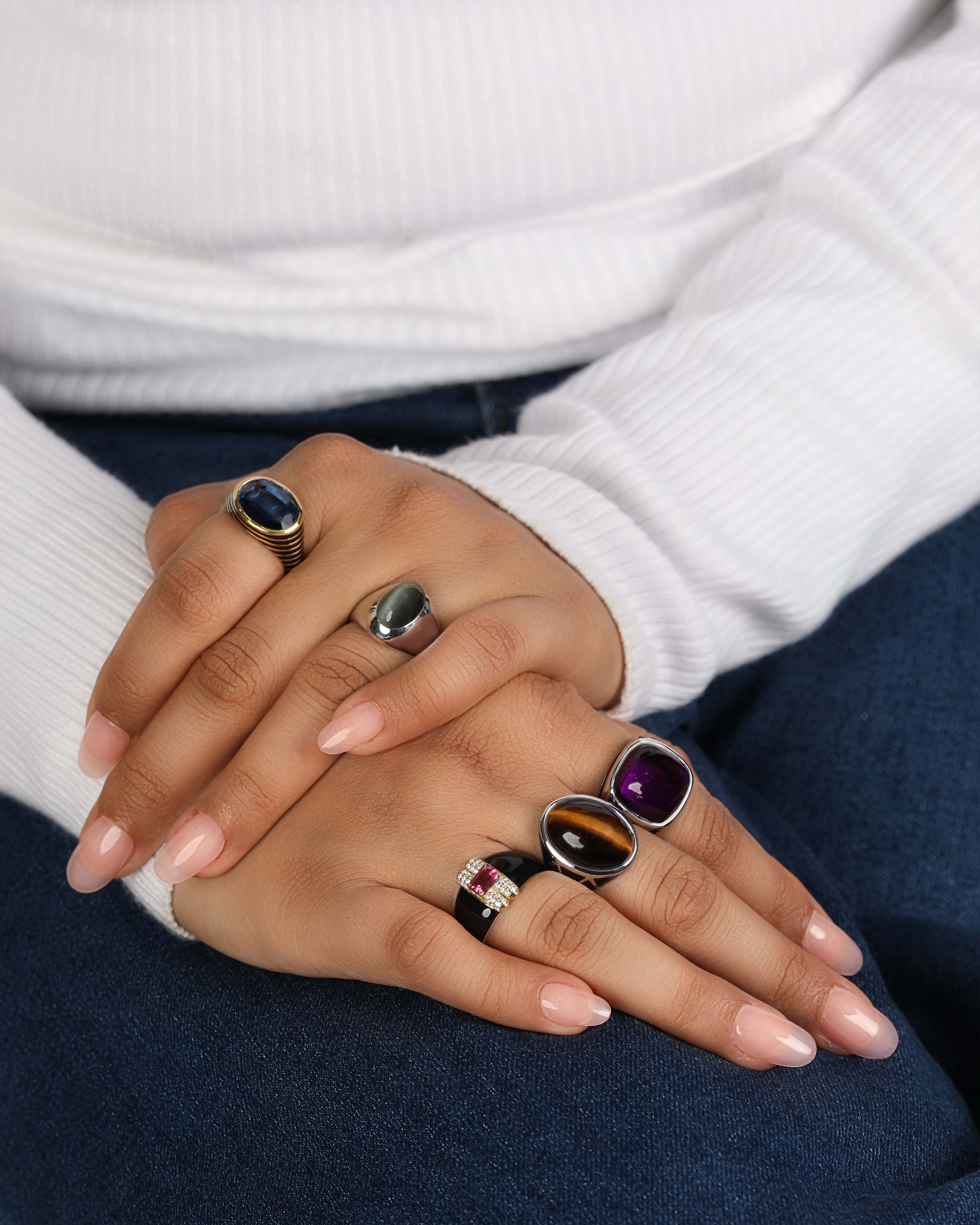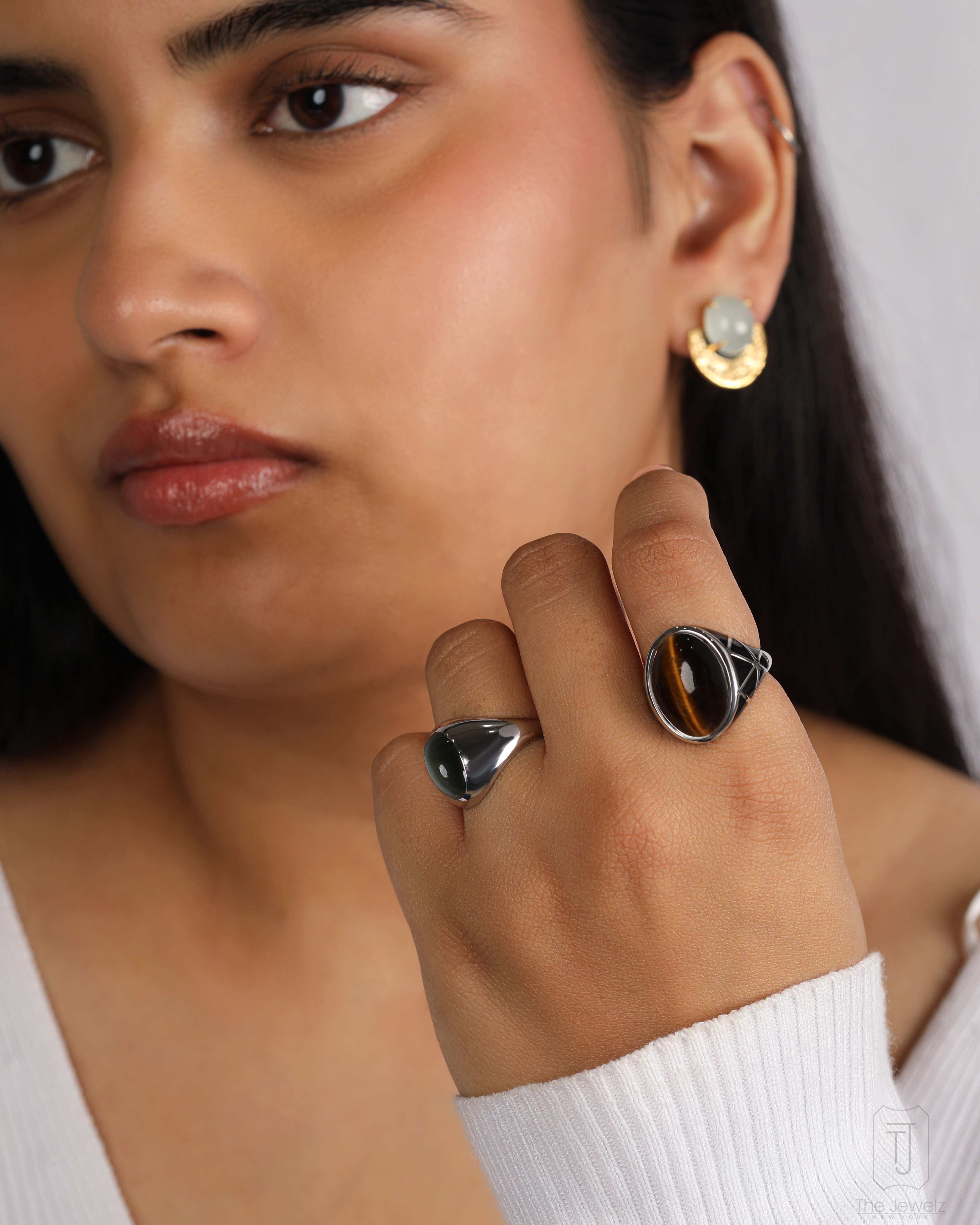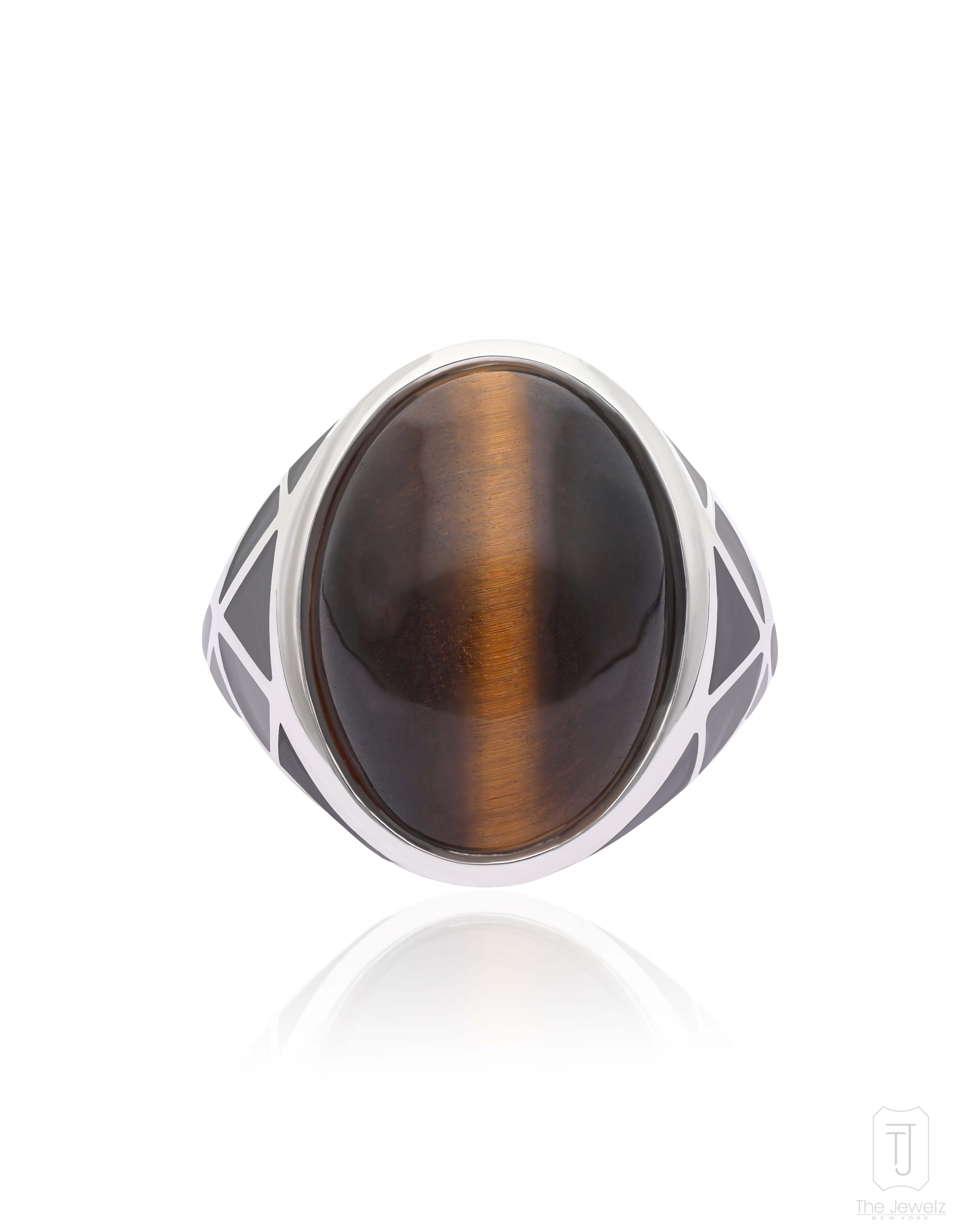 Channel your fierce energy with this captivating Tiger's Eye gemstone ring. Set in premium sterling silver, this piece features a genuine tiger's eye stone with its iconic honey and chocolate striations that seem to dance in the light. The bold black enamel accents add an edgy flair that transforms this ring into a conversation starter. Whether you're channeling confidence or embracing your adventurous spirit, this natural gemstone ring is your wearable reminder to stay bold and unapologetically you.