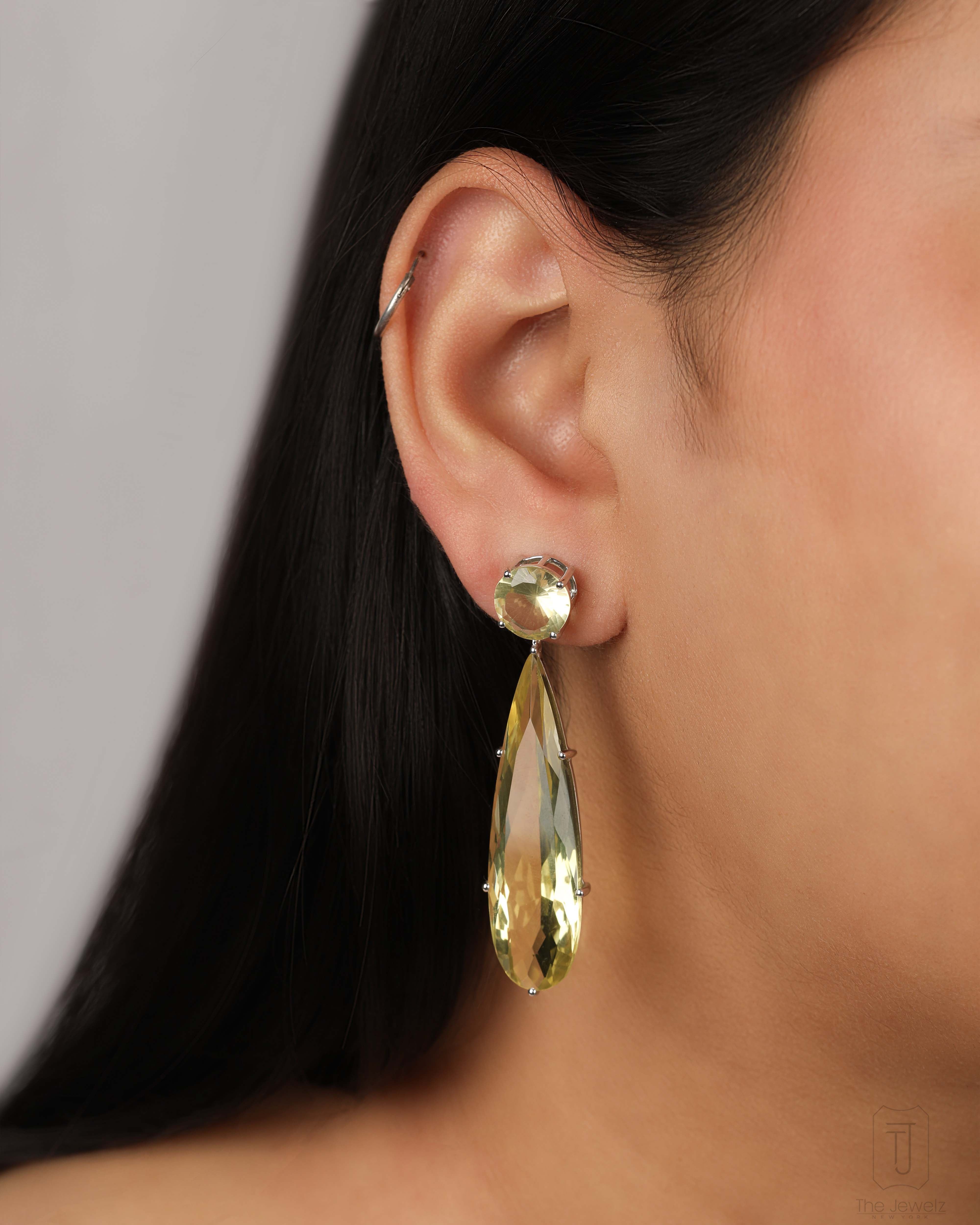 Lemon Gleam' Lemon Quartz 925 Silver Drop Earrings