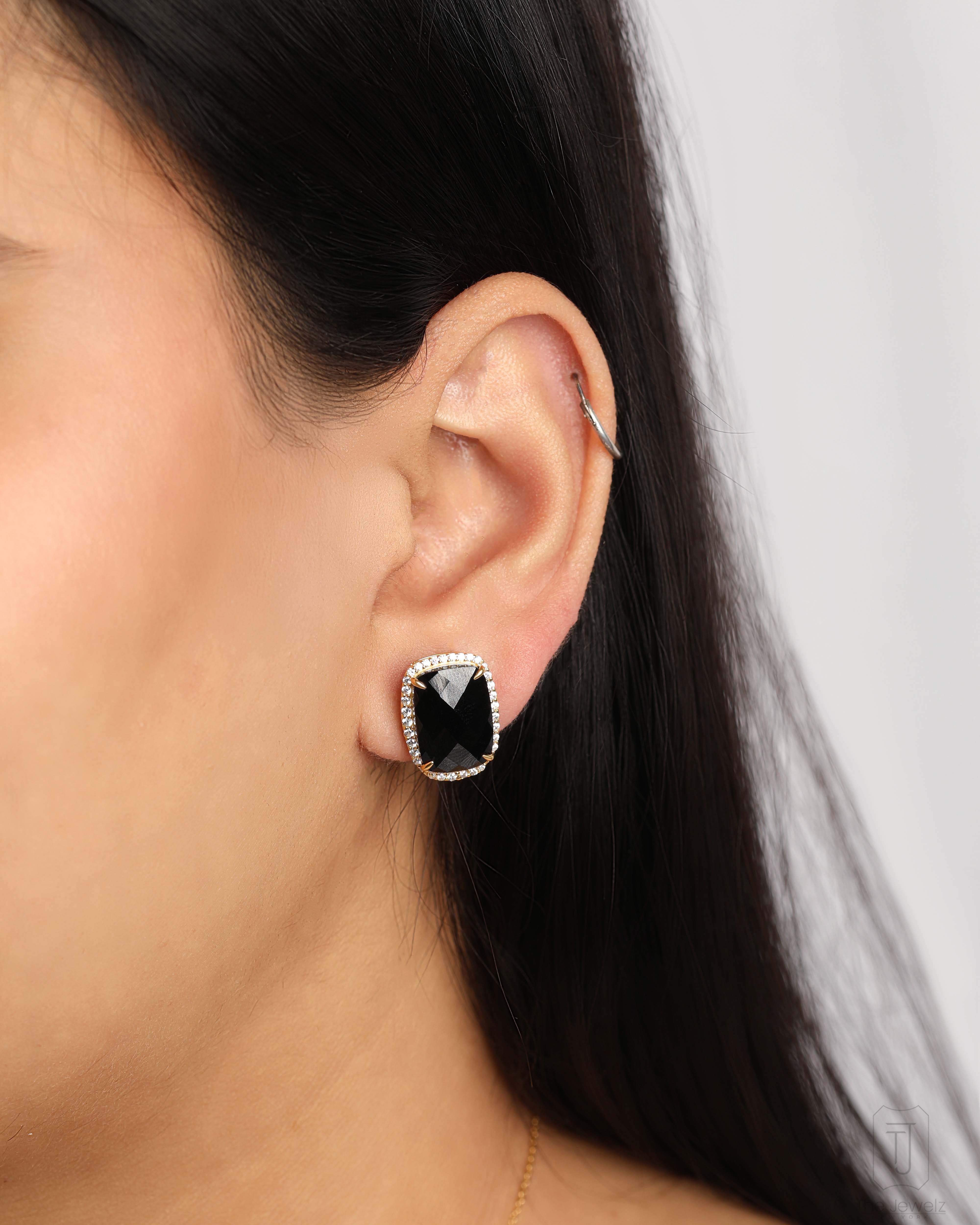 Dusk Crossline' Black Spinel 925 Silver Earrings