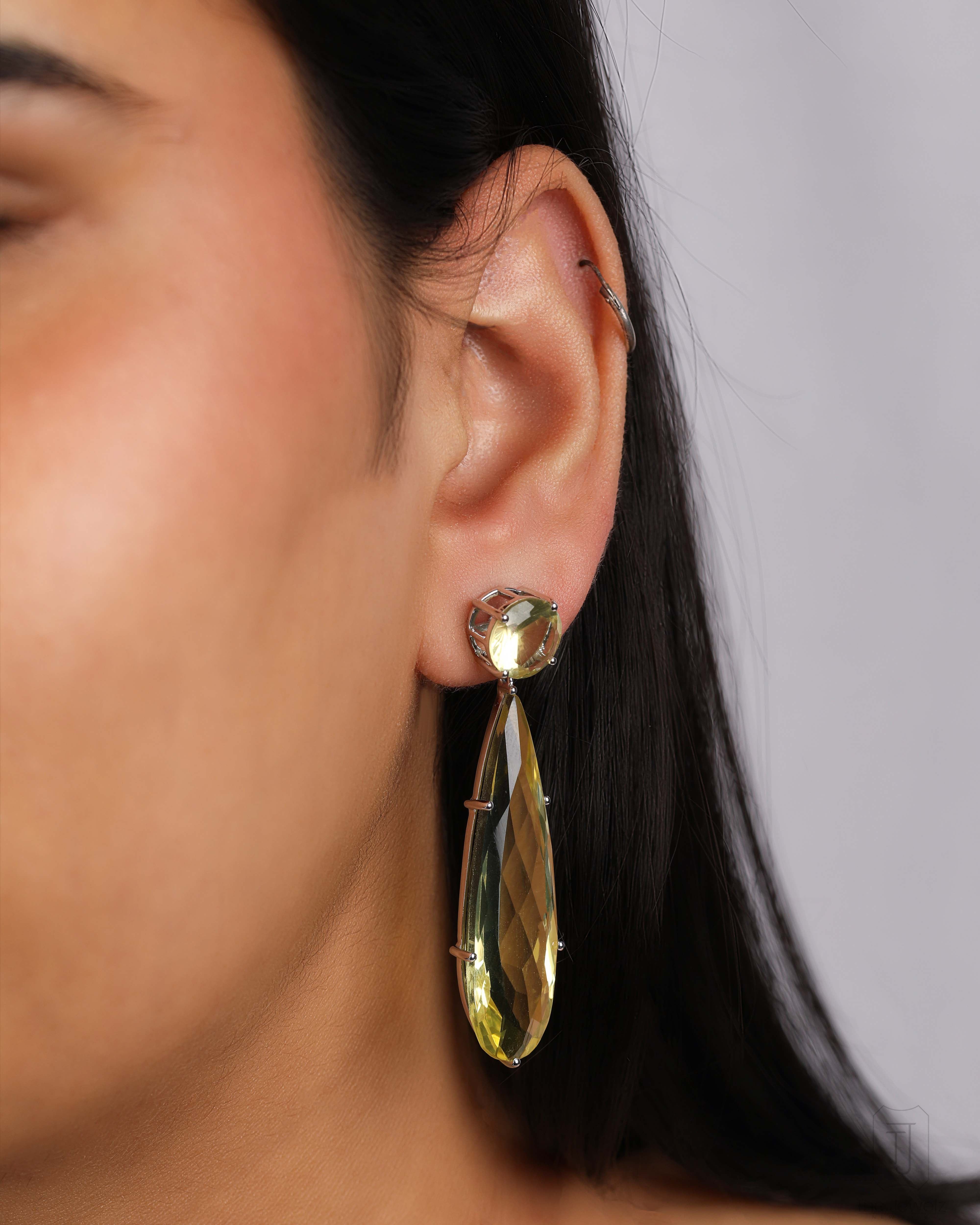 Lemon Gleam' Lemon Quartz 925 Silver Drop Earrings