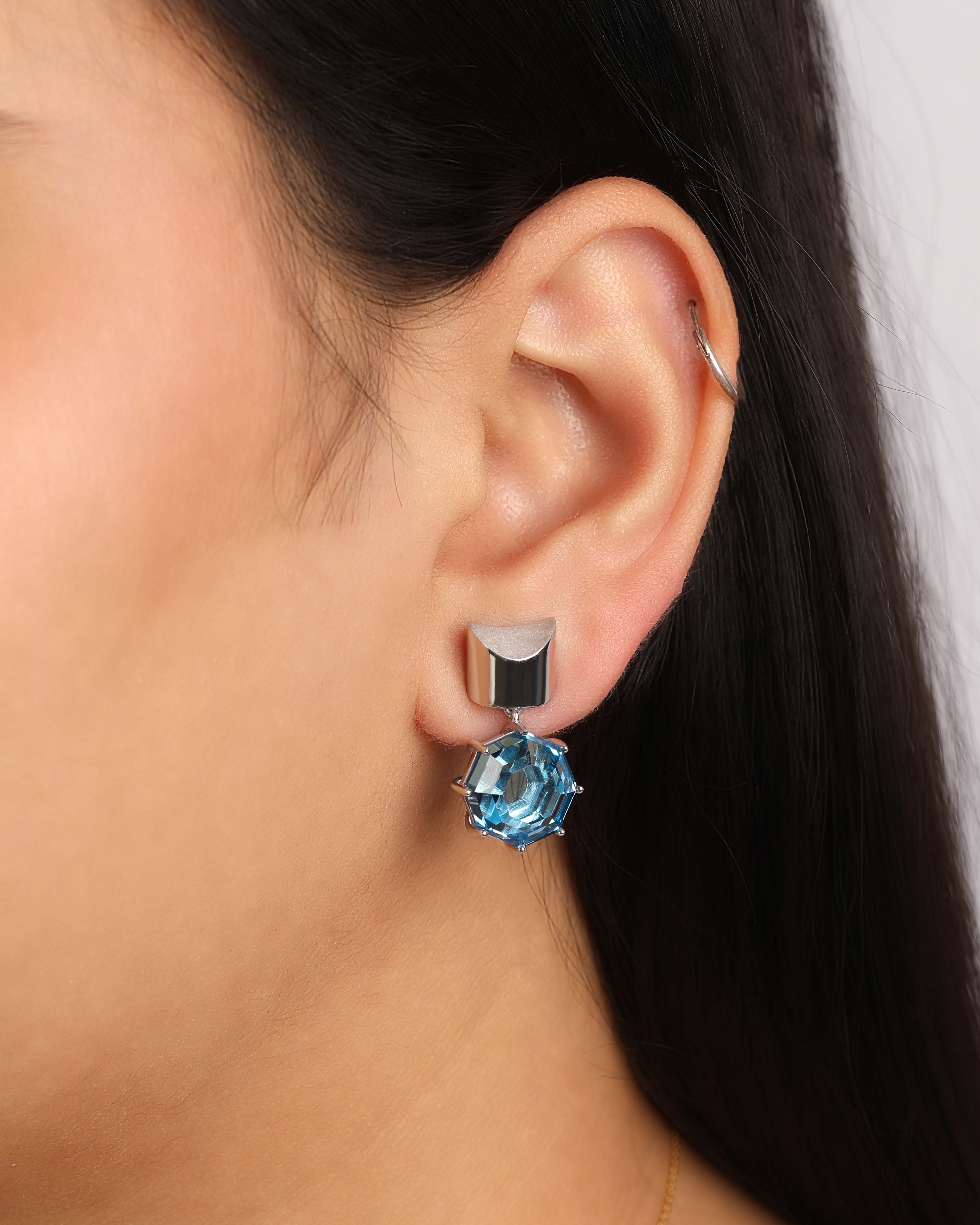 Capture the magic of a cloudless sky with these delightful Sky Drift earrings! Featuring genuine blue topaz gemstones set in gleaming sterling silver, these beauties measure just 15mm wide and 25mm tall—ideal for making a statement without overwhelming your look. The artisan sandblasted texture on top adds dimension and visual intrigue, creating a sophisticated play of light and shadow. Perfect for layering with other pieces or standing solo, these playful gems bring just the right amount of sparkle to brighten any day.