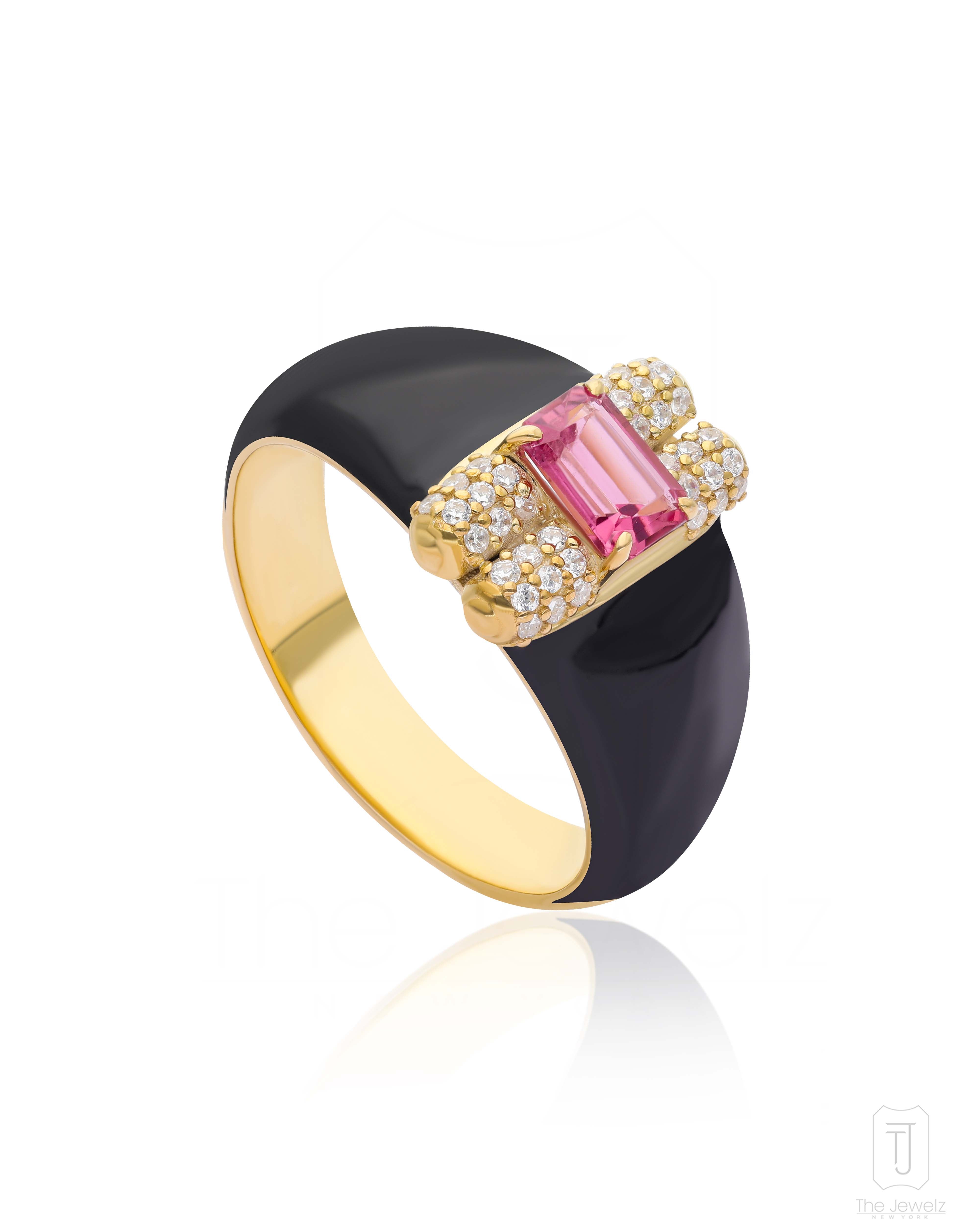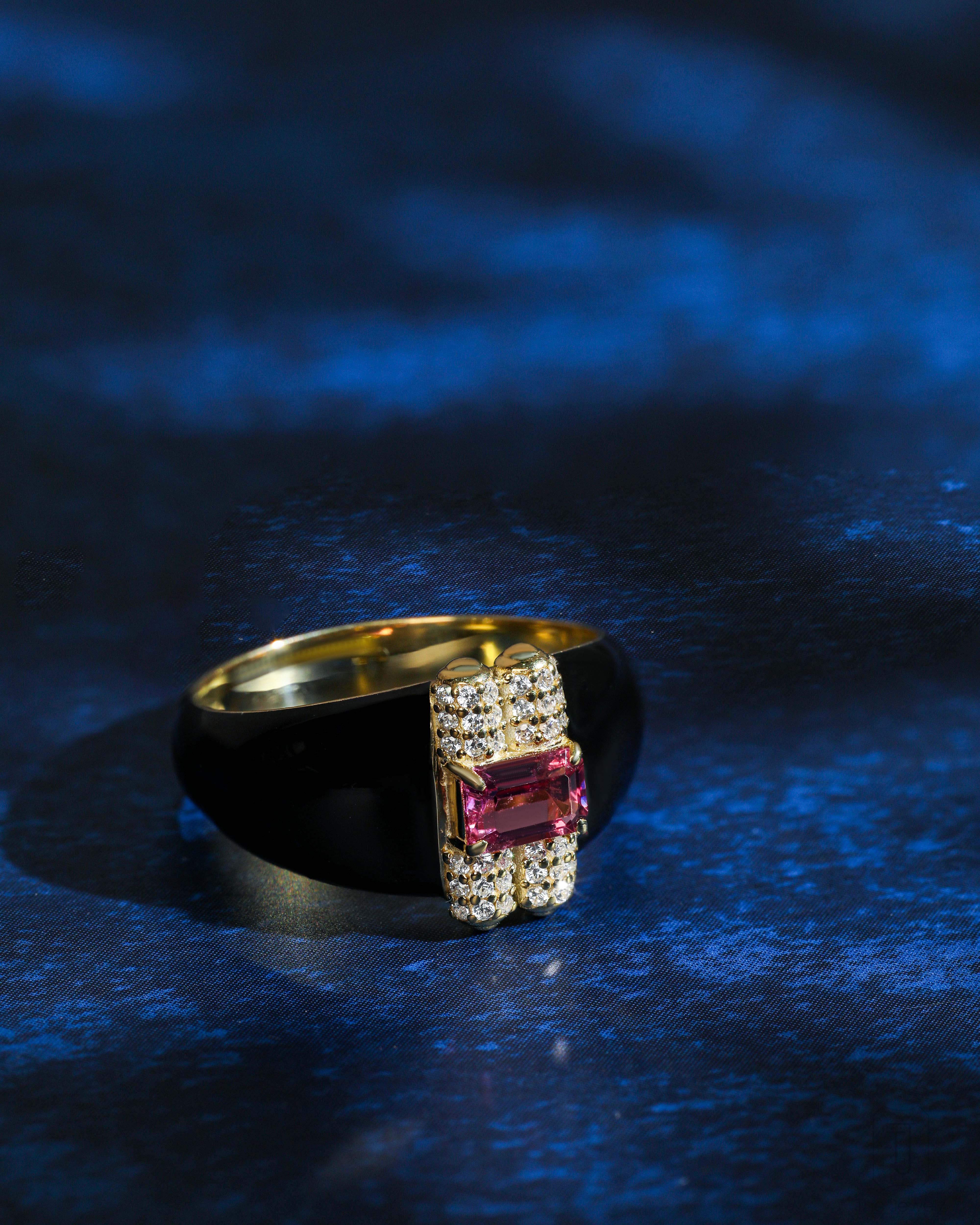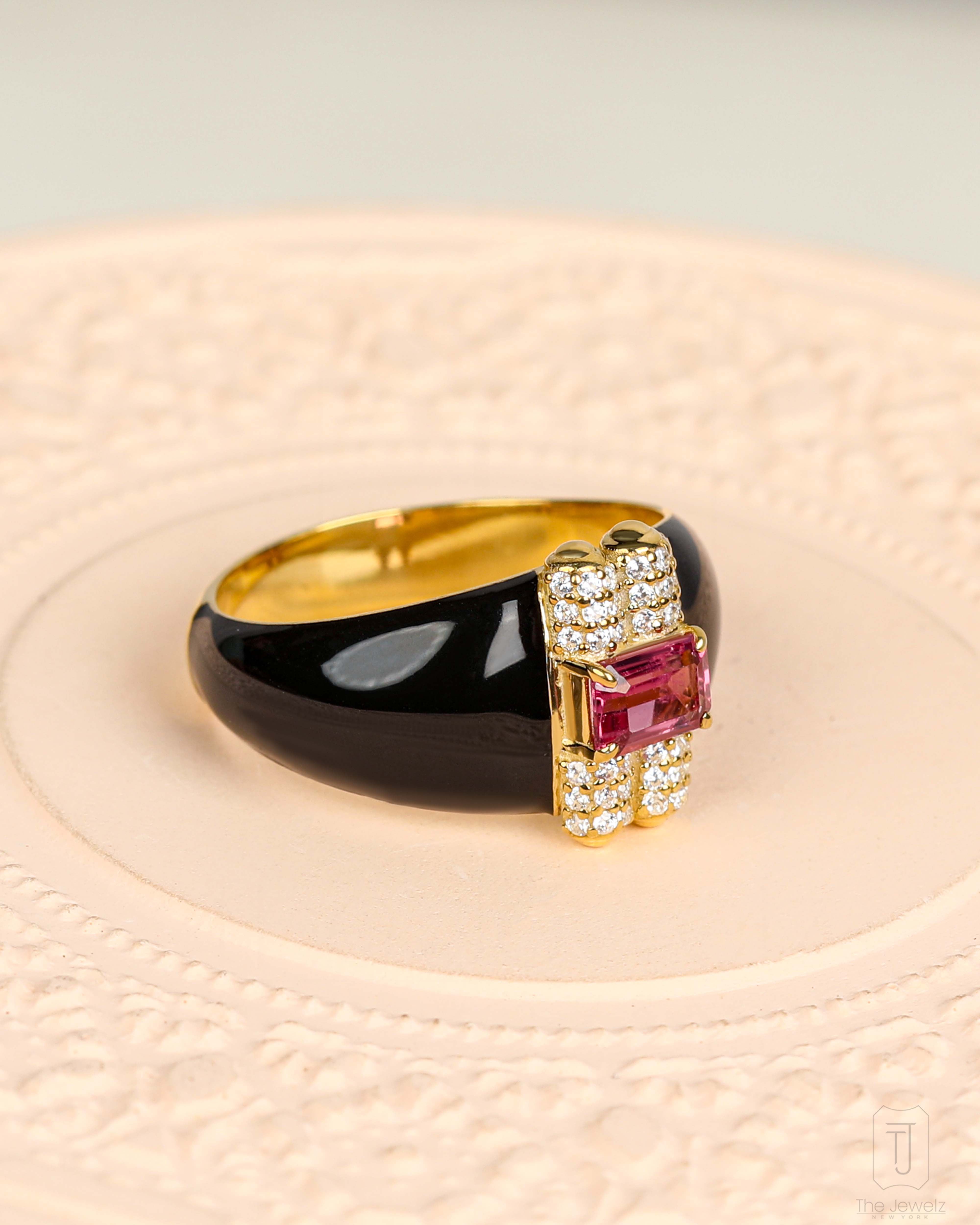 Twilight Rose' Pink Tourmaline 925 Silver Ring Blush-pink tourmaline meets moody black enamel in this enchanting sterling silver ring. The delicate gemstone catches light with every gesture, while bold enamel accents add an edgy twist to classic elegance. Crafted in genuine 925 silver, this piece balances romance with attitude—perfect for those who refuse to choose between sweet and sultry. A conversation starter that feels as good as it looks.