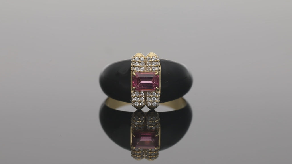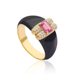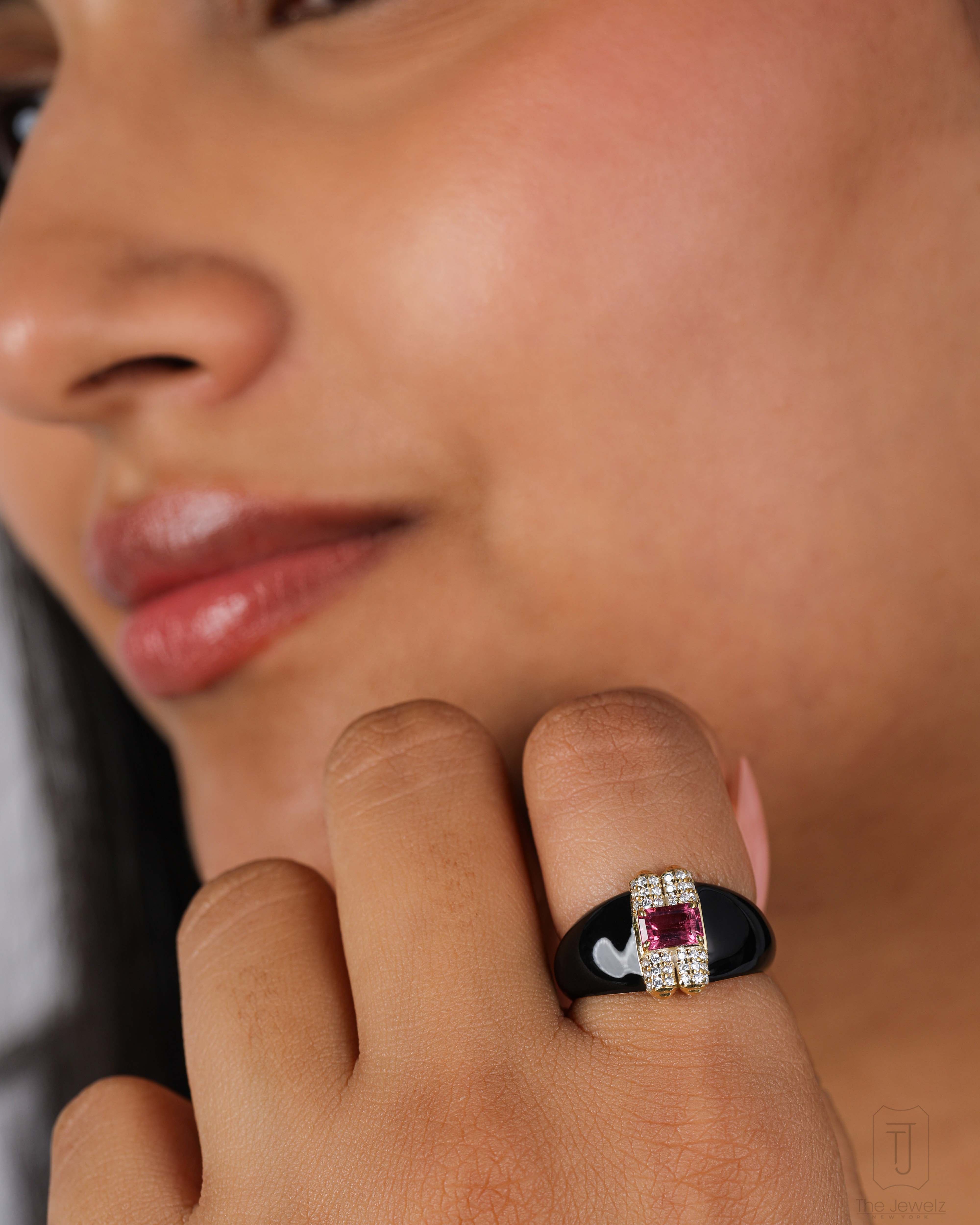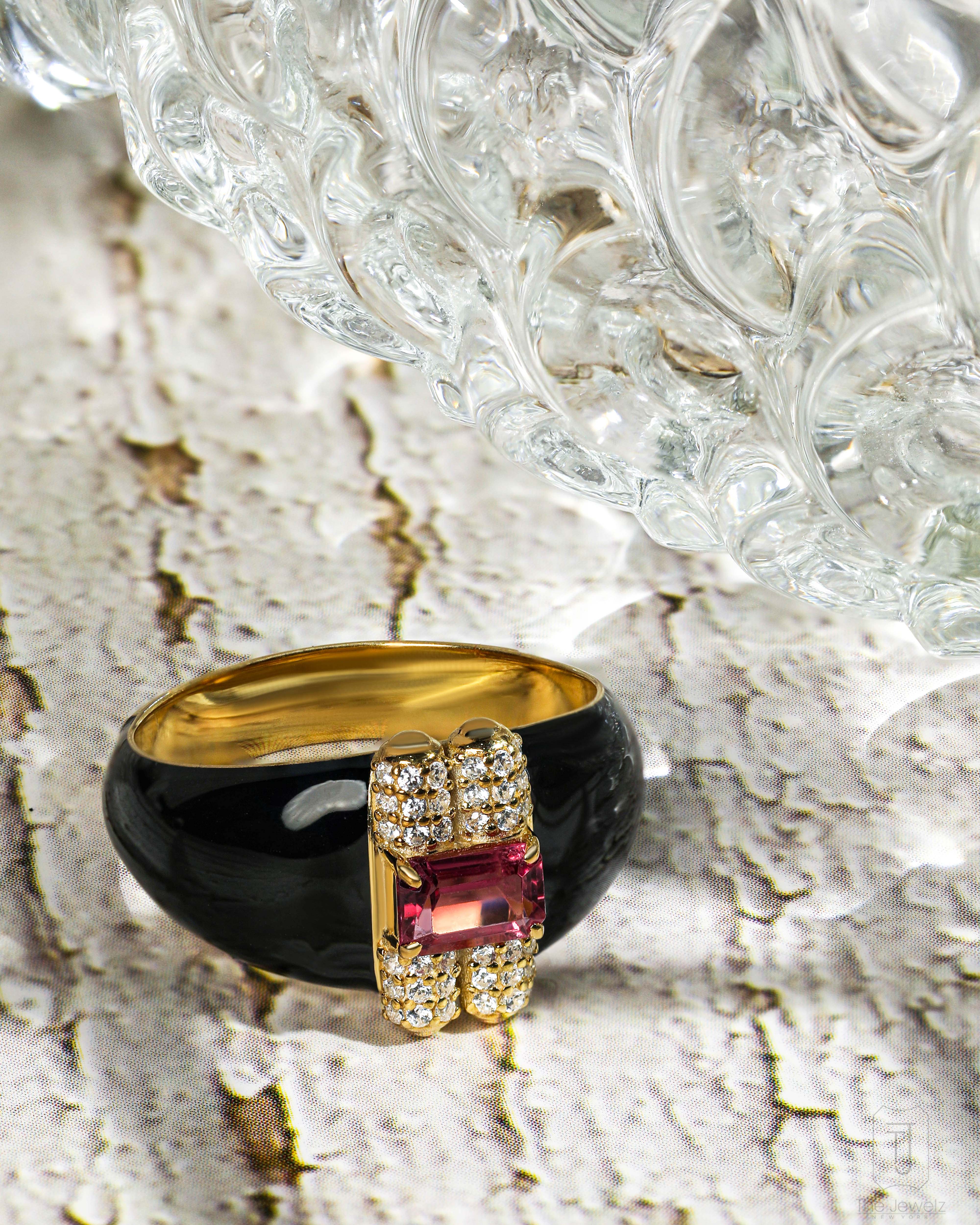 Twilight Rose' Pink Tourmaline 925 Silver Ring Blush-pink tourmaline meets moody black enamel in this enchanting sterling silver ring. The delicate gemstone catches light with every gesture, while bold enamel accents add an edgy twist to classic elegance. Crafted in genuine 925 silver, this piece balances romance with attitude—perfect for those who refuse to choose between sweet and sultry. A conversation starter that feels as good as it looks.