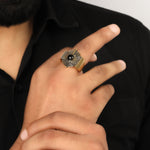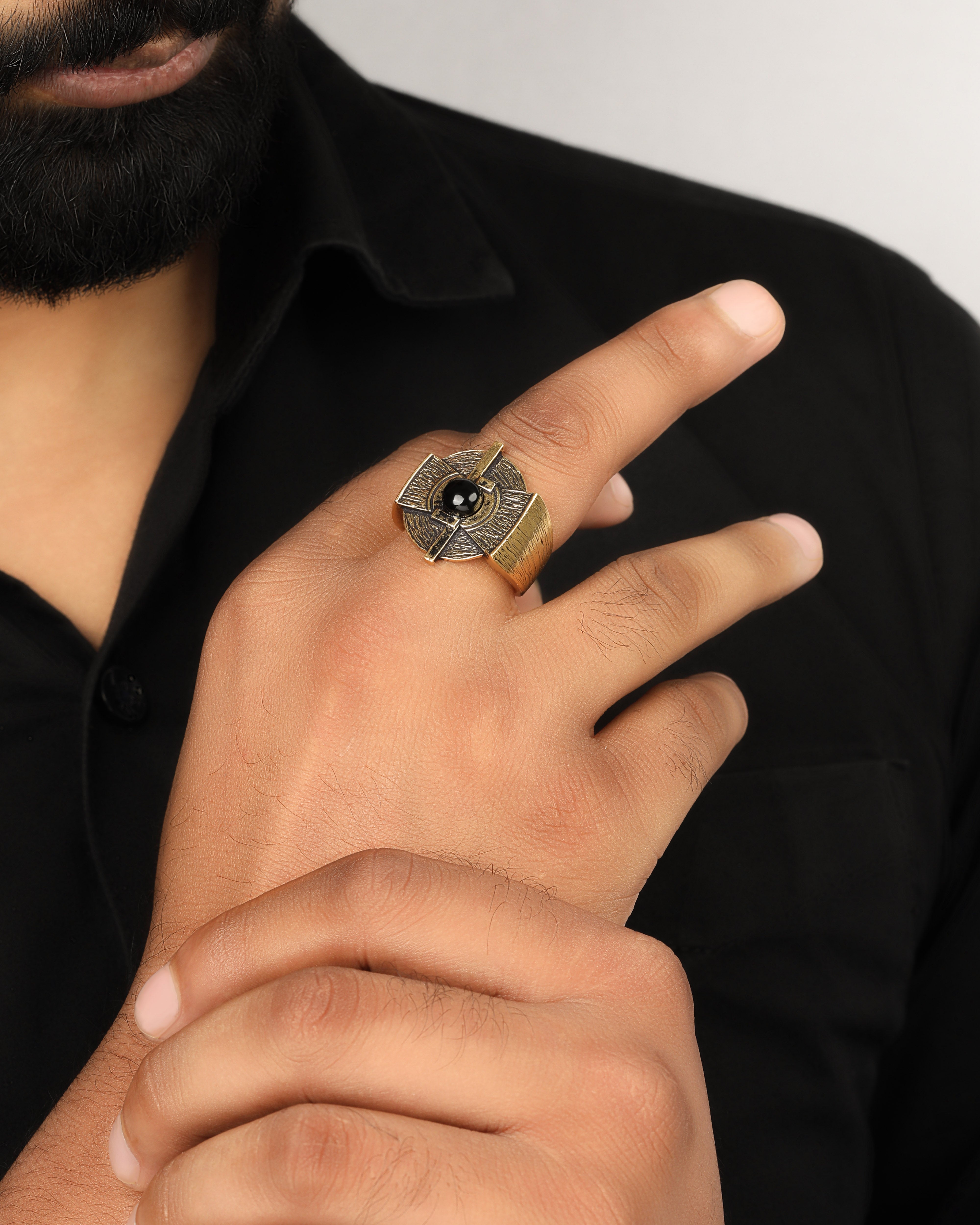Meet the Noir Crest – your new obsession in black onyx brilliance. Crafted from premium 925 silver, this ring packs serious style with its mesmerizing 1.23 ct black onyx stone that gleams with mysterious charm. At 20.65 gms of pure sophistication, it's substantial enough to make a statement without feeling heavy. Perfect for sizes 9 and 10 US, this beauty transforms any outfit from ordinary to unforgettable. Whether you're a dark elegance devotee or just love stones with personality, the Noir Crest delivers drama, depth, and undeniable allure. Your fingers deserve this kind of fun.
