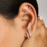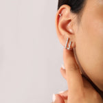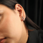 If you're someone who loves structure and symmetry, then you'll go gaga over these earrings. The uniformity of the parallel diamond bars creates a structured look, while the symmetrical curves add a playful touch of femininity. But wait, there's more! The highlight of this pair lies in its double-piercing illusion, which gives the earrings a chic yet edgy look. It's the perfect combination of sophistication and sass, making it an ideal choice for any fashion-forward individual.